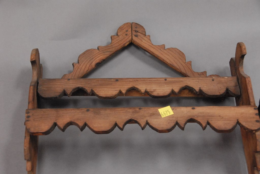 Lot 40: Group lot to include early spoon rack, rotating iron roaster, and pair of early carriage lights.