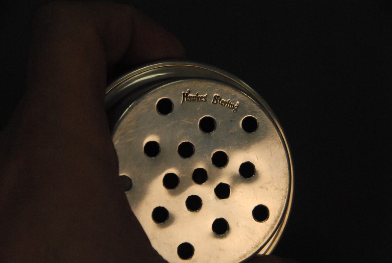 Hawk’s crystal cocktail shaker with sterling silver top. ht. 13in.