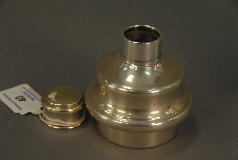 Lot 40: Hawk’s crystal cocktail shaker with sterling silver top. ht. 13in.