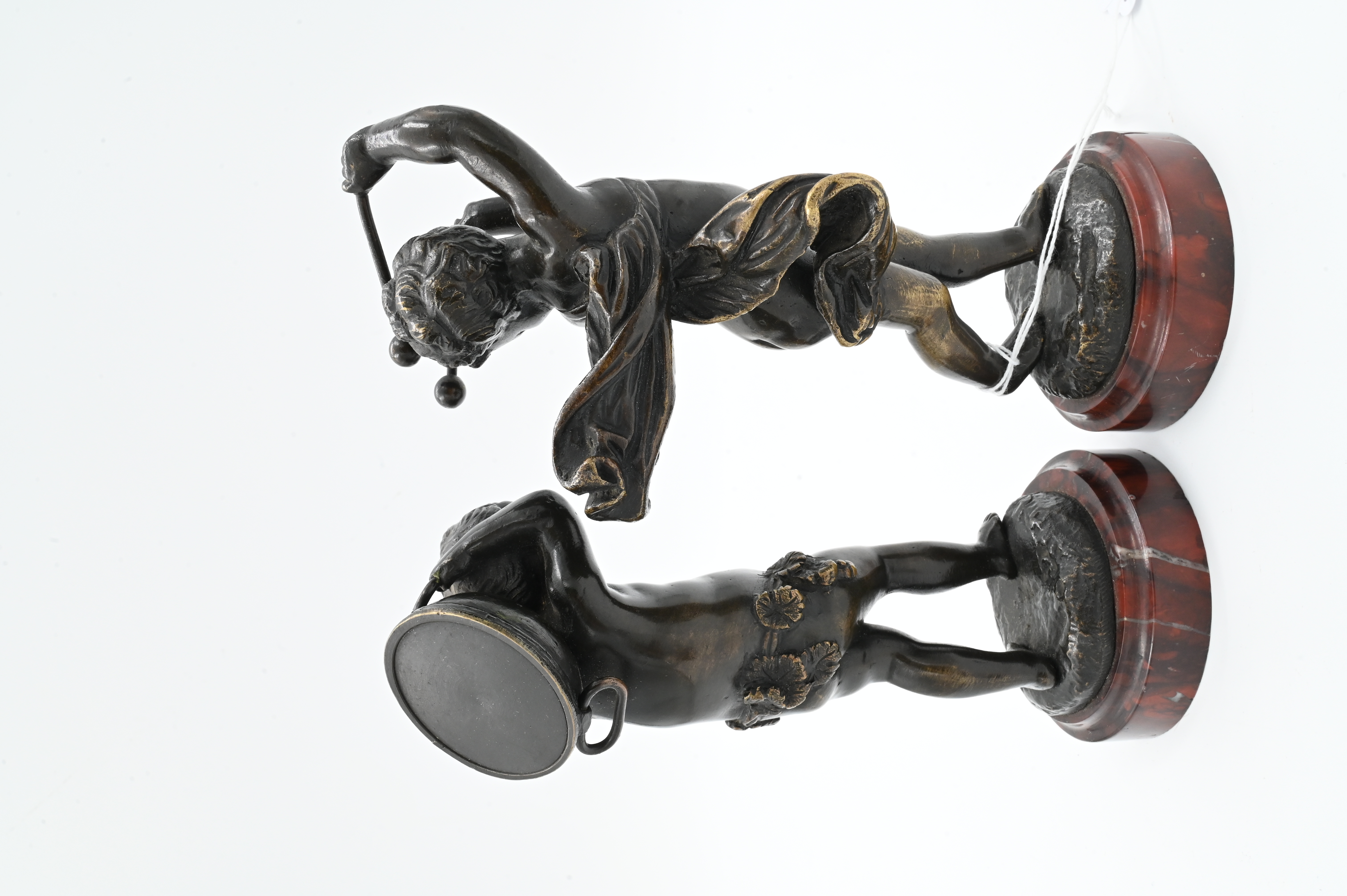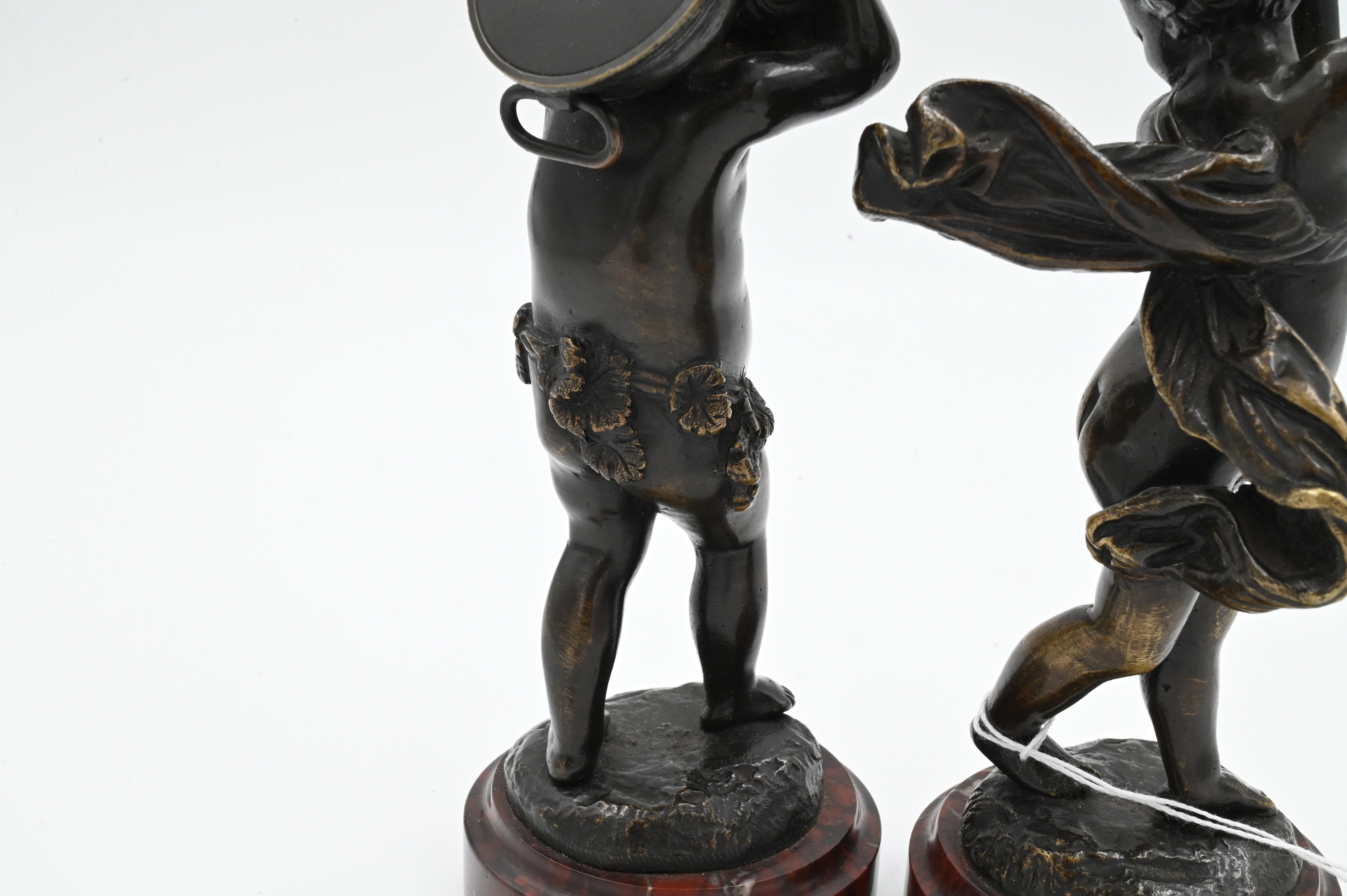one with drum, the other with with drumsticks, both on rouge marble base and signed “Clodion”