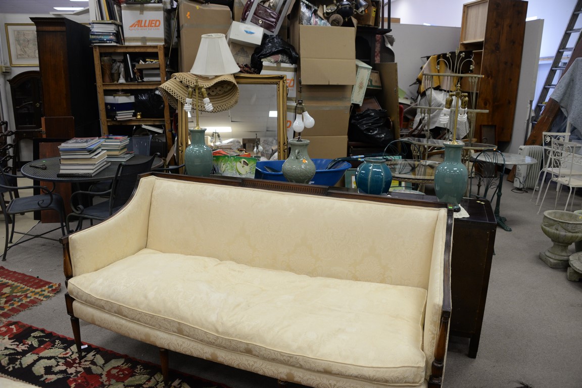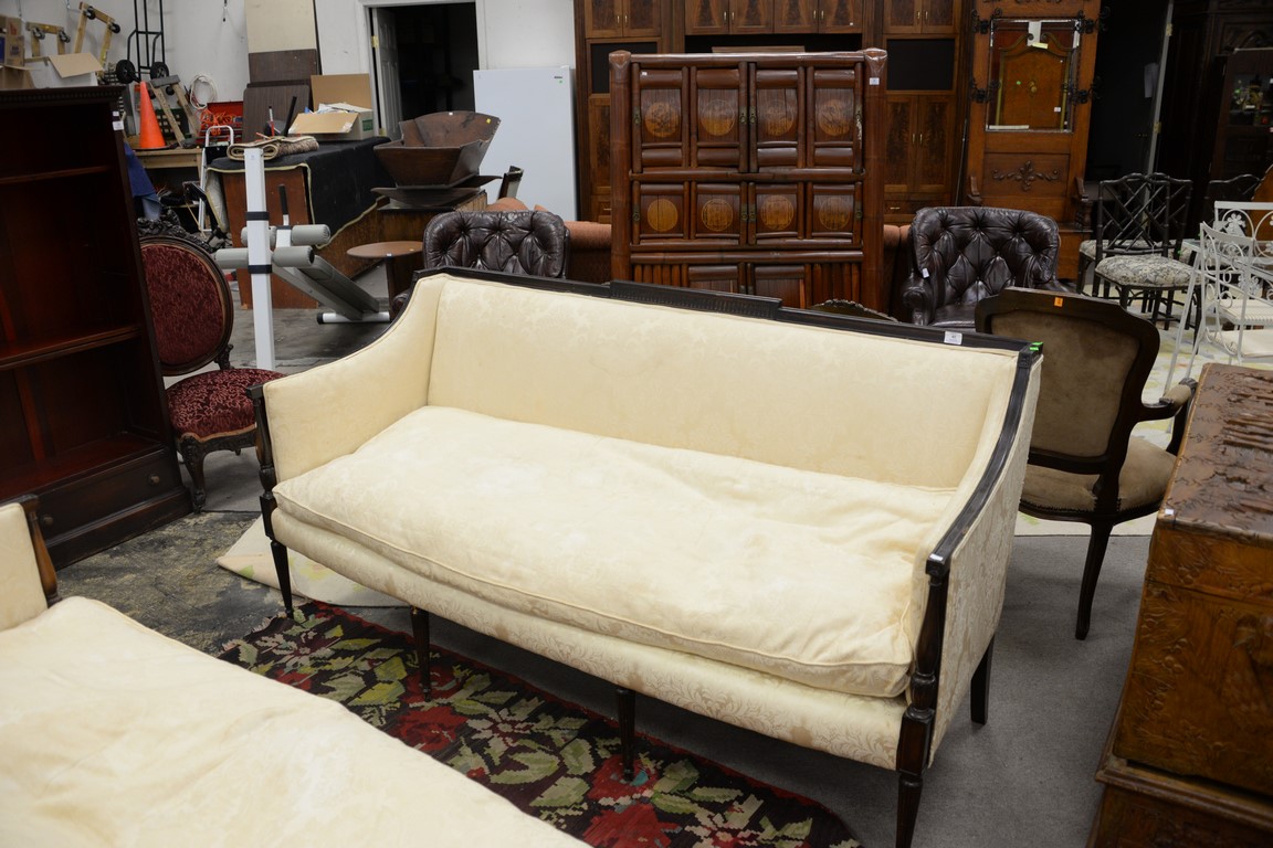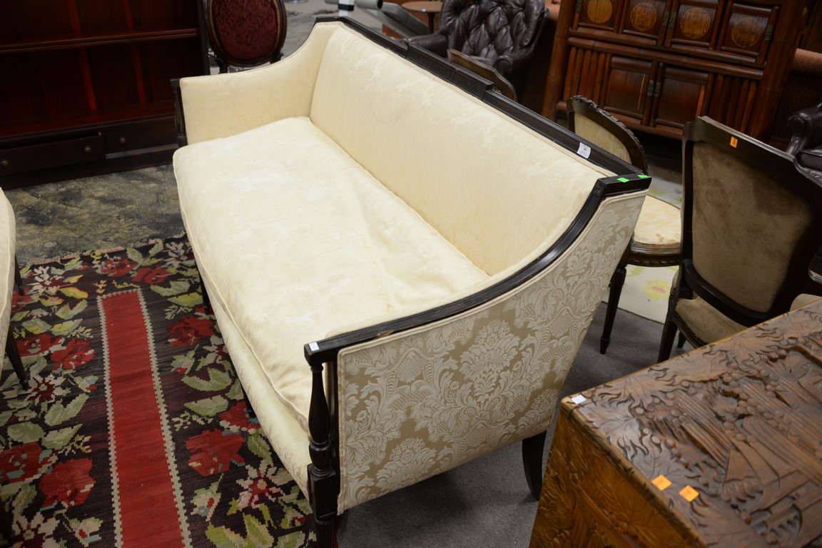 Pair of Sheraton style sofa. stains. lg. 70in.