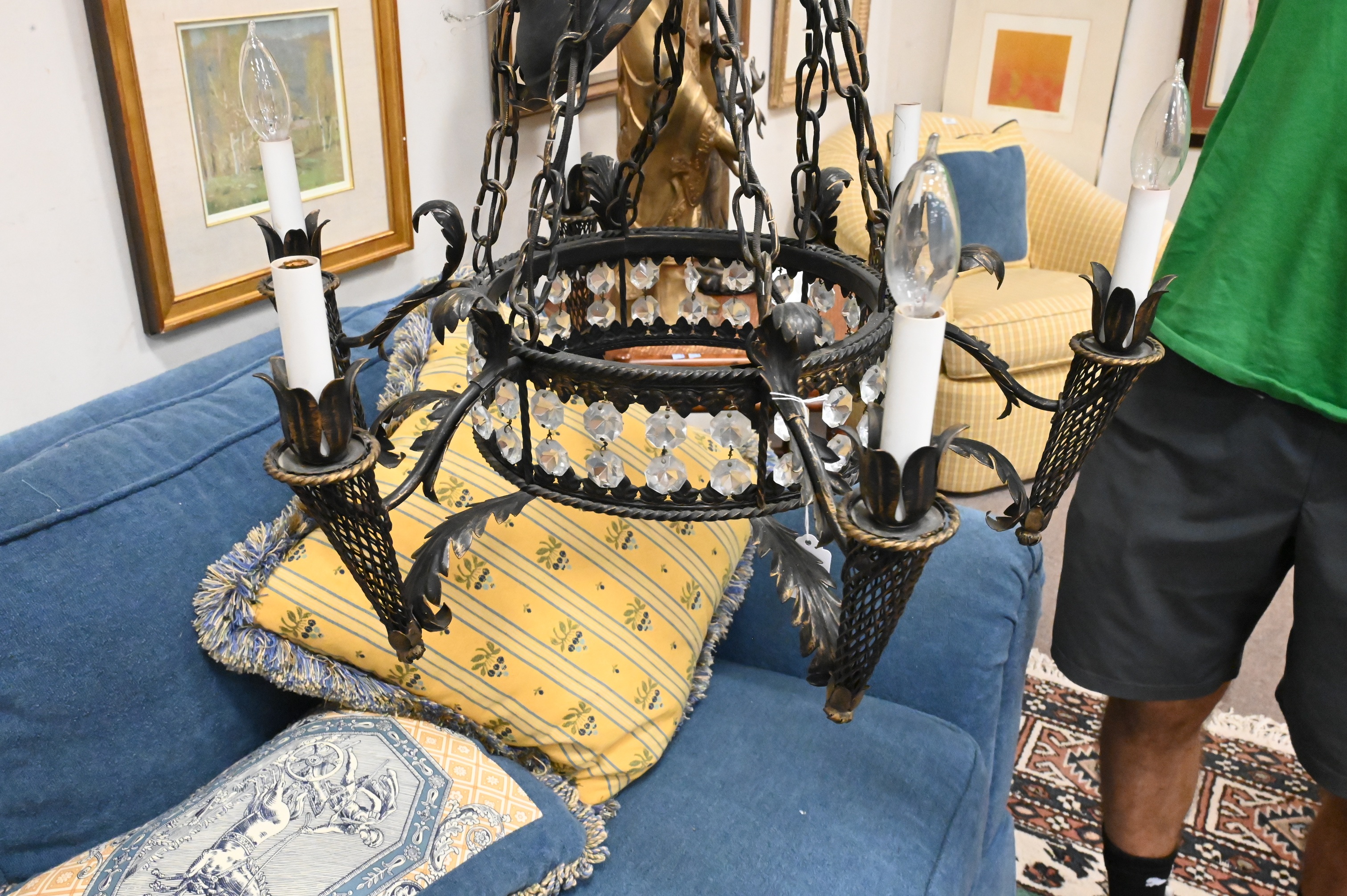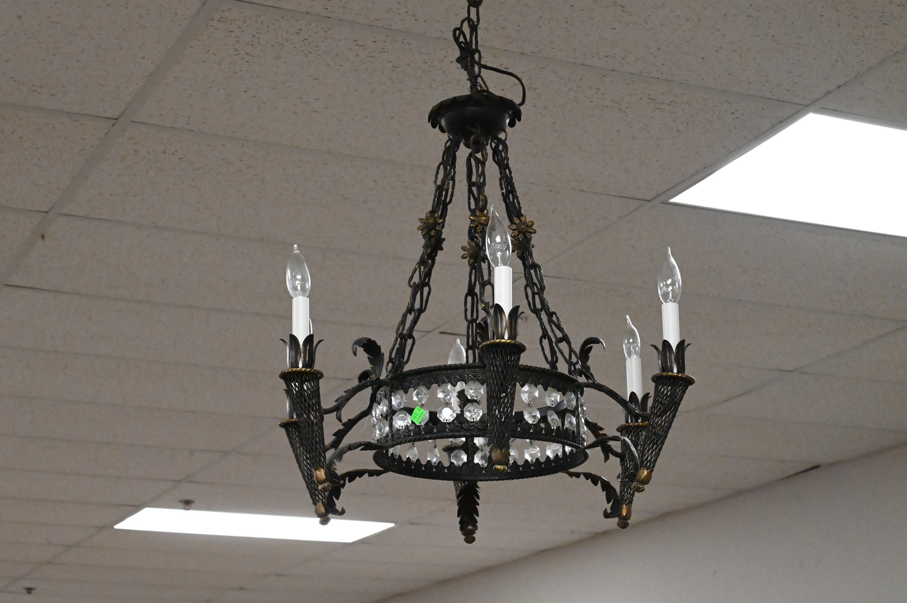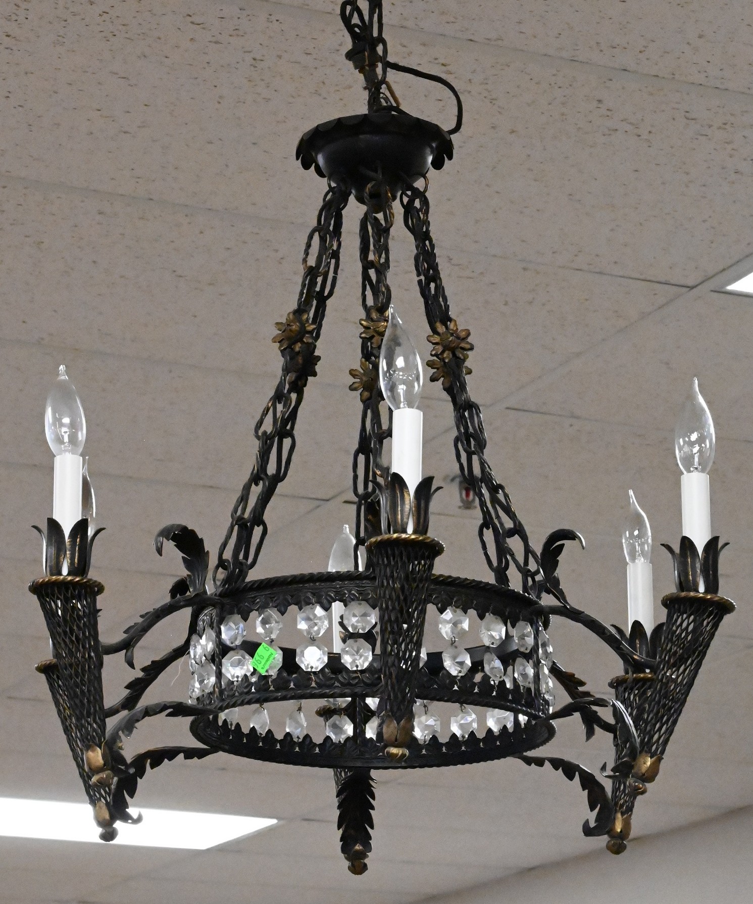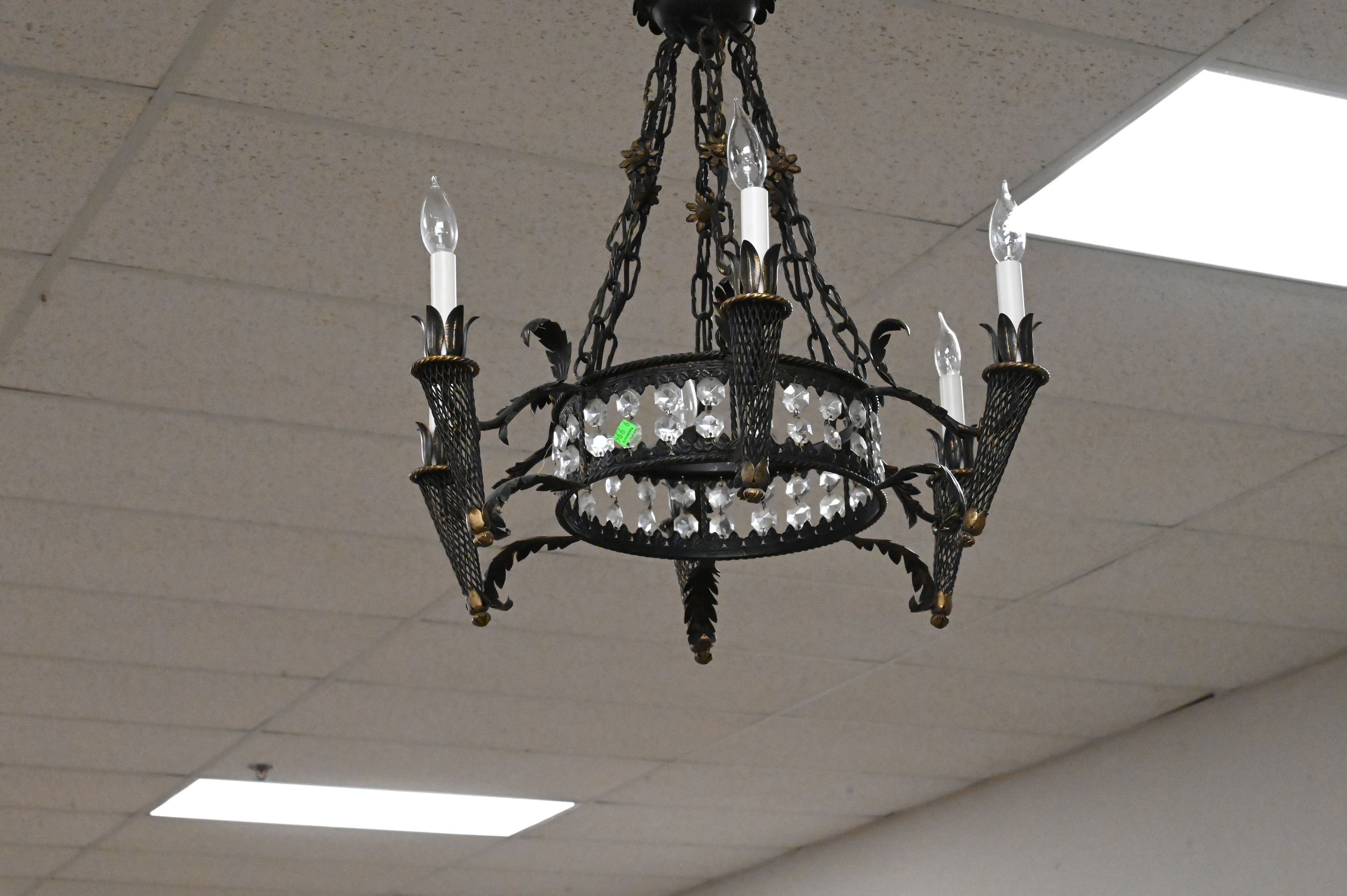 Lot 40: Pair of Six Light White Metal Gothic Style Chandeliers
