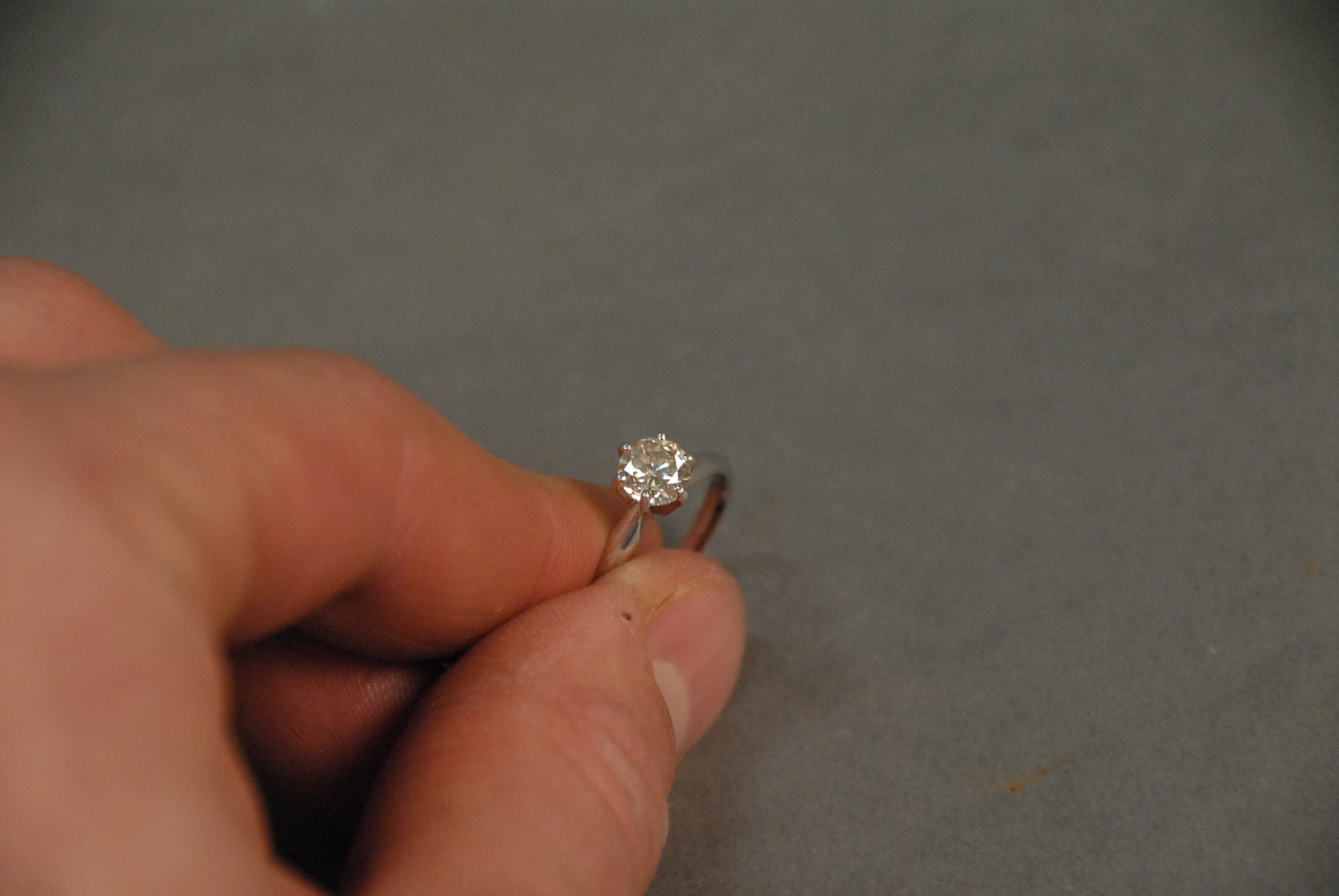Lot 40: Platinum and diamond engagement ring set with center diamond approximately .85 cts. size 7 1/4