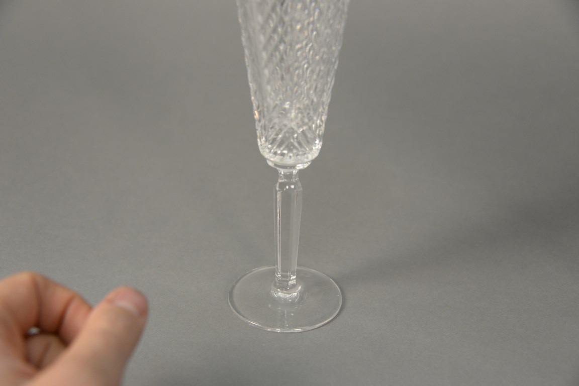 Set of seven Ralph Lauren crystal champagnes 1 rim chip. ht. 9 in.
