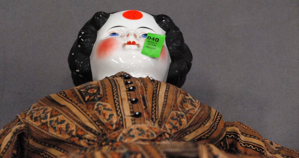 Two piece lot small dollhouse ht. 15 and china head doll lg. 25.