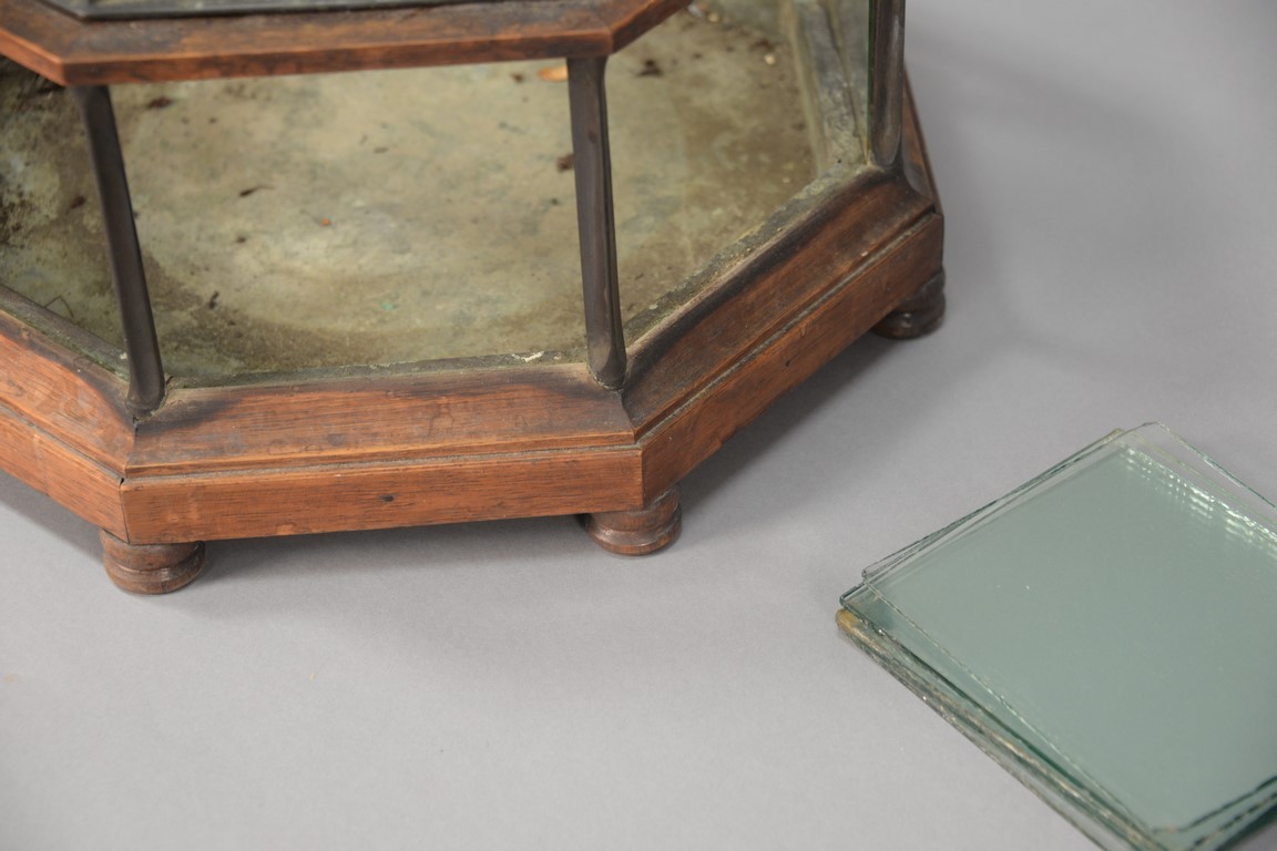 Walnut terrarium in the shape of an octagon some glass missing/broke. ht. 13in., wd. 16in. Provenance: Estate of Arthur C. Pinto, MD