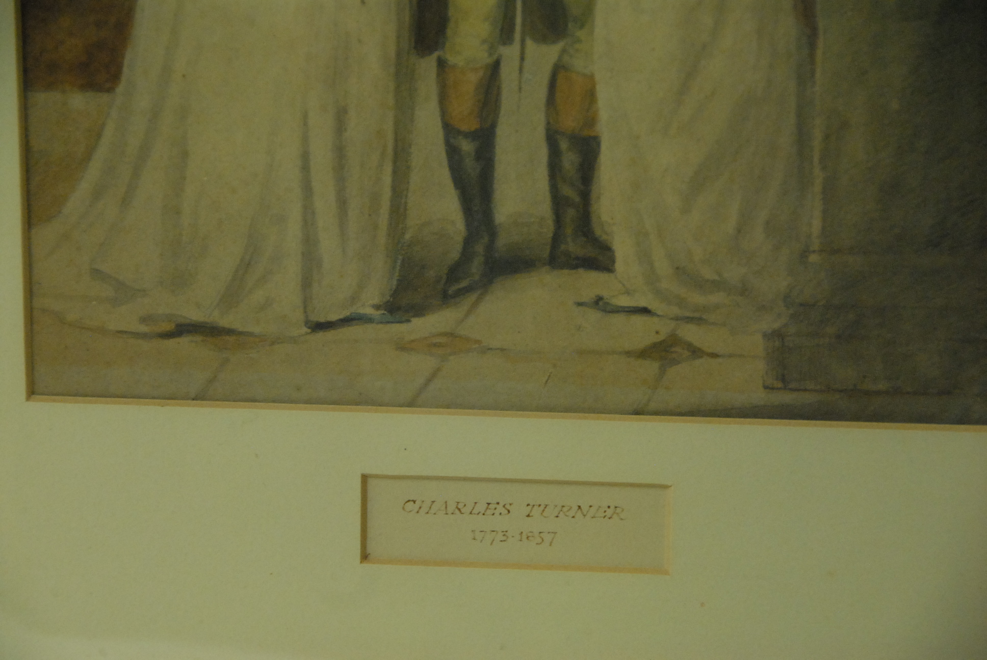 Lot 400: Charles Turner 1773-1857 watercolor with man and two women on reverse Portrait of Mr. Turner, Miss. Charlotte, and Miss Fannie T…