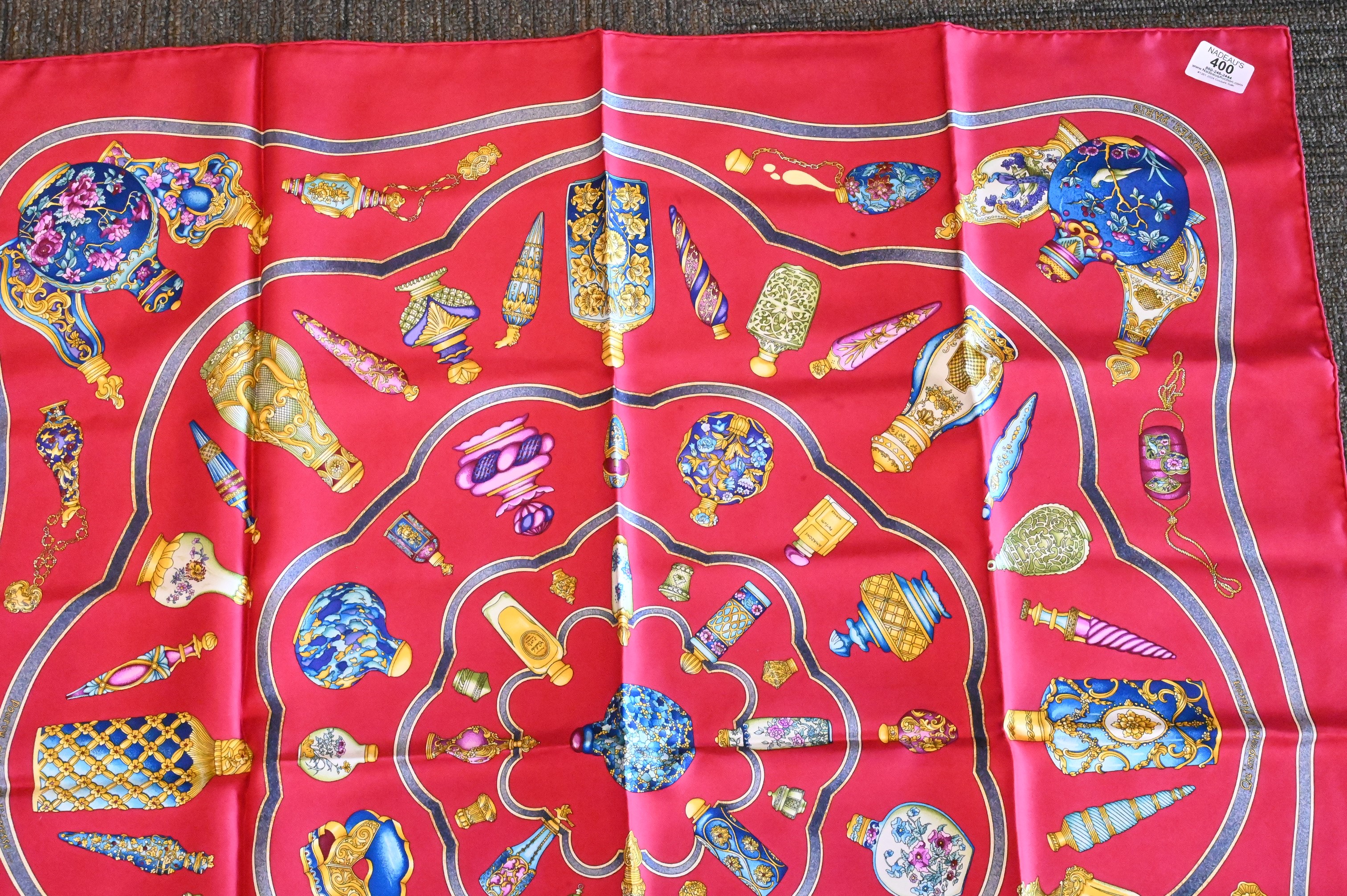 Lot 400: Hermes Paris “Qu’importe le Flacon Pourvu qu’on ait l’ivresse ” Silk Scarf