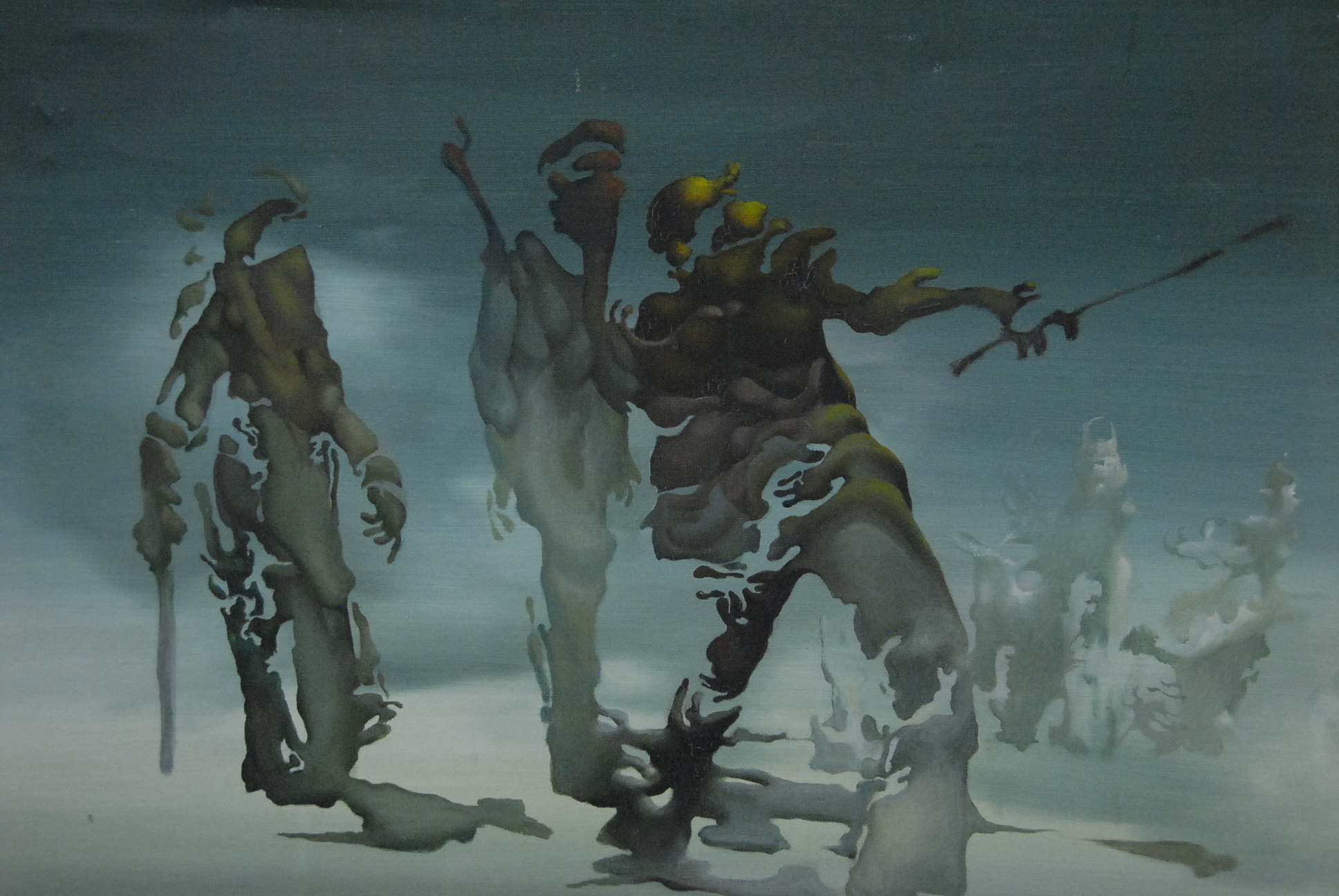 Jules Perahim 1914-2008 AGGRESSIVE DEFENCE La Defense Aggressive oil on canvas signed lower right Perahim 25 1/2 x 32