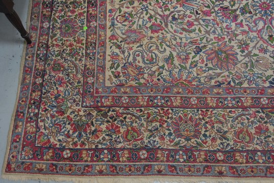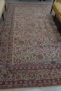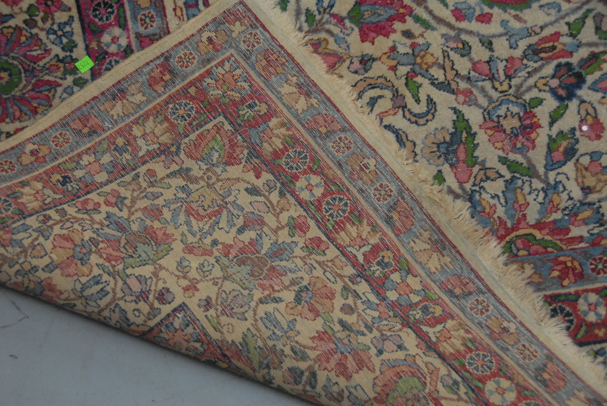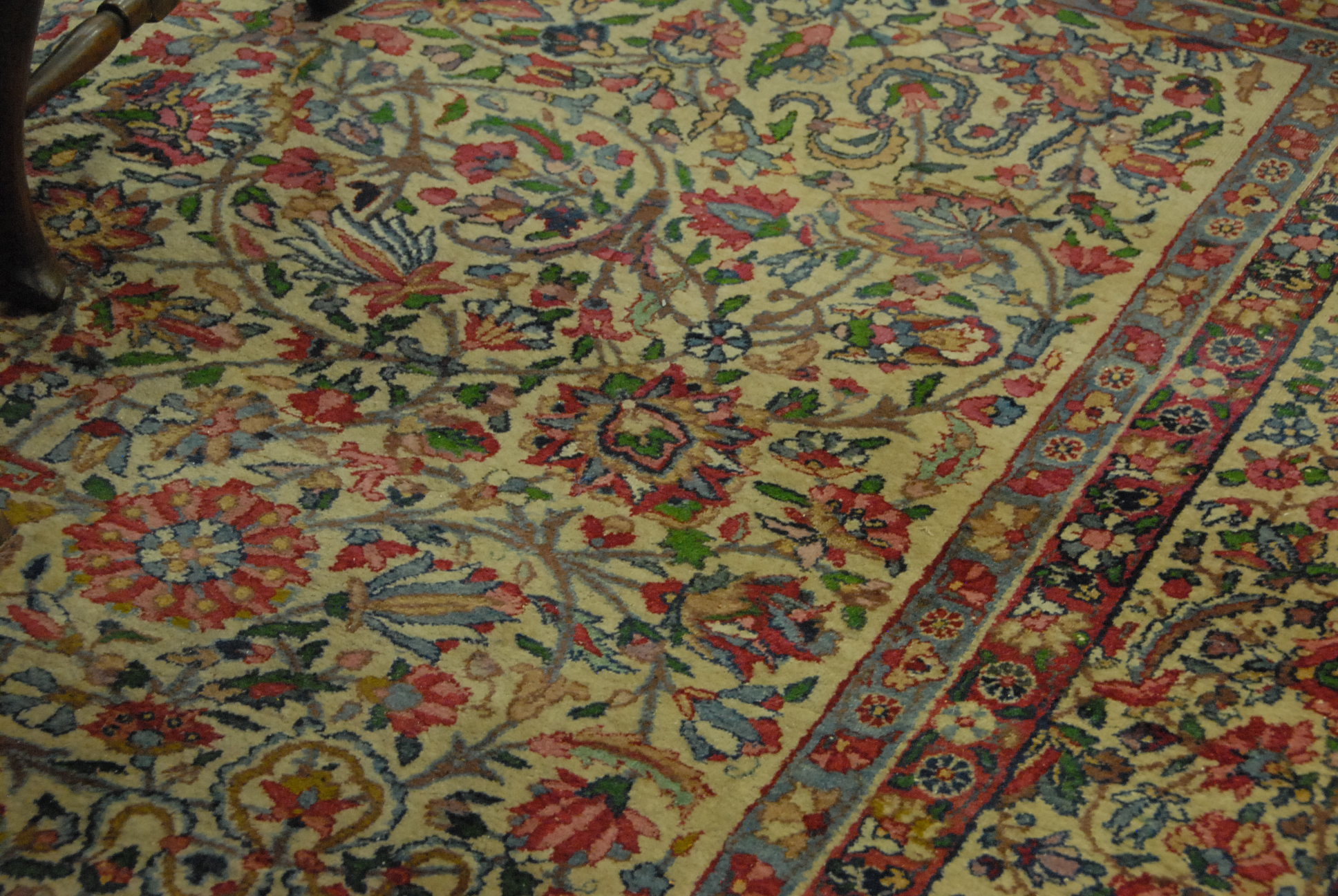 Kirman Oriental carpet wear. 8’7 x 11’8
