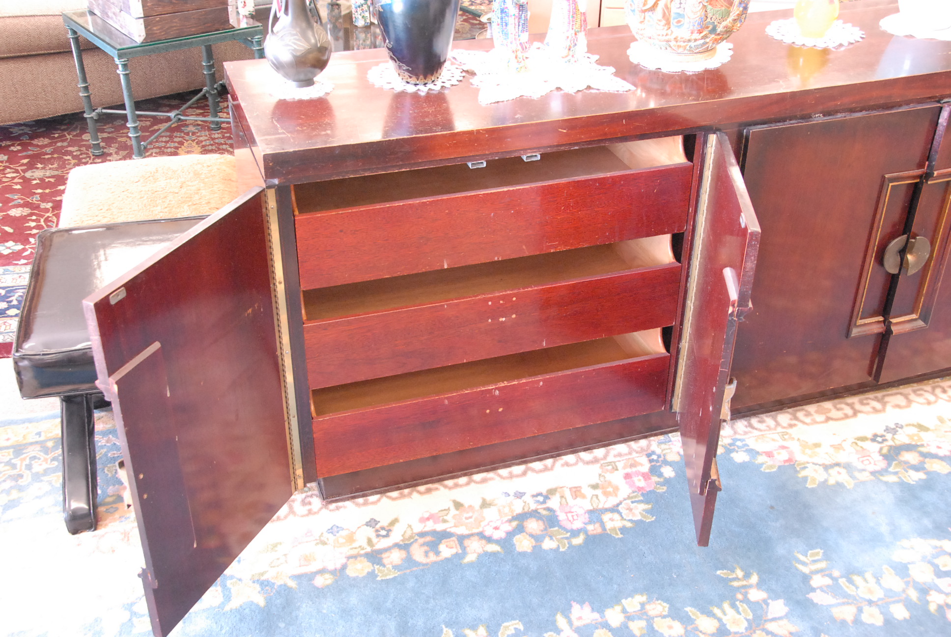 Mahogany mid century side board with four doors