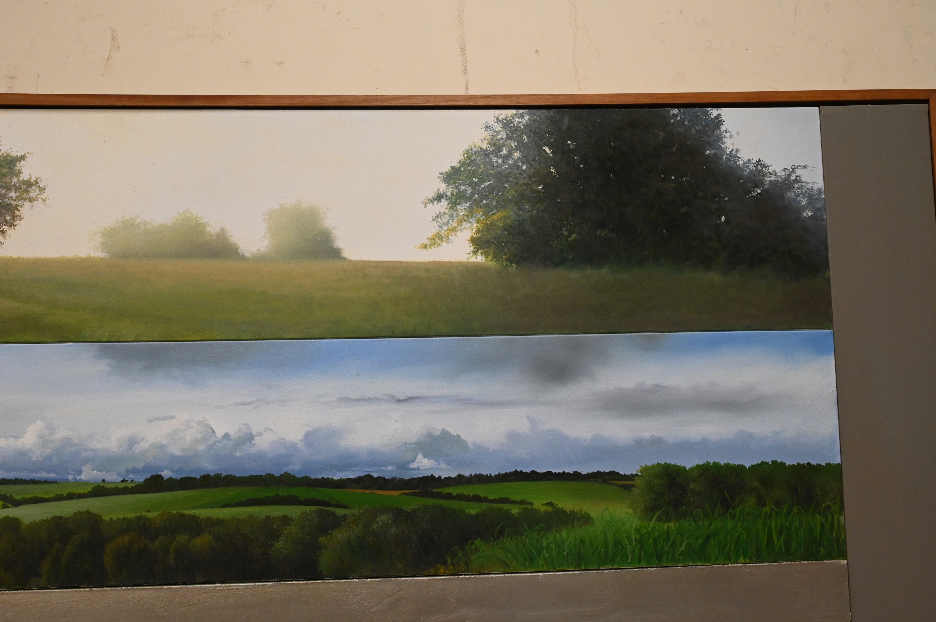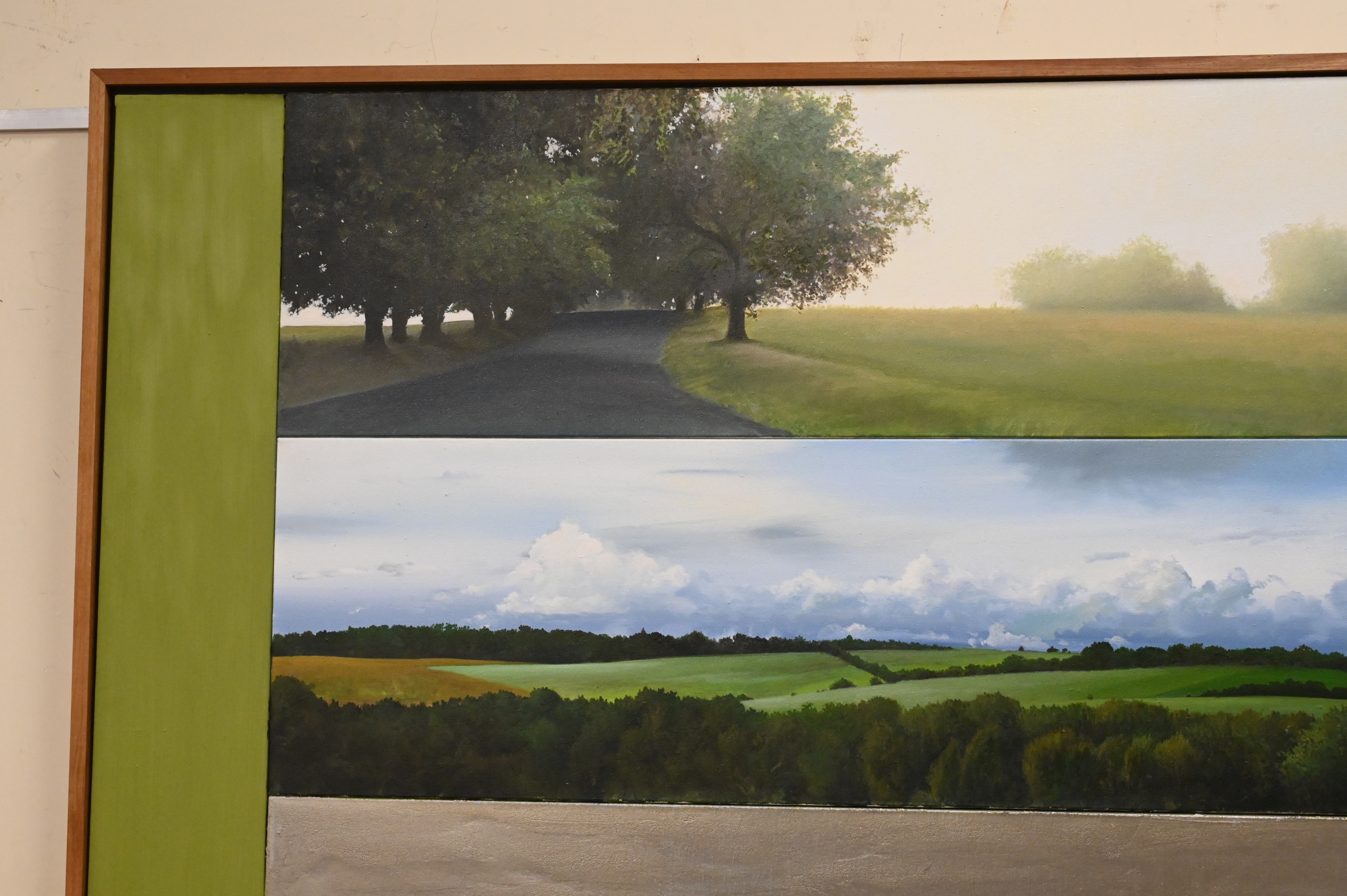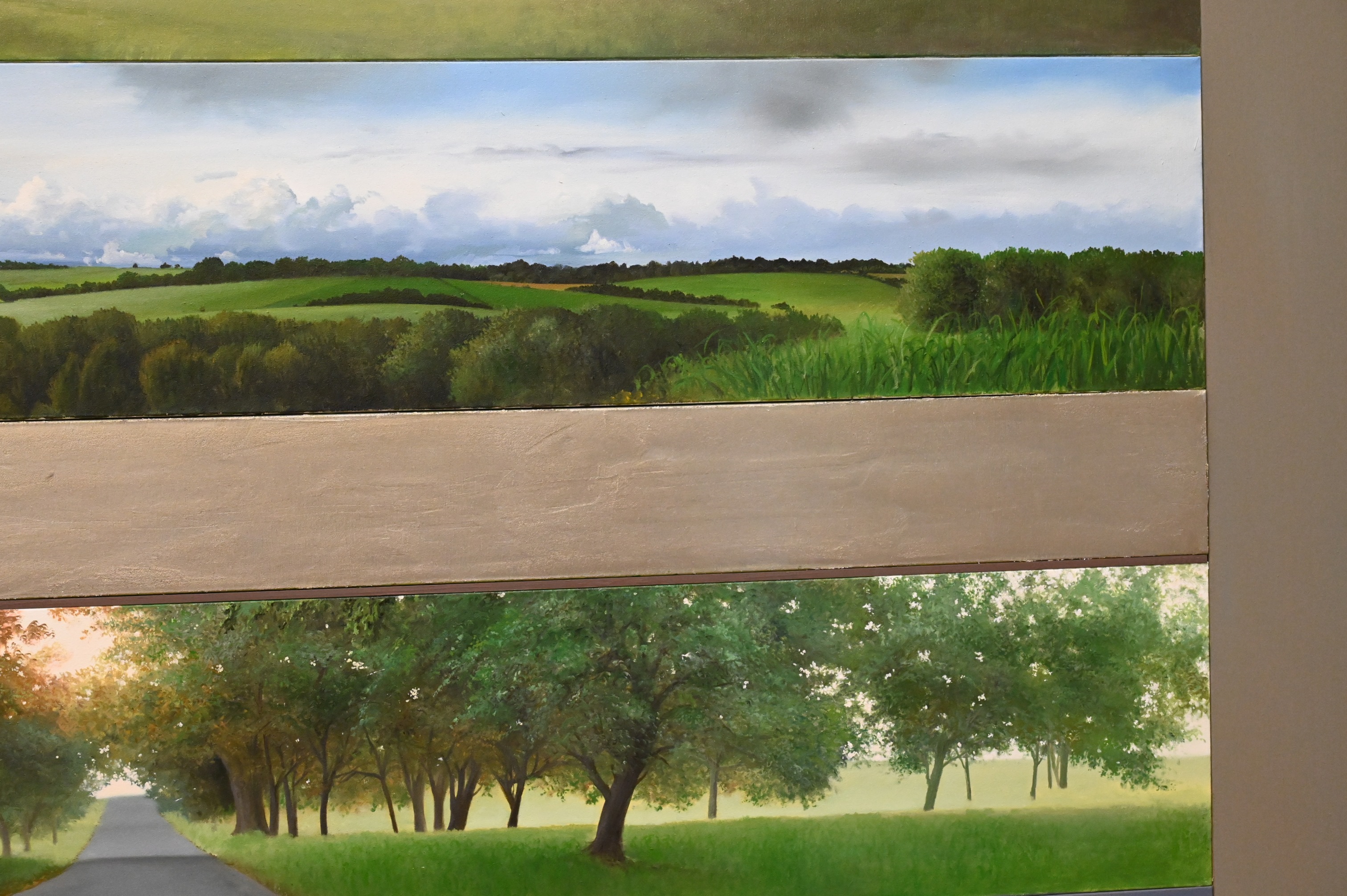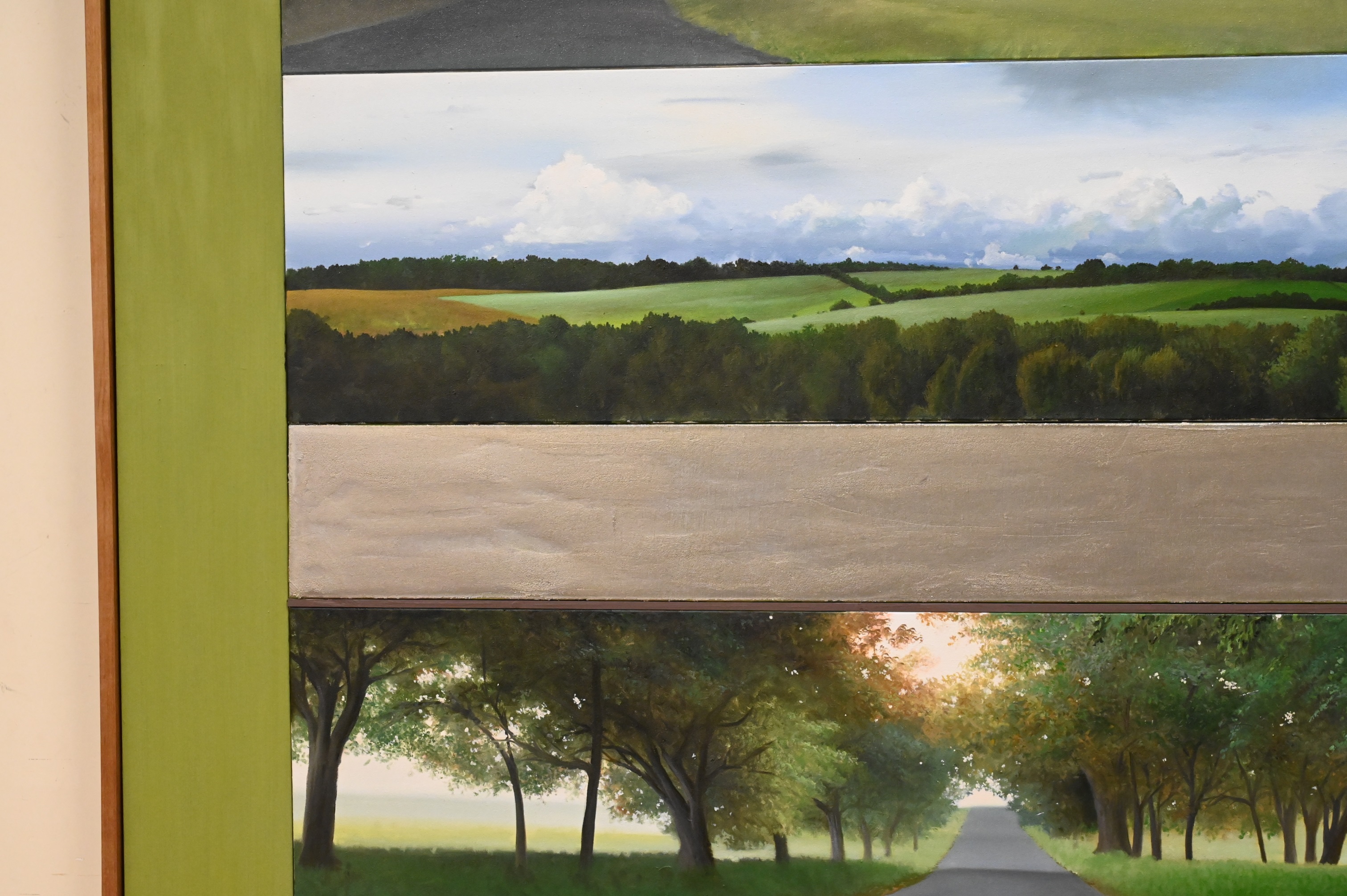 Tula Telfair (West African/American b. 1961) “The Discourse of Pleasure II” 2000 oil and metal on canvas 65″ x 100 1/2″