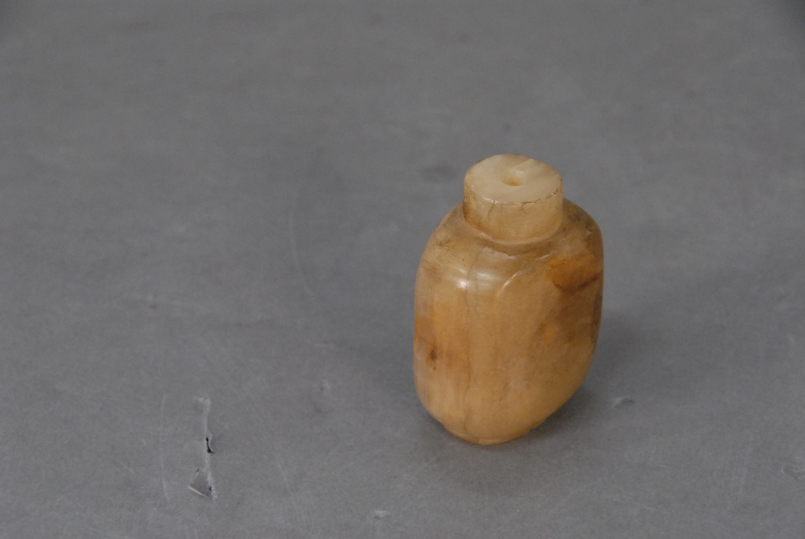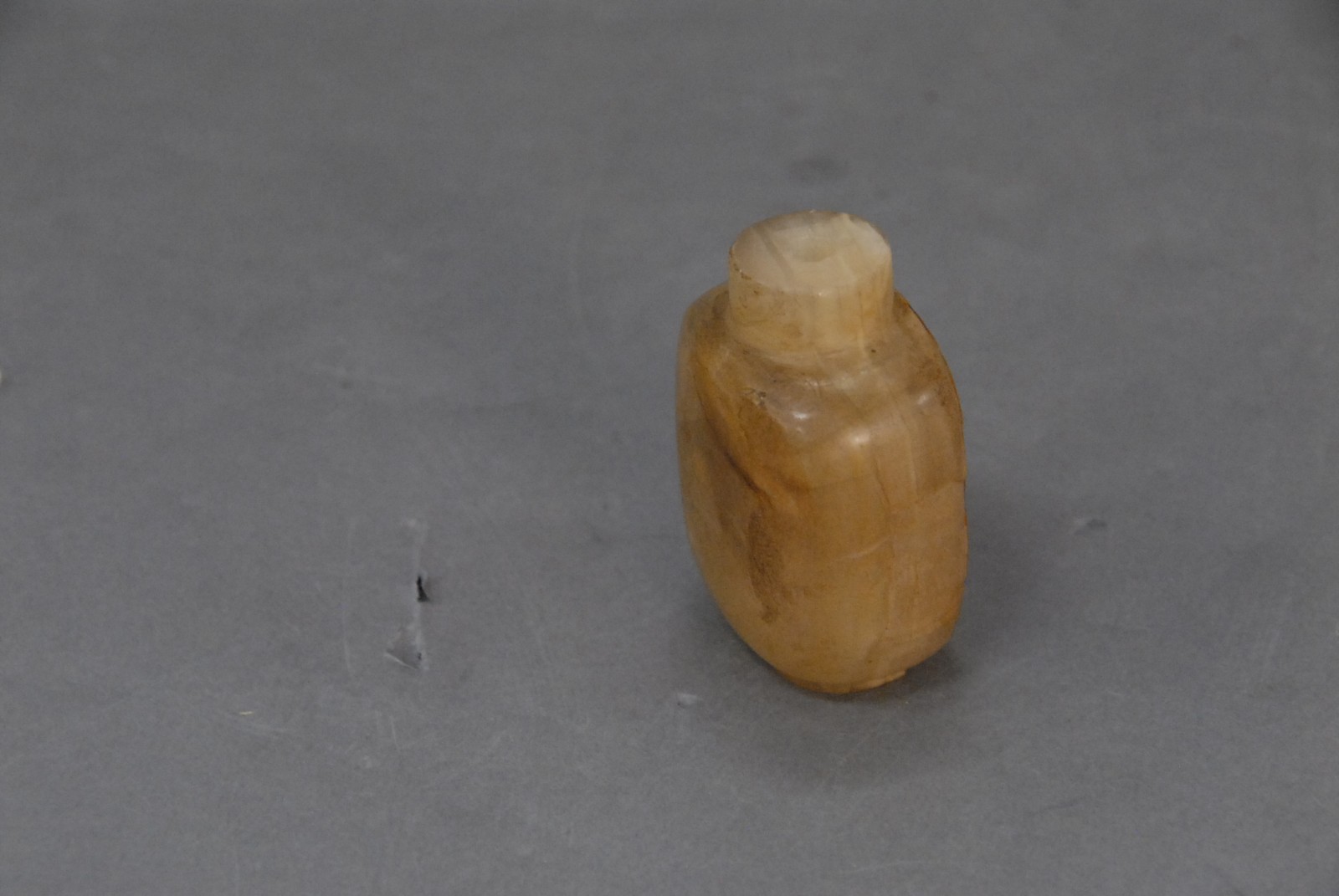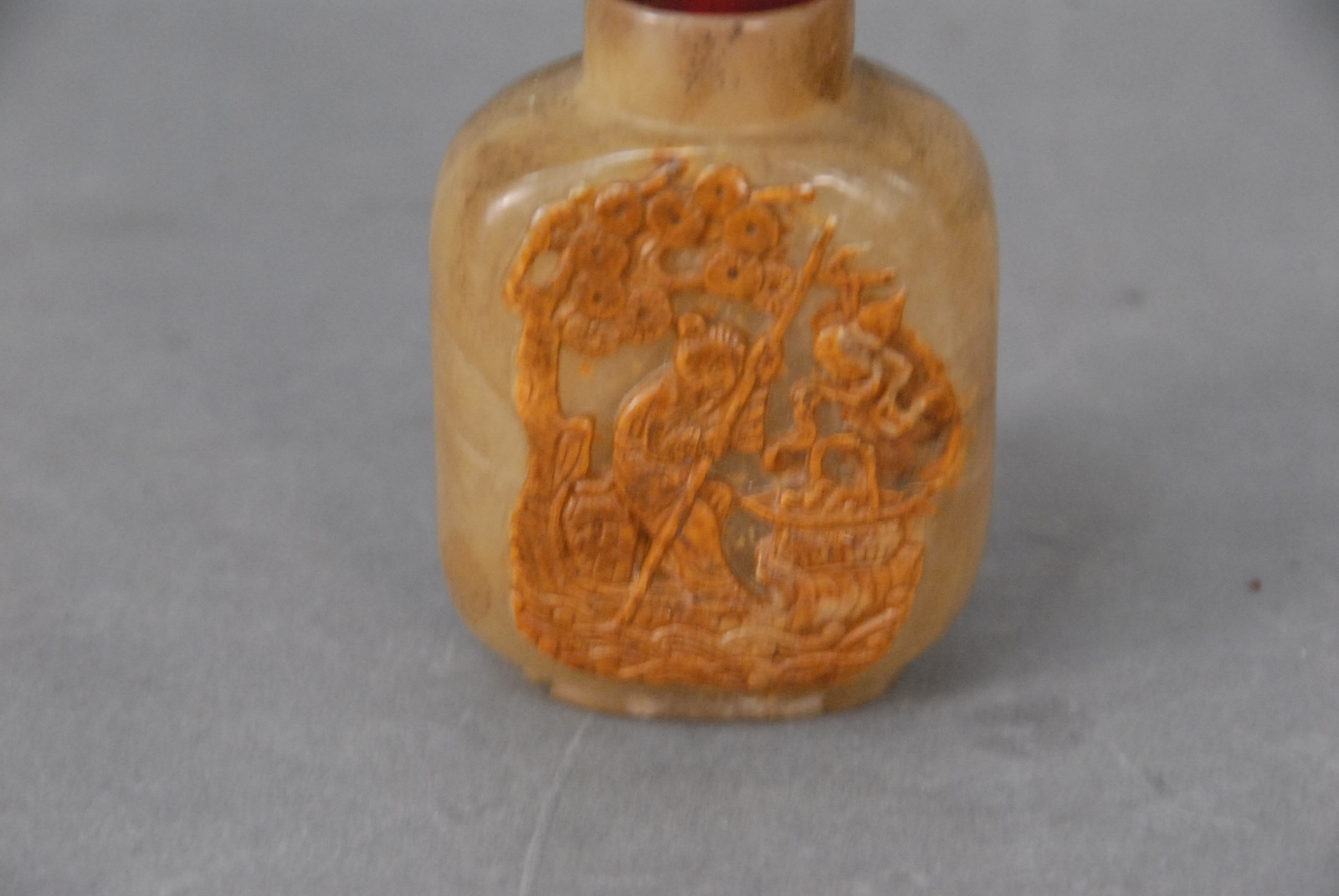 Russet jade nephrite snuff bottle with three dimensional scene, probably 18th century or earlier.