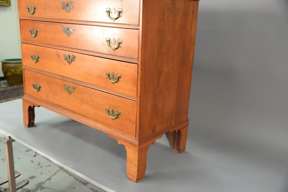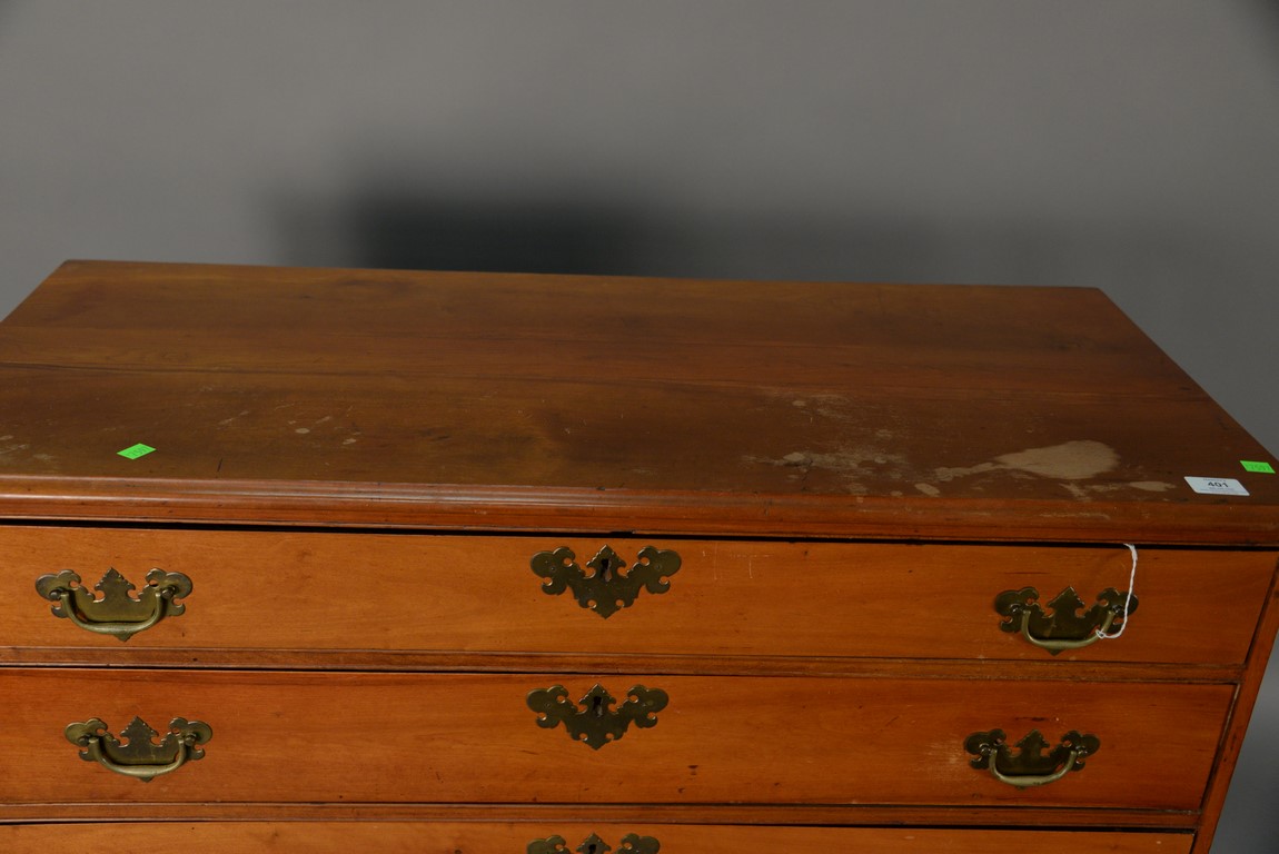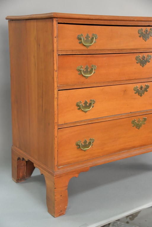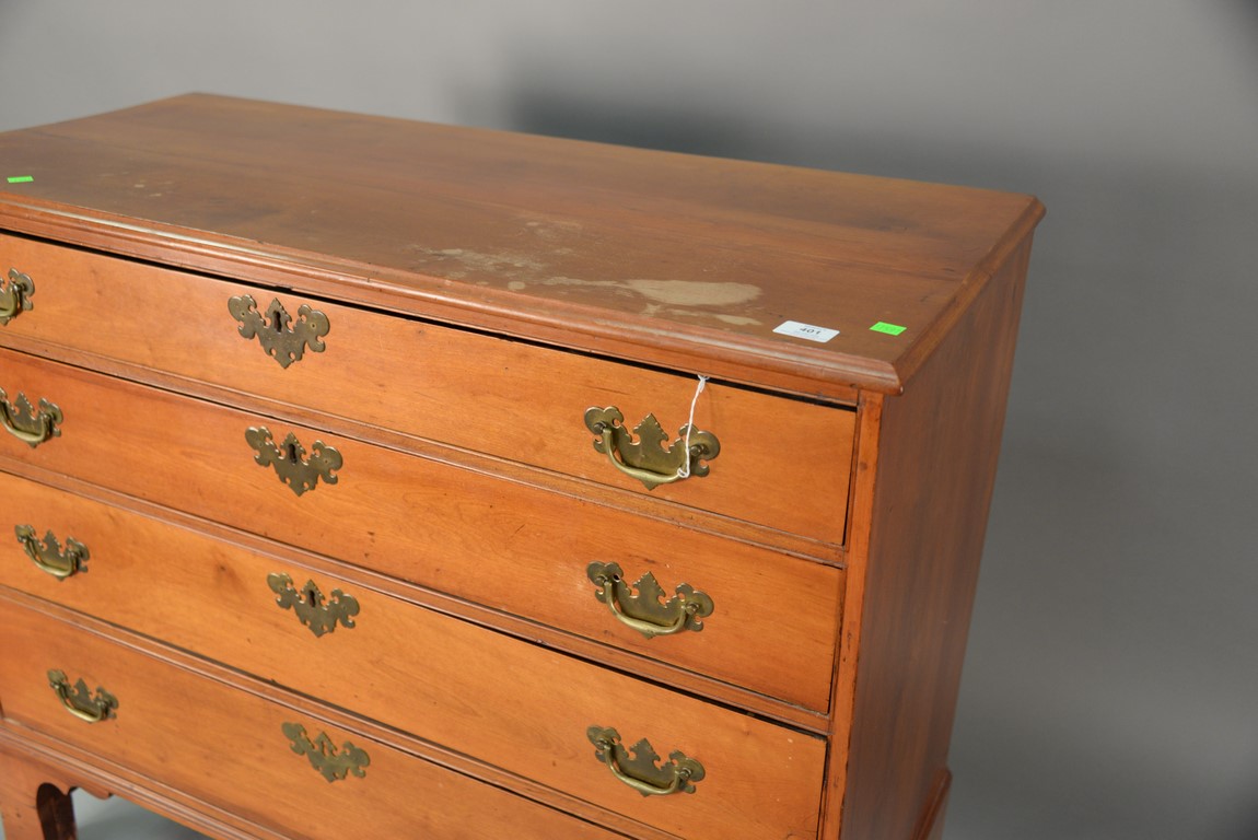Lot 401: Chippendale cherry chest of four graduated drawers on cut out bracket base. ht. 34 in. case wd. 39 1/2 in. dp. 17 1/2 in.