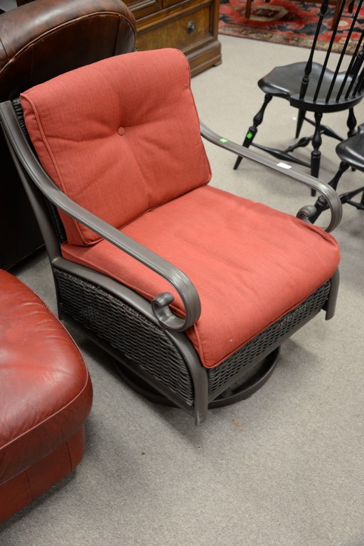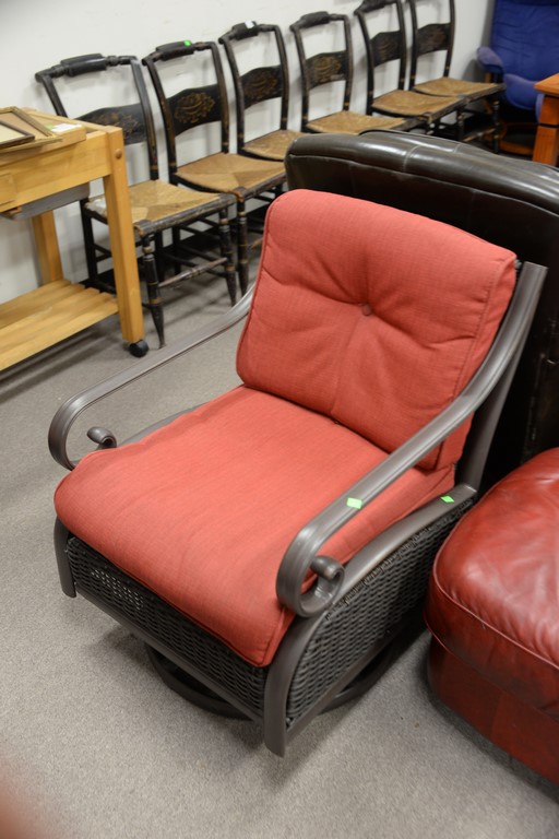 Lot 401: Four piece Martha Living set with loveseat, two swivel rockers, and lift top chest. lg. 48in.