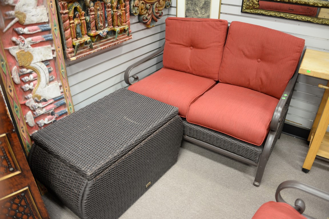 Four piece Martha Living set with loveseat, two swivel rockers, and lift top chest. lg. 48in.