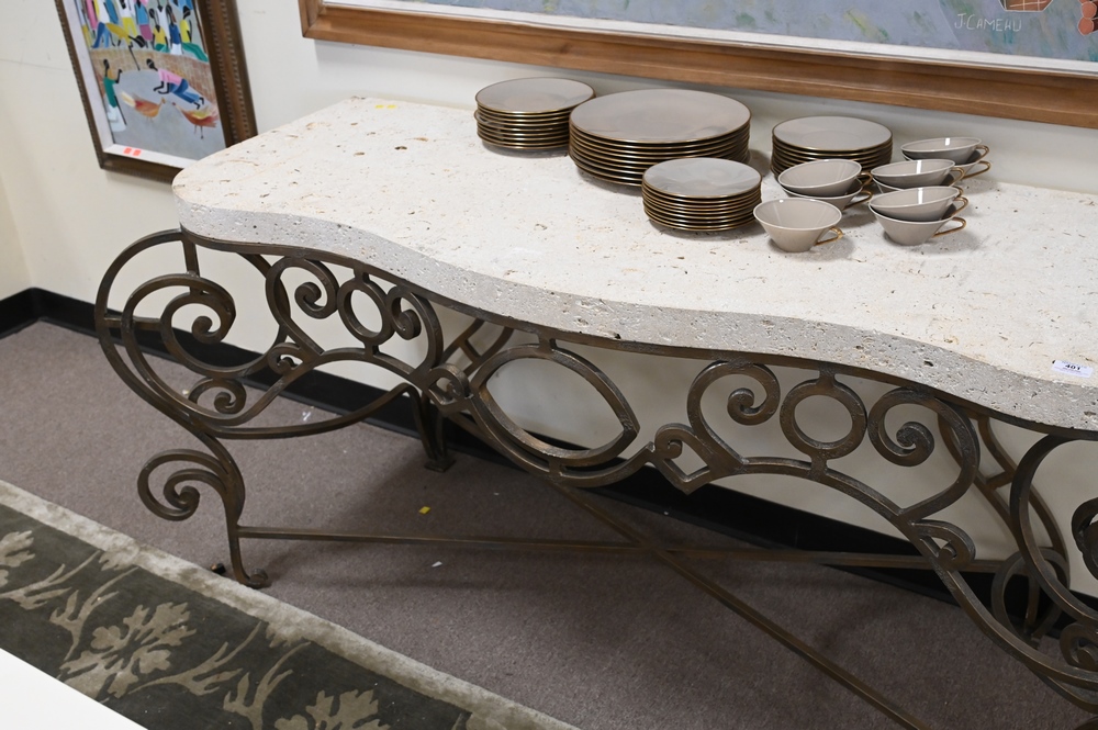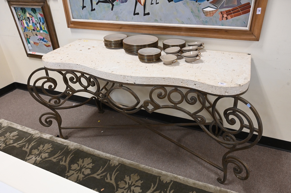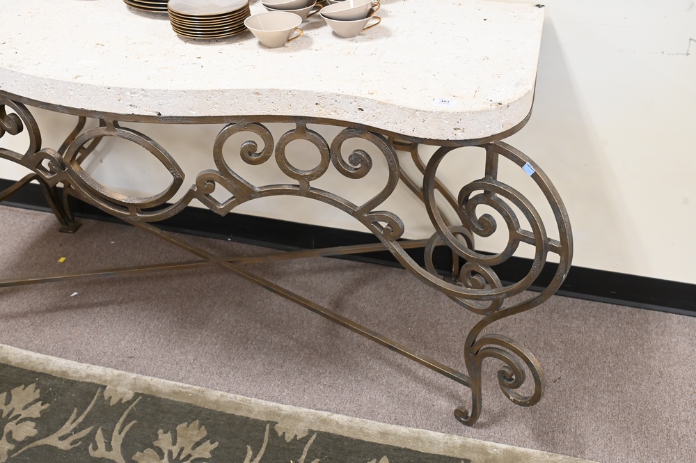 Lot 401: Iron Contemporary Server/Hall Table, having poured top, height 31 1/2 inches, length 60 inches.
