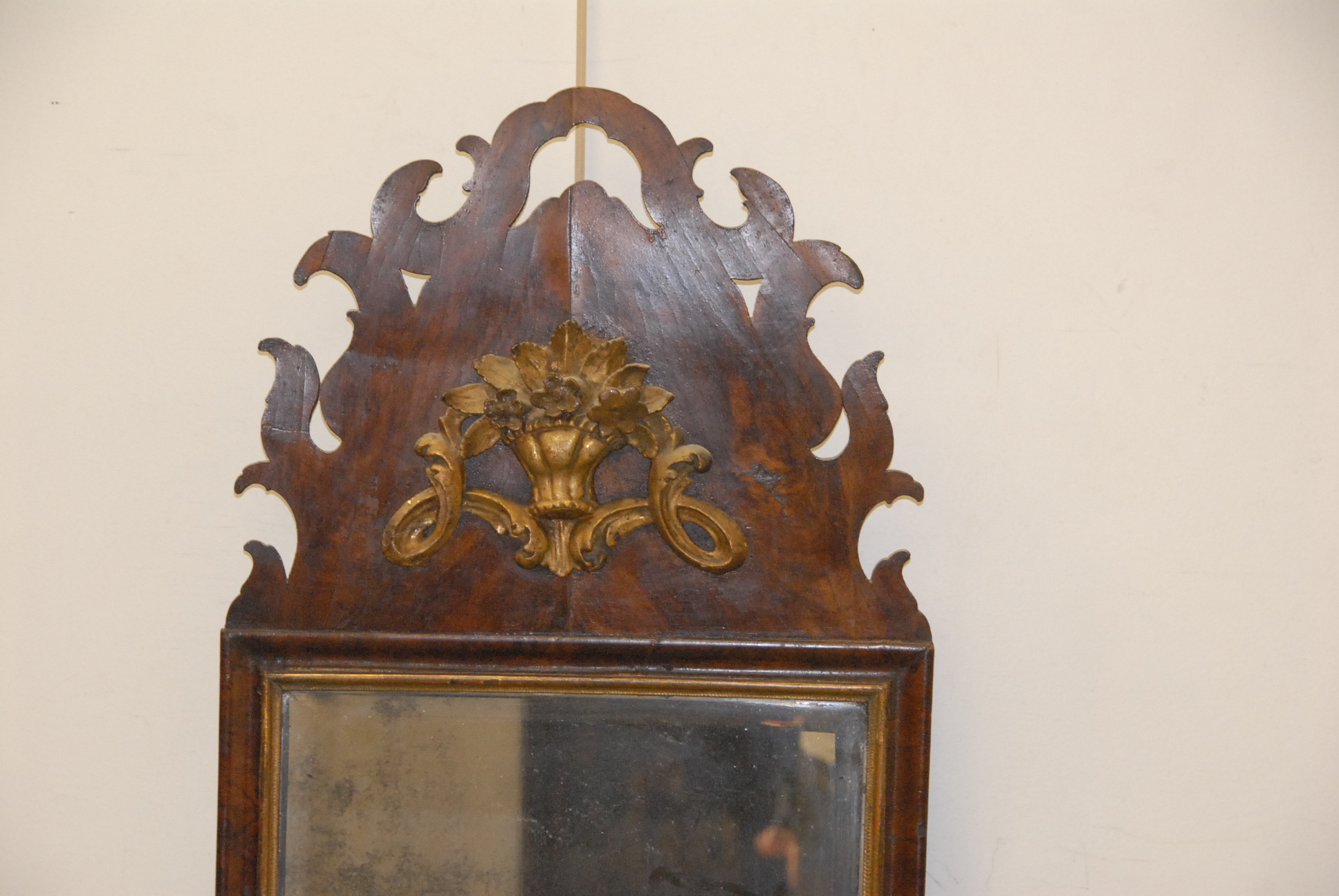 Queen Anne mirror with beveled glass.