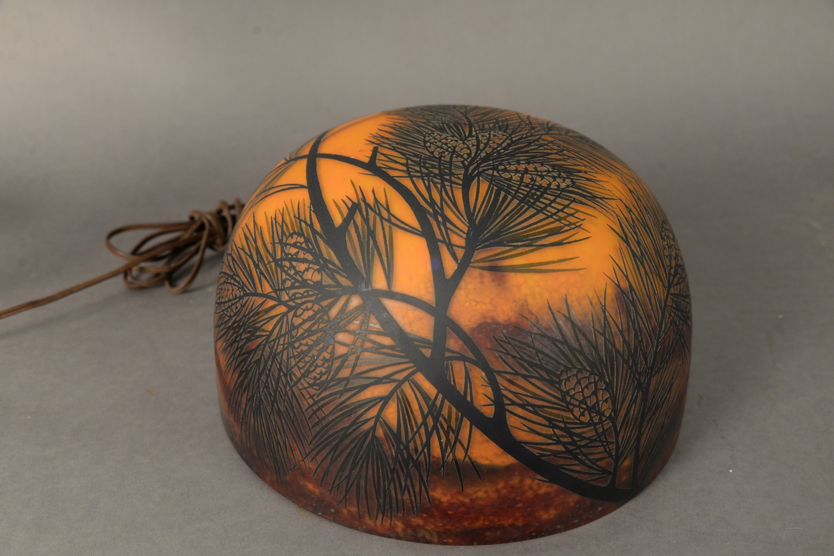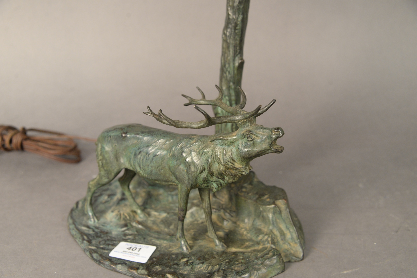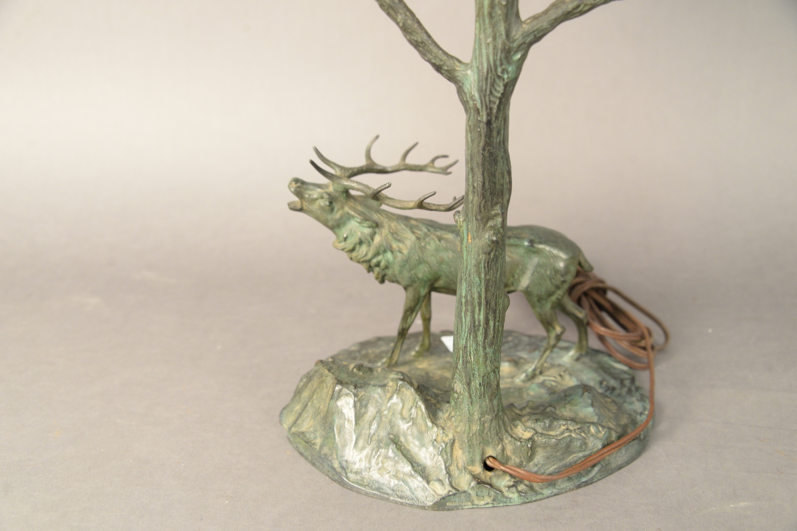 Lot 401: Table Lamp, having cameo glass pine cone shade and Austrian stag bronze base, marked Made in Austria to the base, overall height 23 inches.