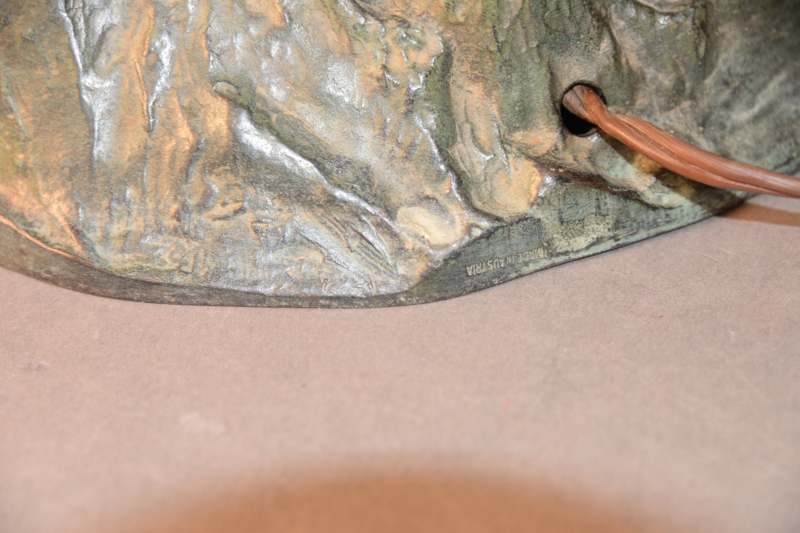 Table Lamp, having cameo glass pine cone shade and Austrian stag bronze base, marked Made in Austria to the base, overall height 23 inches.