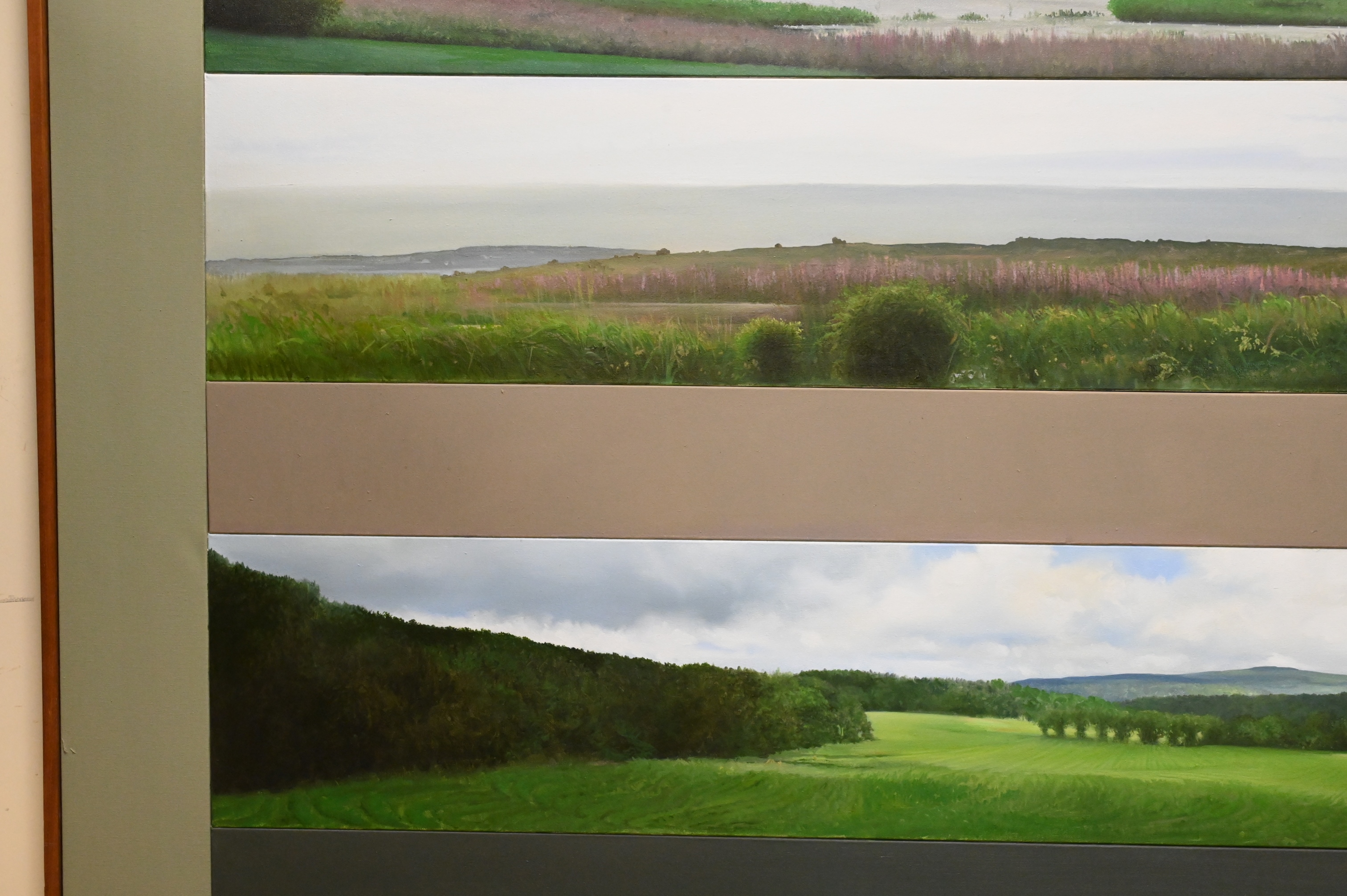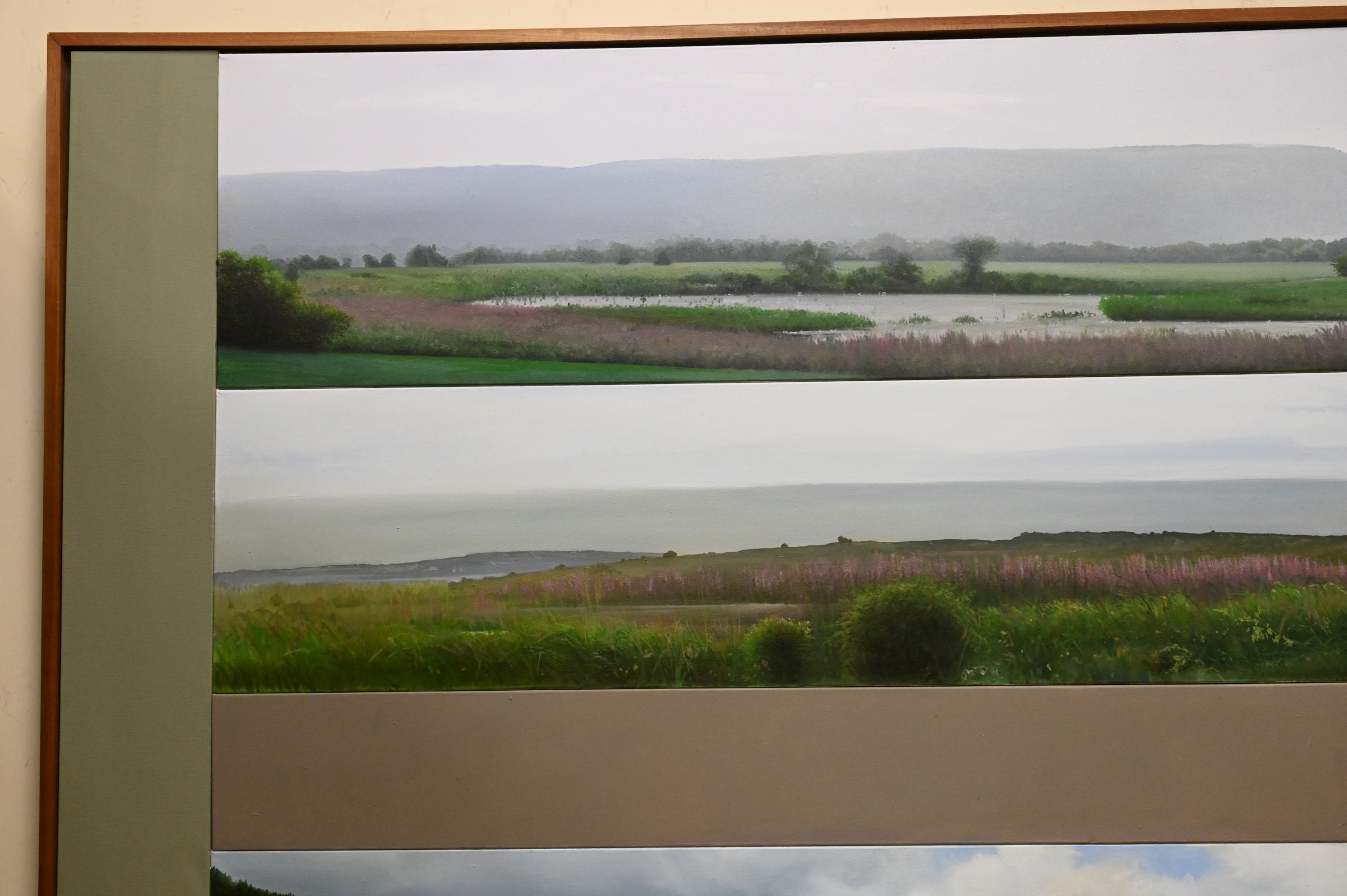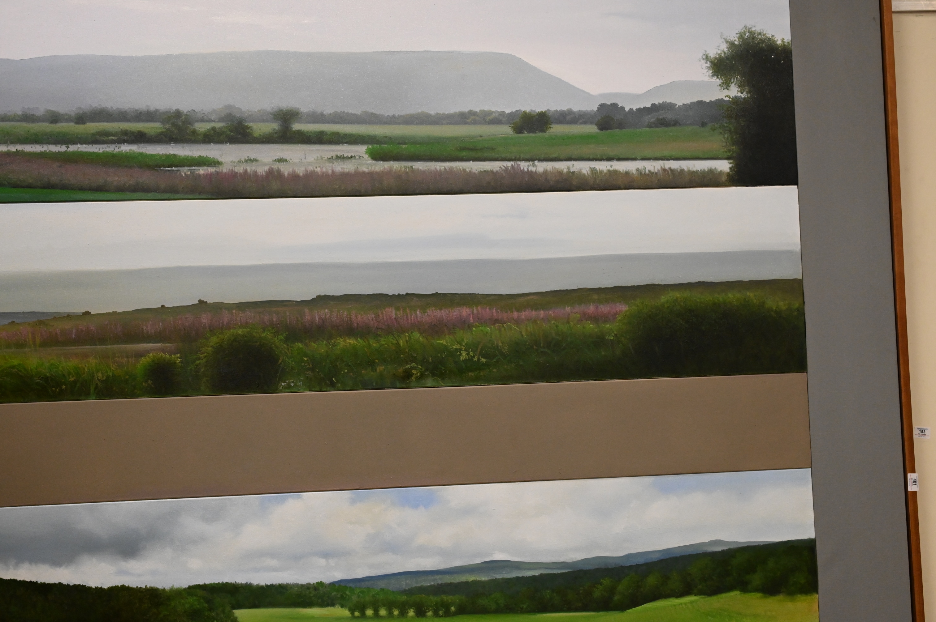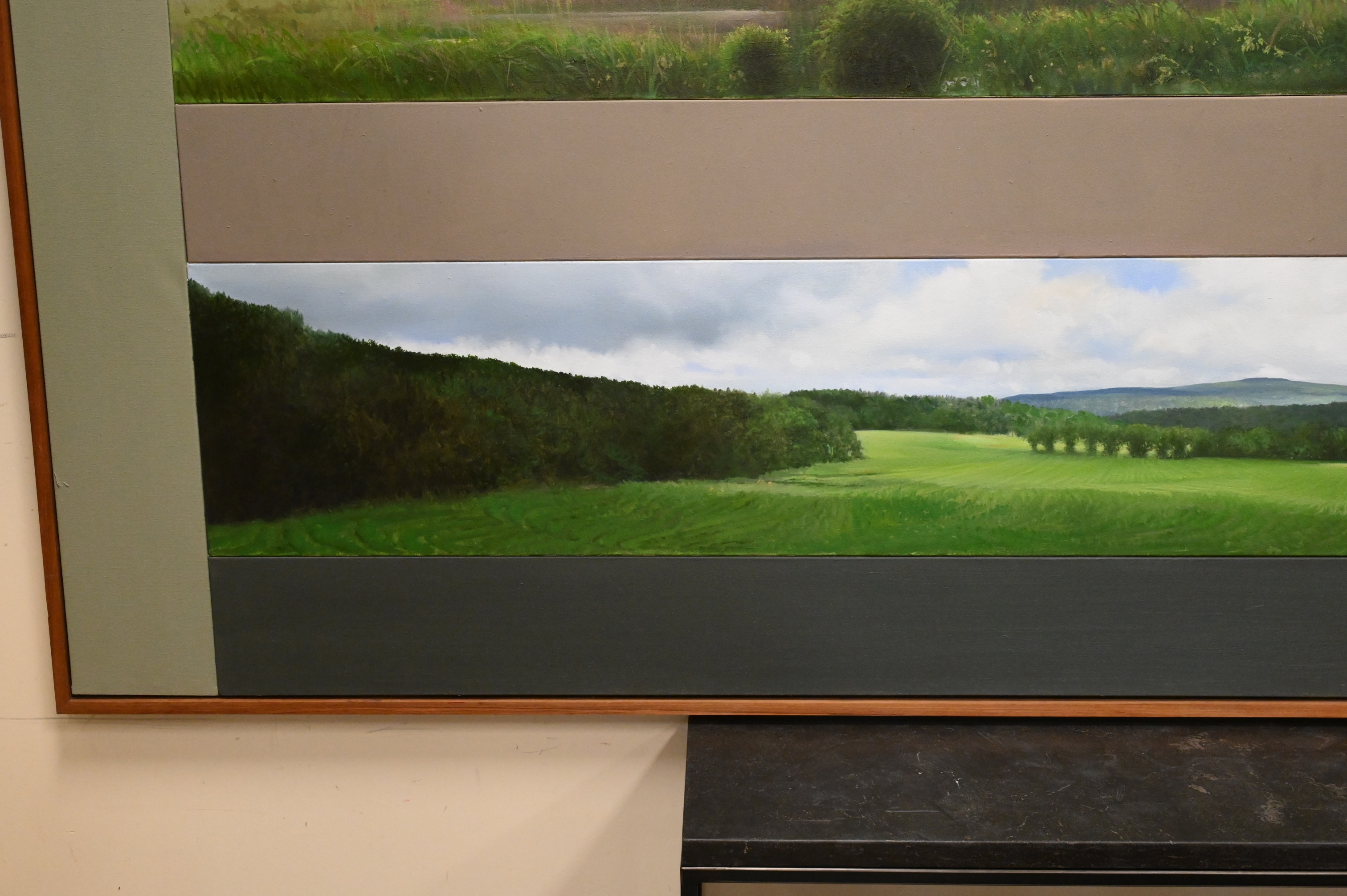 Tula Telfair (West African/American b. 1961) “The Mixing of Genres II” 2000 oil and metal on canvas 67″ x 100 1/2″