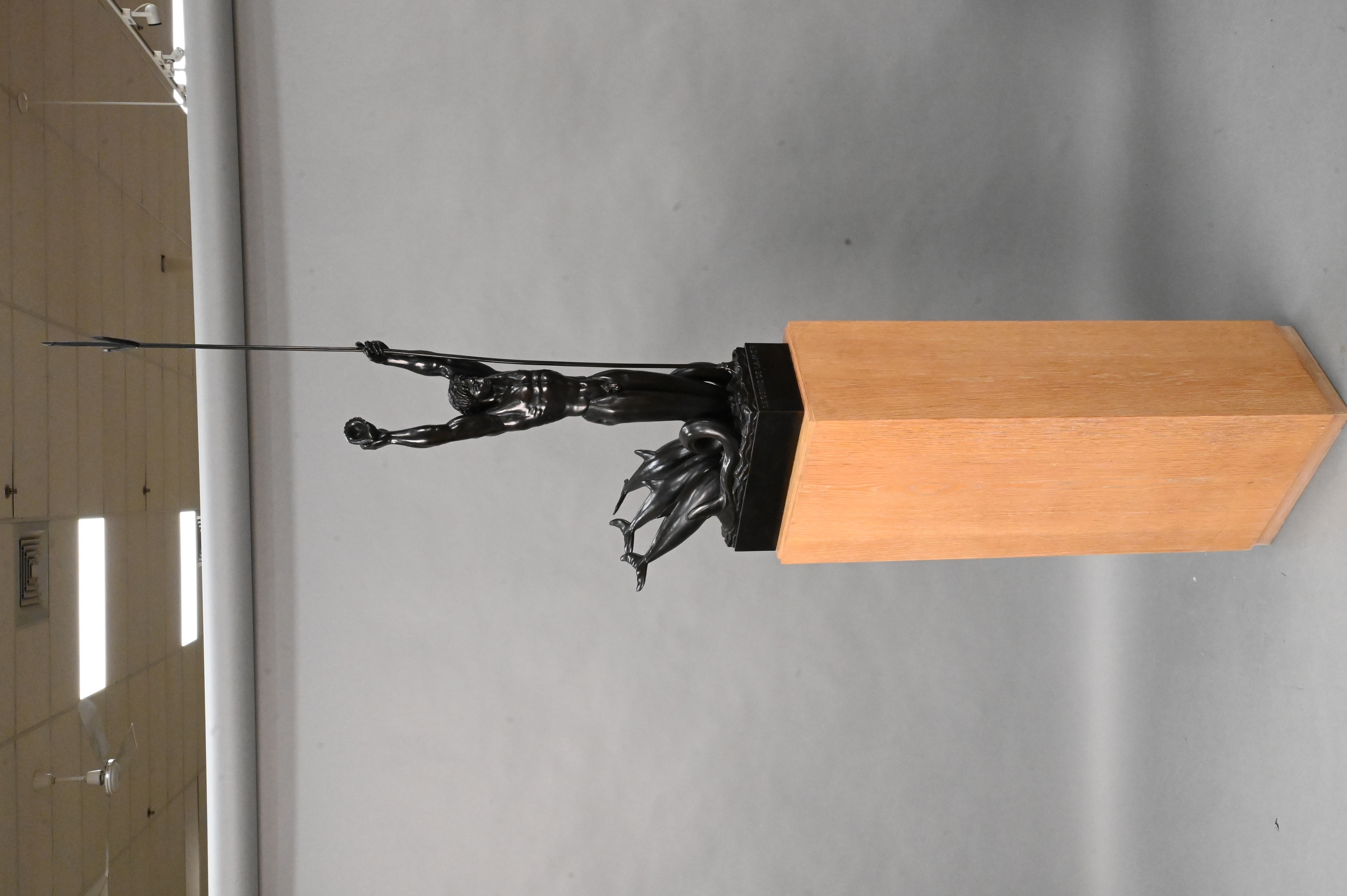 Patinated bronze of the Greek sea god,Triton, on ceruse oak wood pedestal