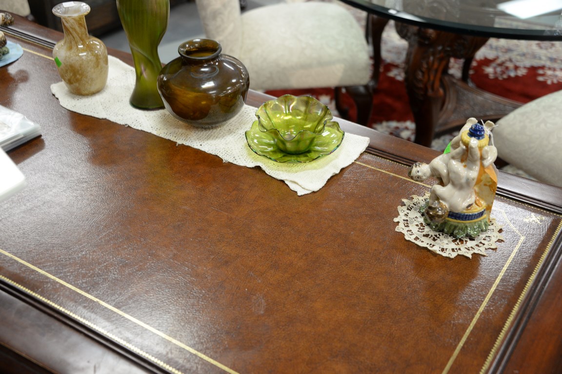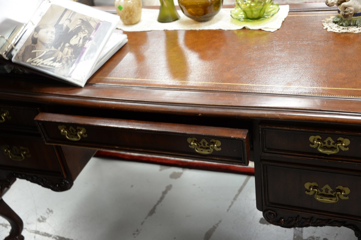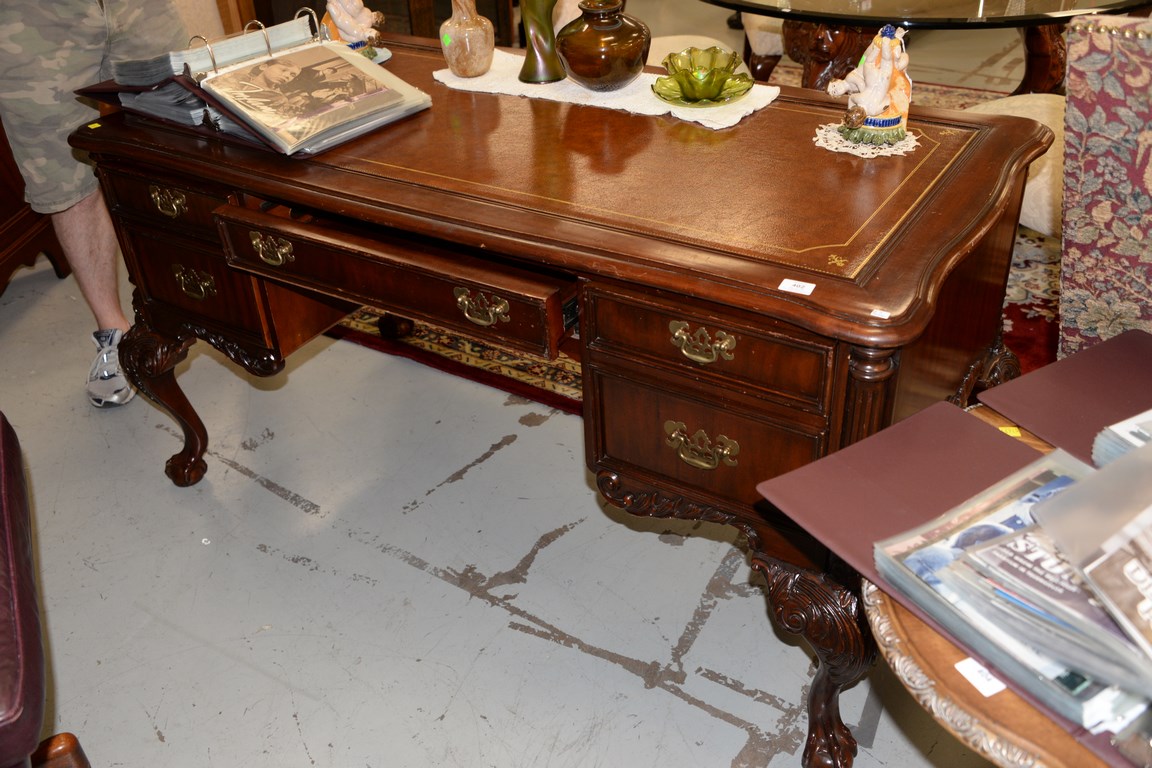 Ellis from Sligh mahogany leather top desk. ht. 31 in. top: 30 x 60