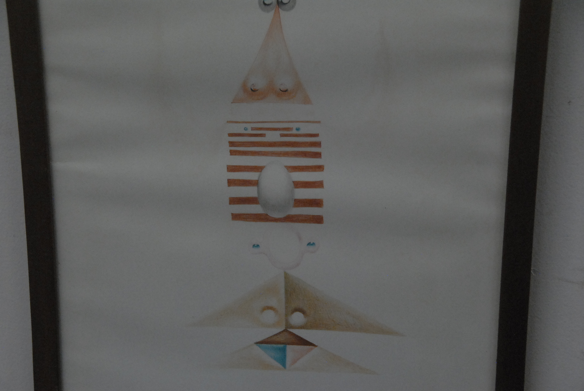Lot 402: Jules Perahim 1914-2008 ABSTRACT WITH EYES colored pencil signed lower right Perahim 70 19 1/4 x 12 1/2