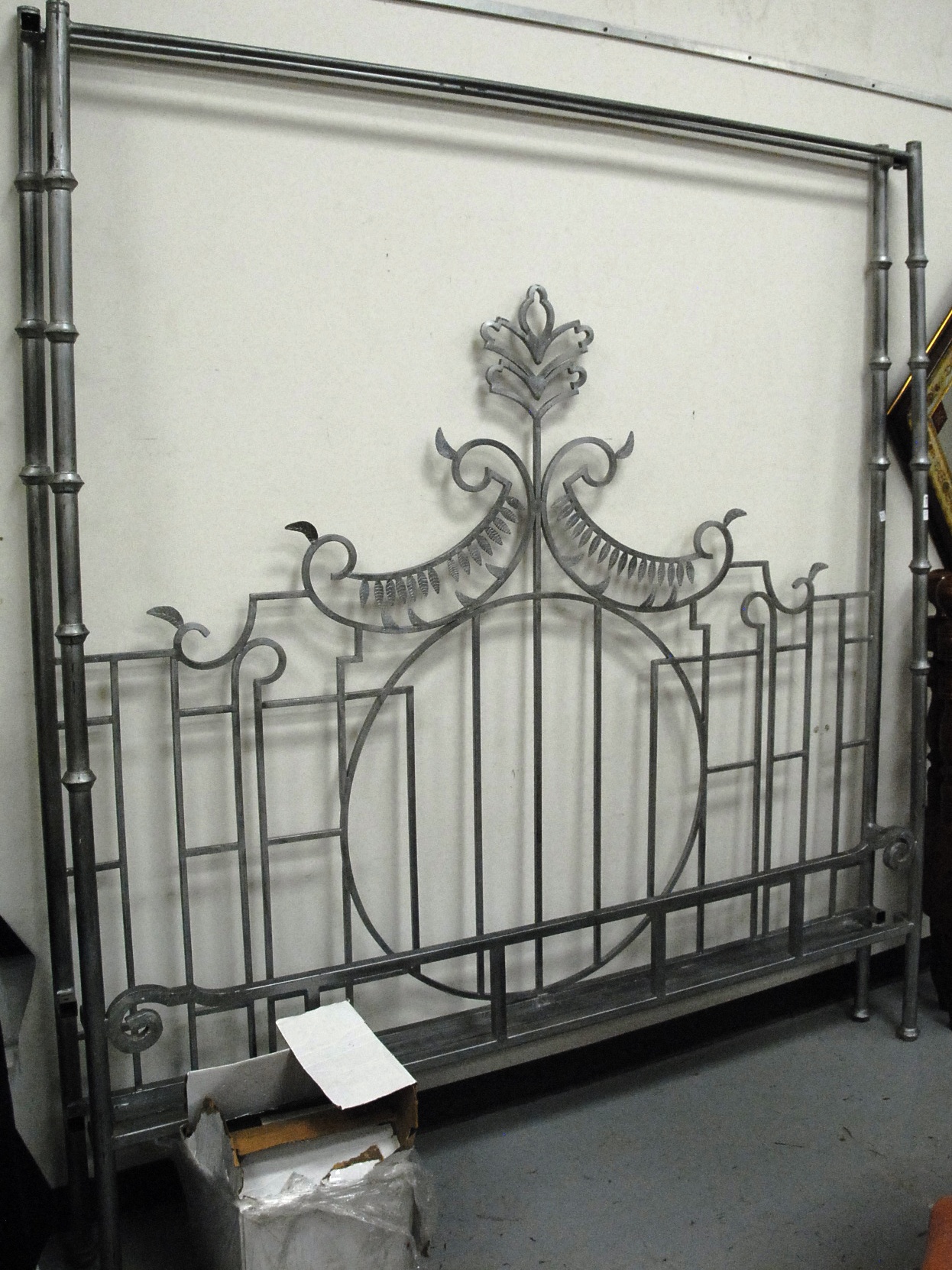 King size iron canopy bed some parts missing, ht. 91, wd. 81.