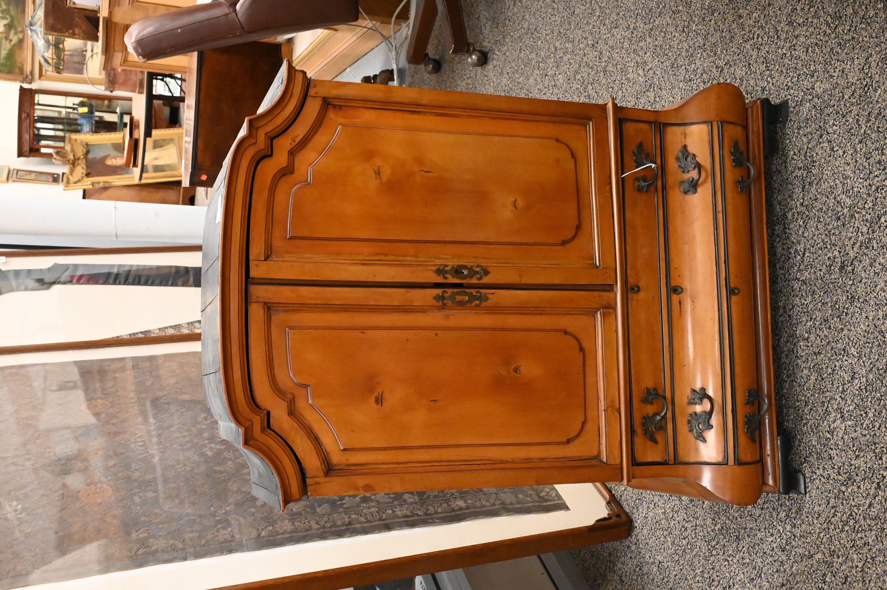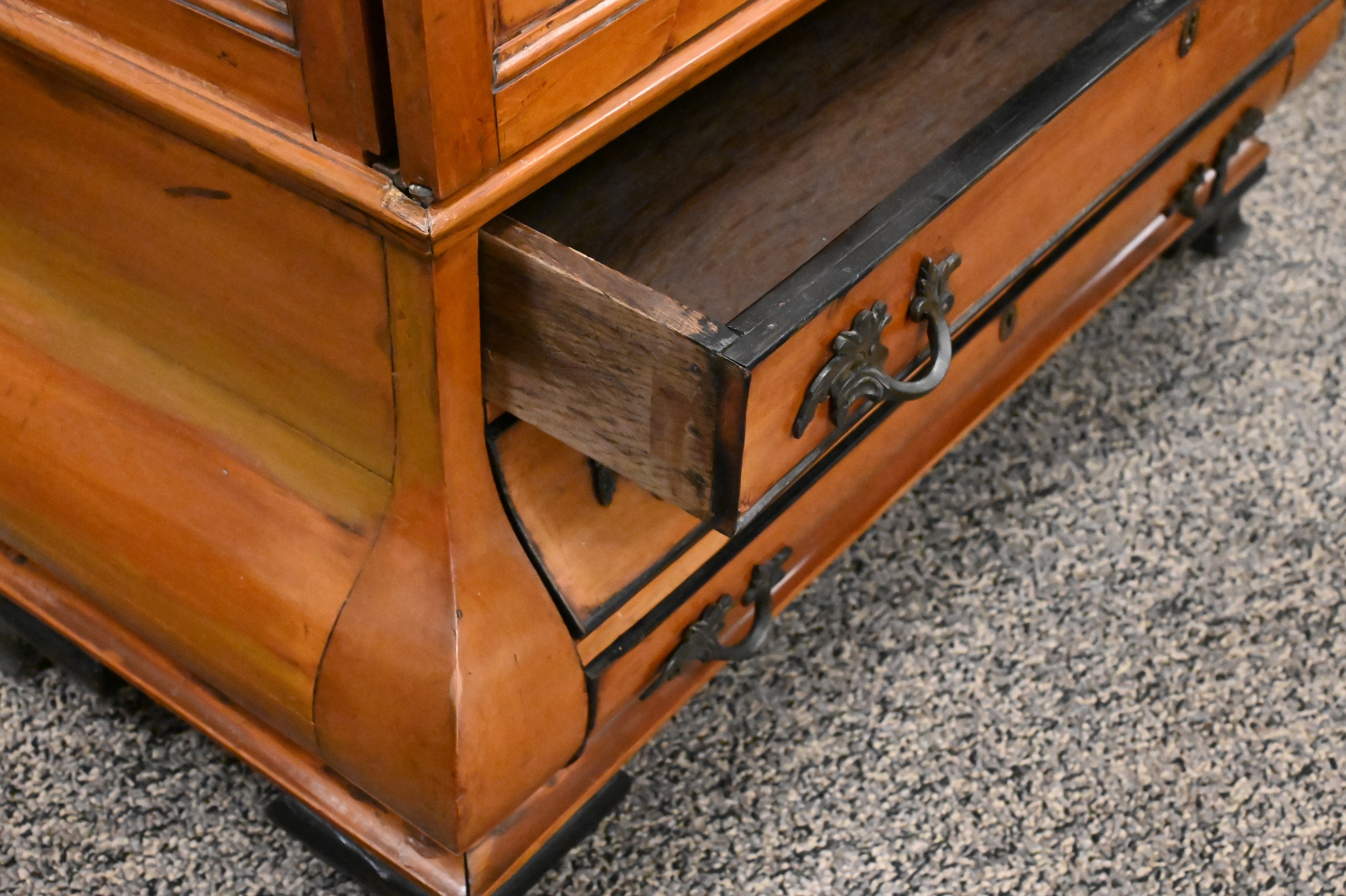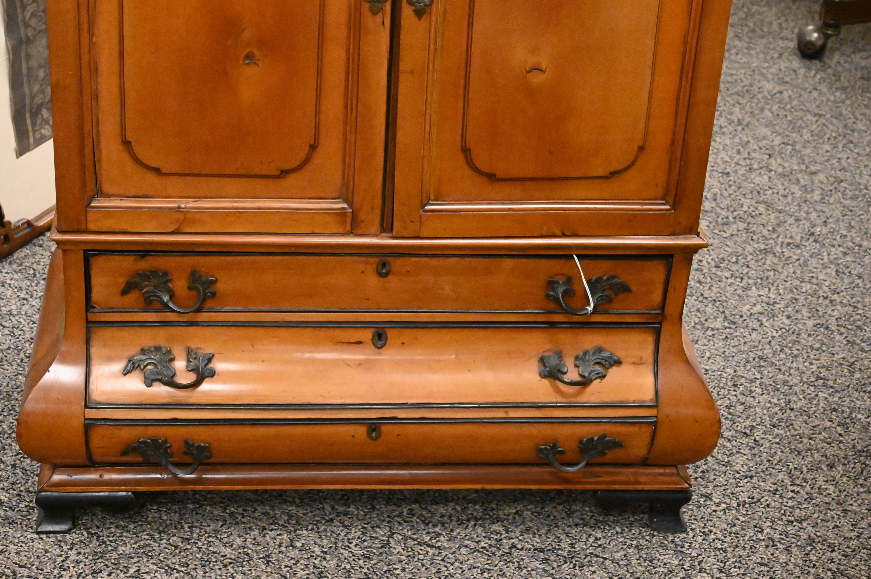having two doors over bombay base with three drawers, set on ogee feet, 19th century