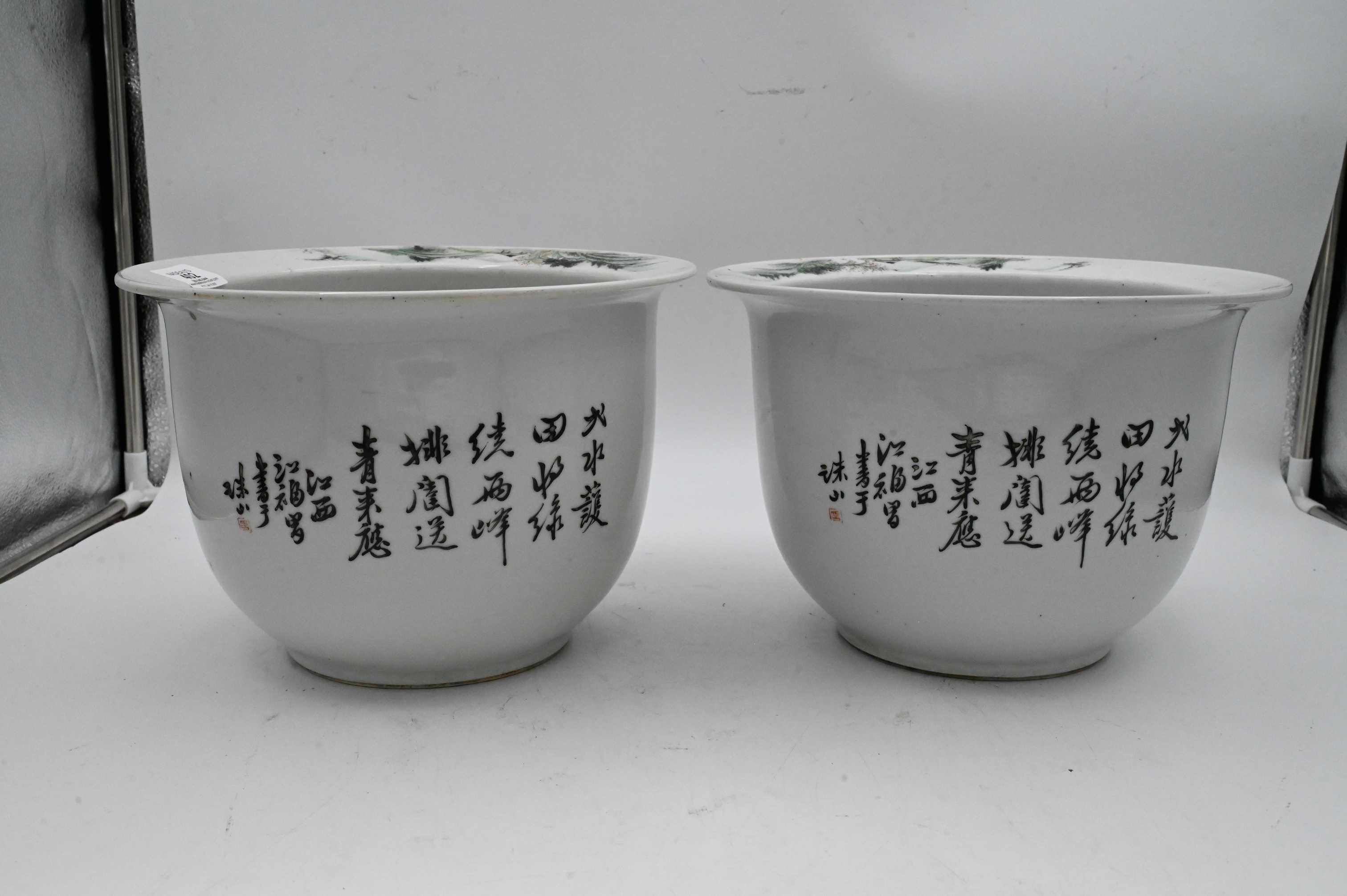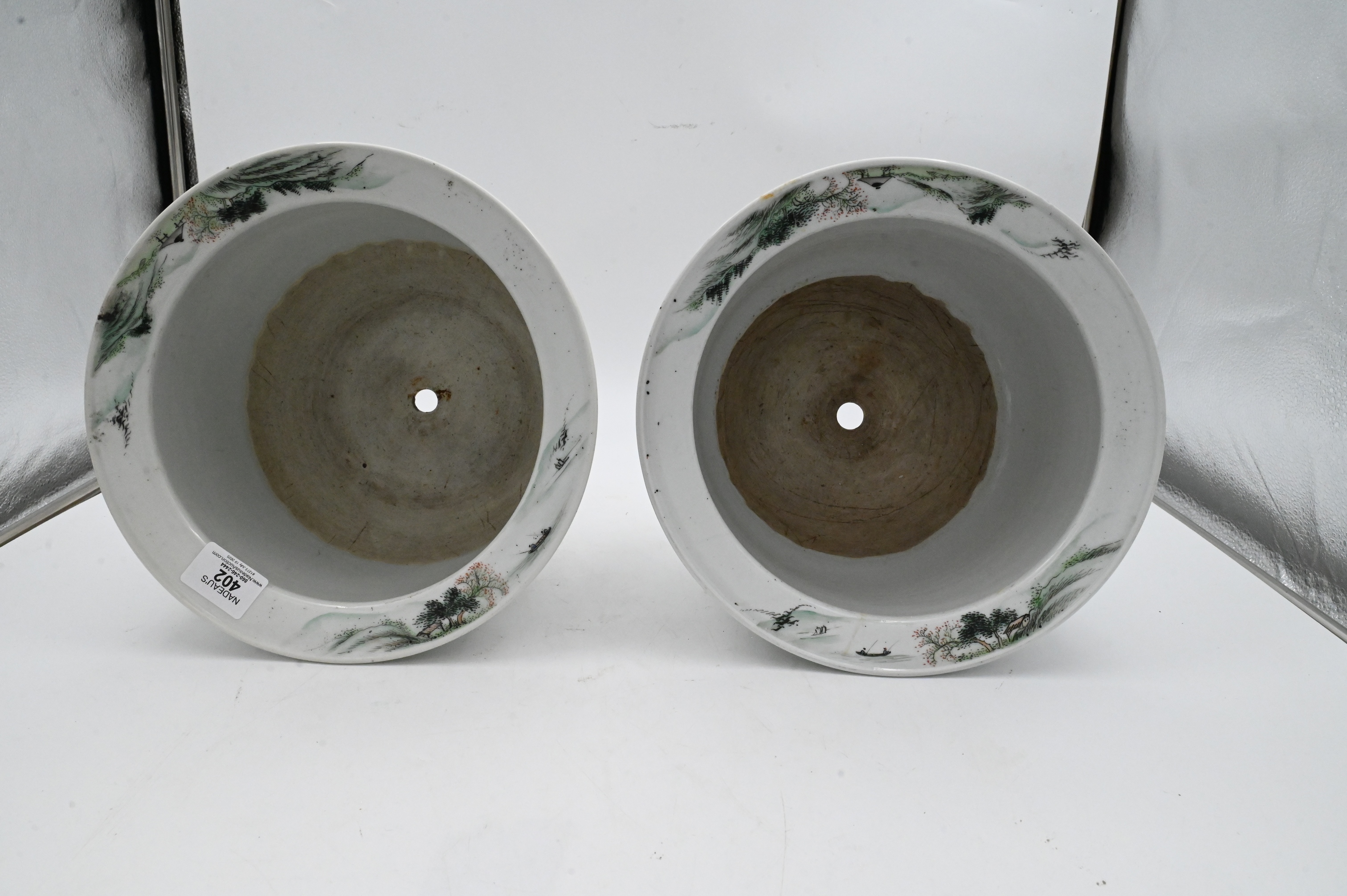 Lot 402: Pair of Chinese Famille Verte Porcelain Planters
