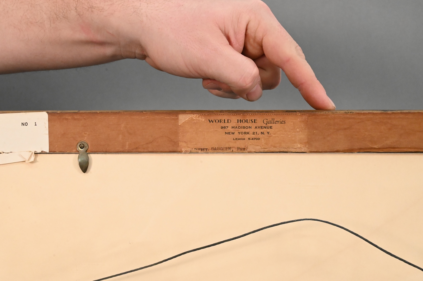label on the verso of frame, additional auction house inventory label EGFA 3GN6M and barcode, from the former Estate of Janet Wolf Levy, New York City collector