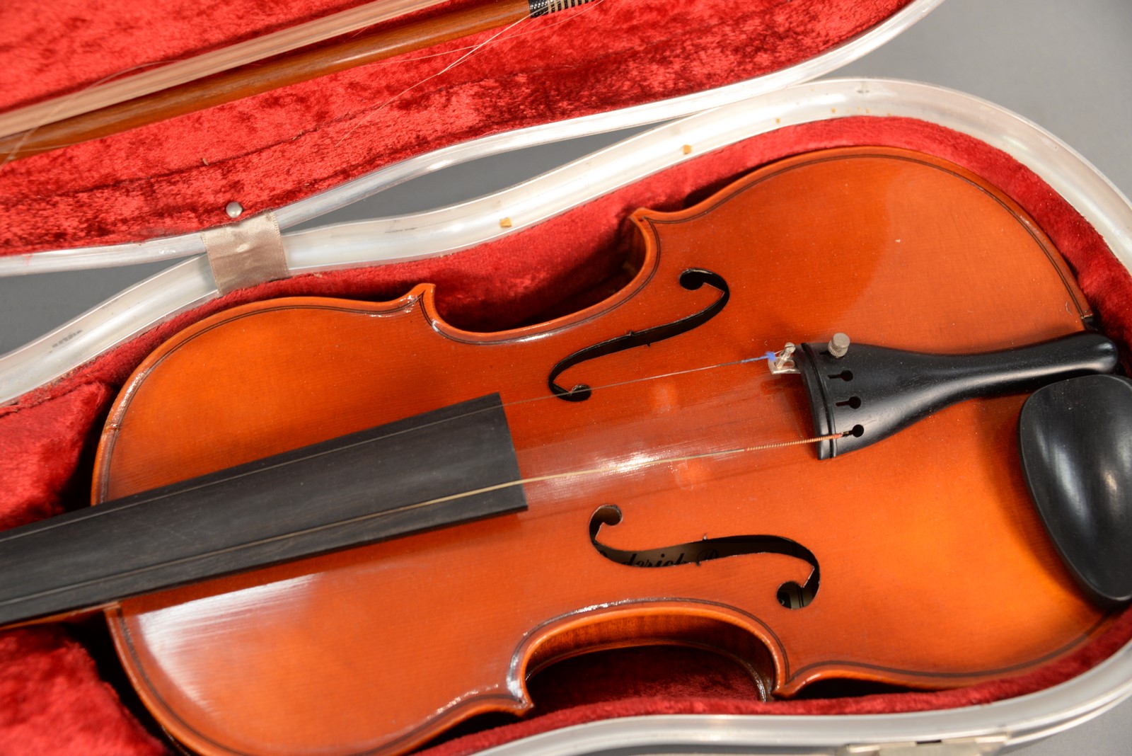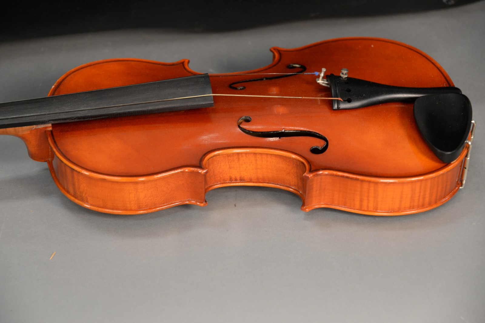 Roderich Paesold violin, model 803A with Paesold bow, in fitted case. lg. 23 in.
