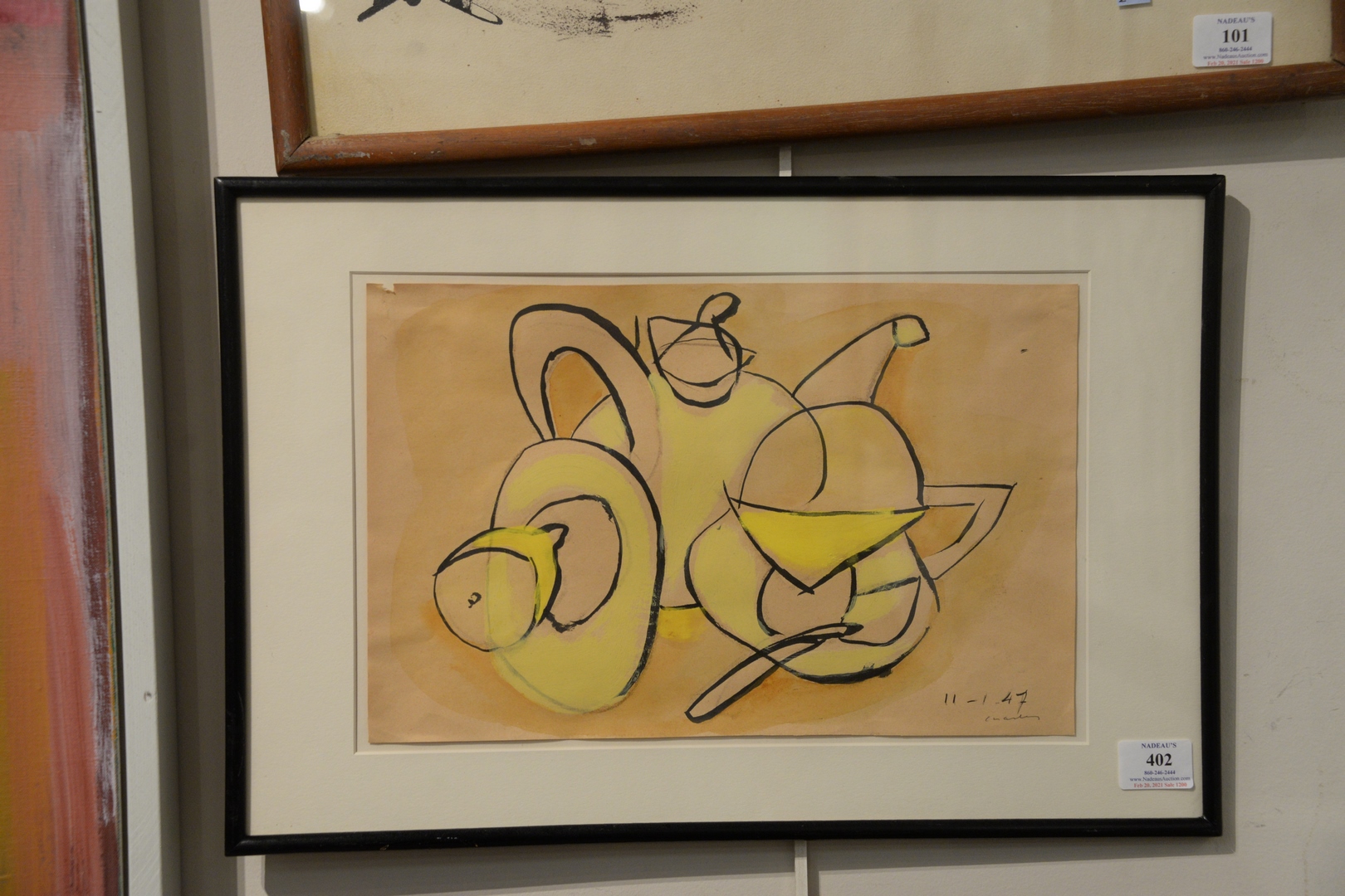 Lot 402: Roger Chastel (French, 1897 – 1981), untitled, 1947, gouache and ink was on paper; signed and dated lower left: 11-1-47/Chastel, 9 1/4″ x 14 1/2″.