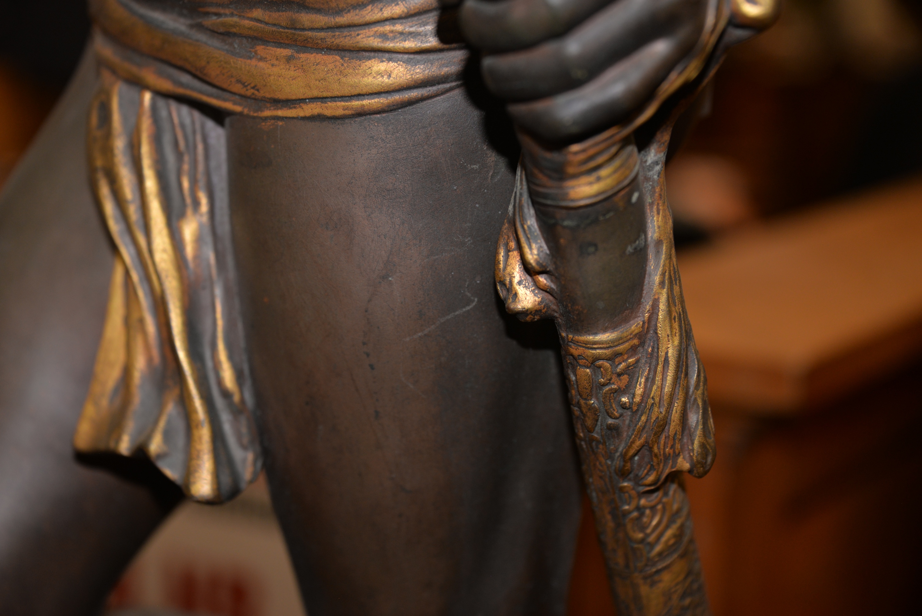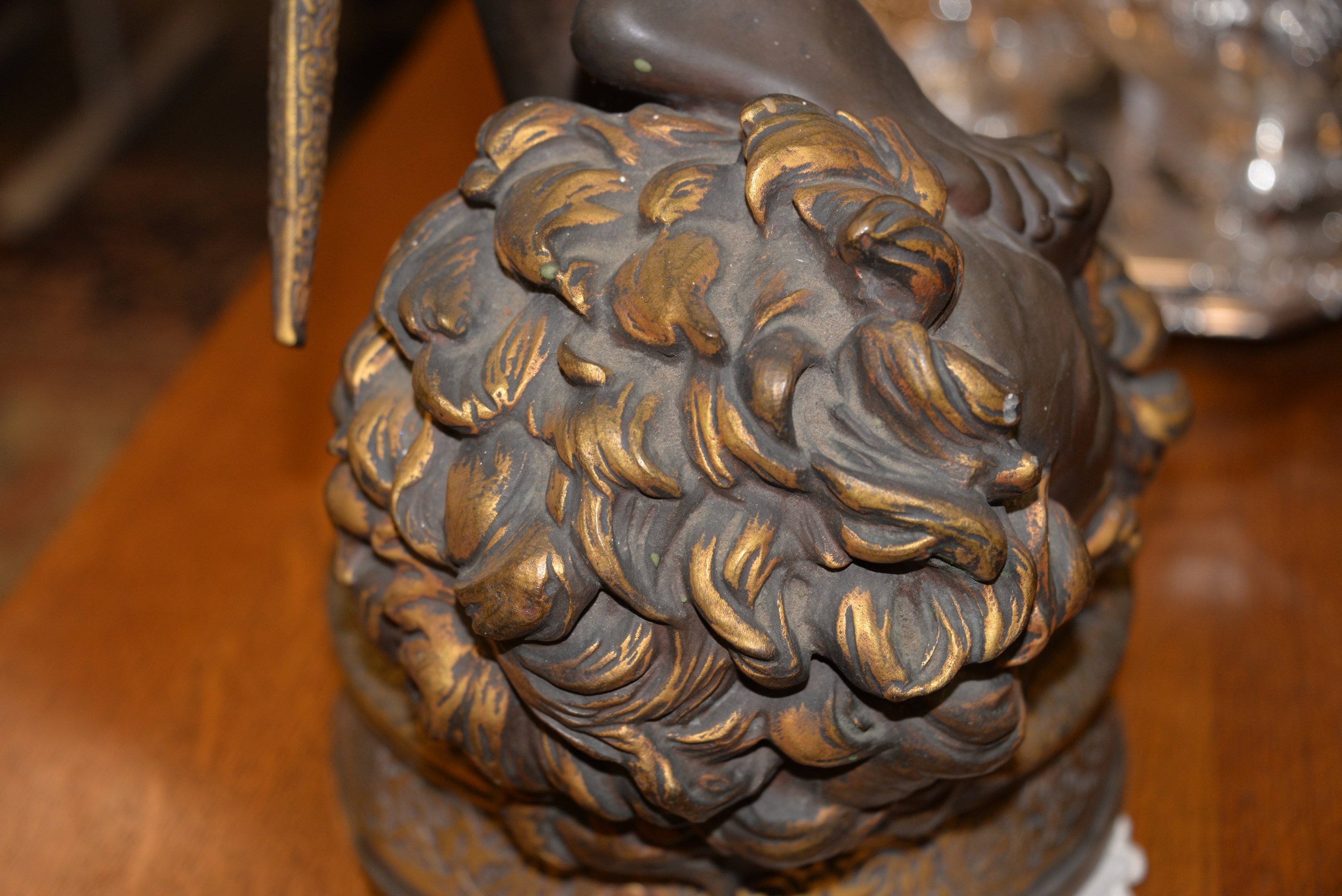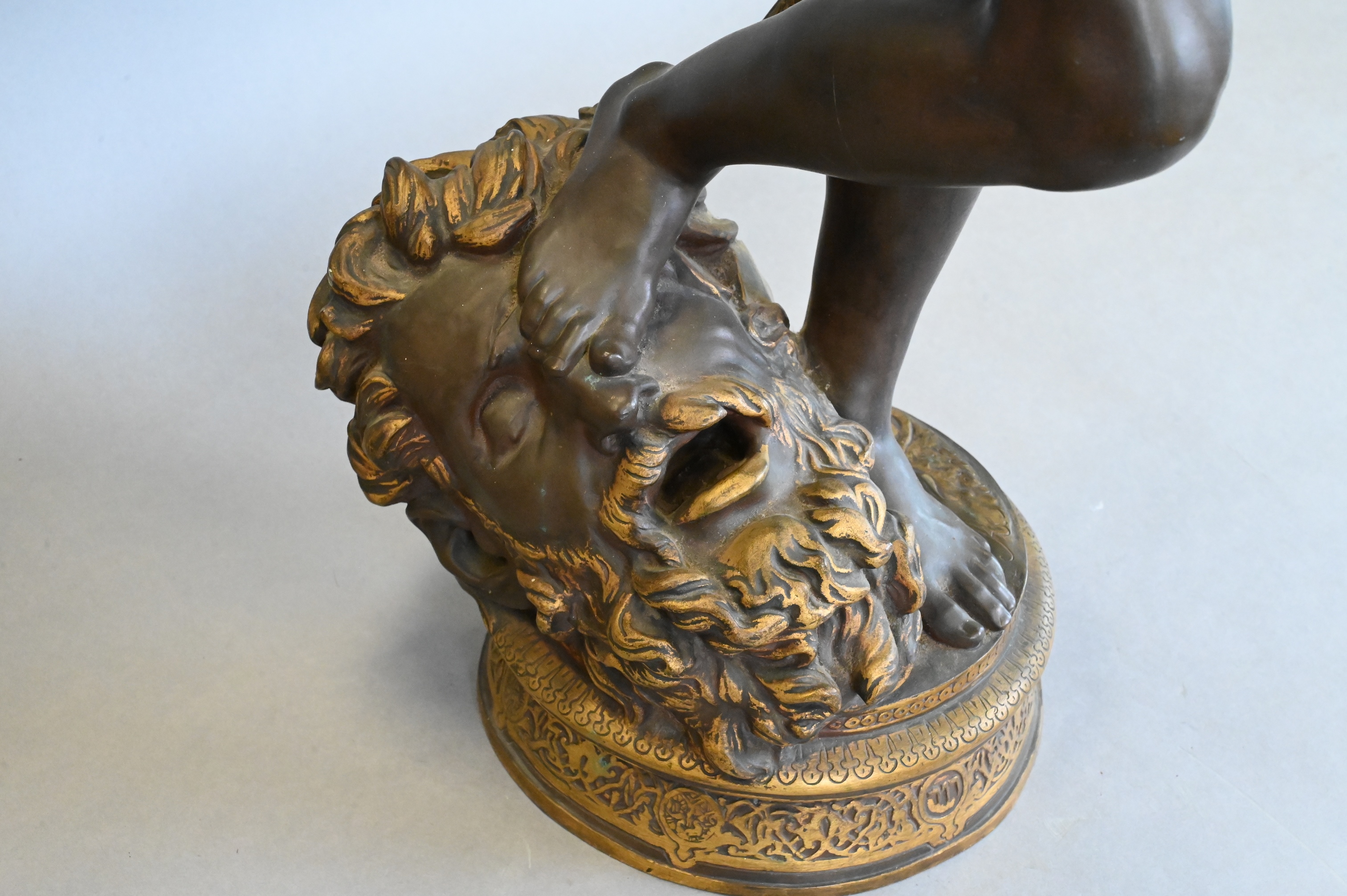 Heroic figure of David sheathing his sword after cutting off Goliath’s head