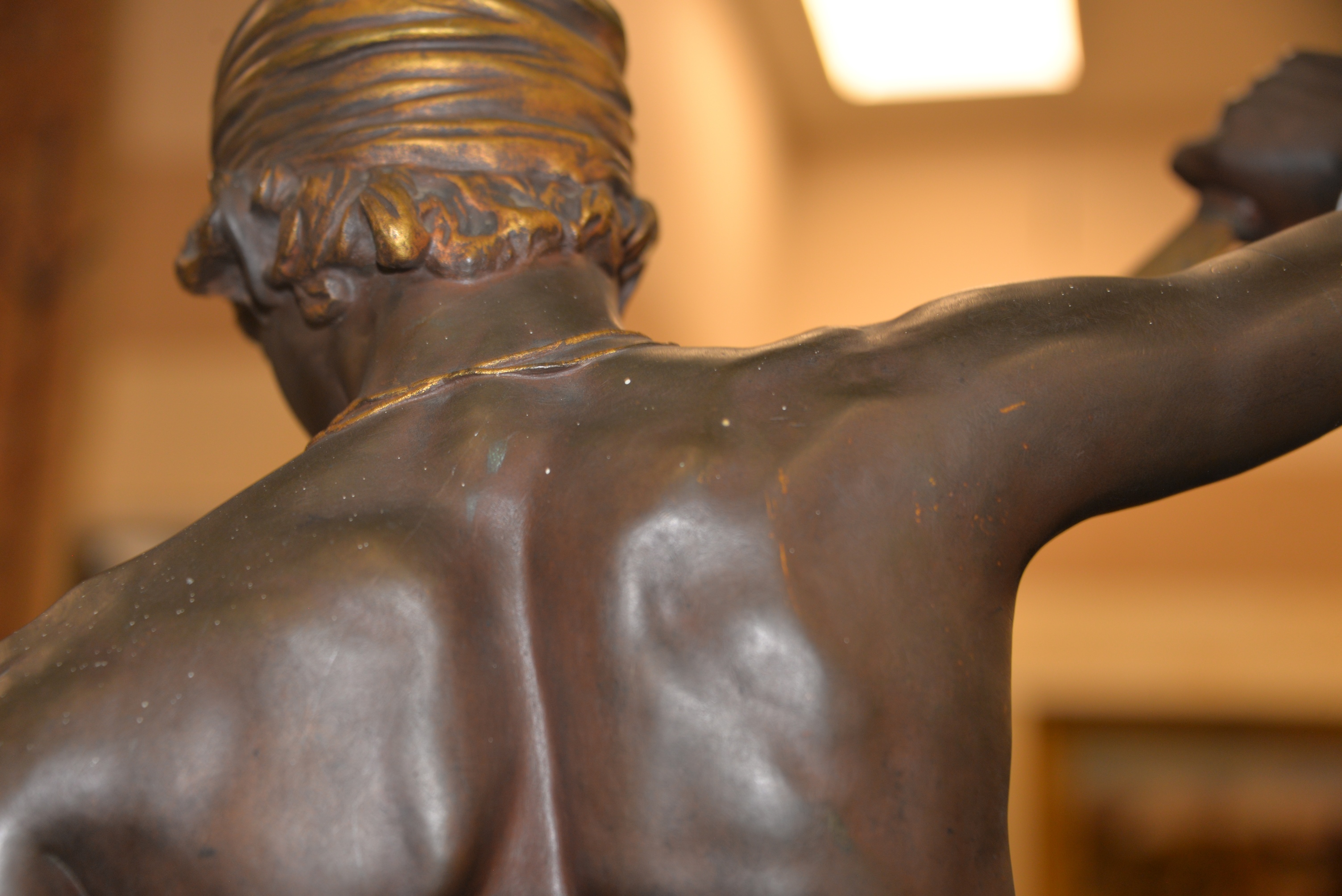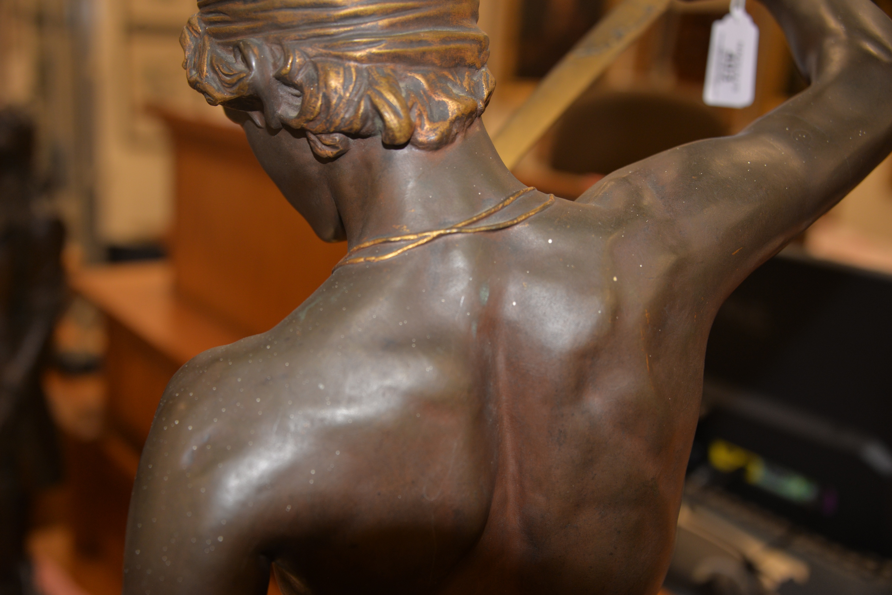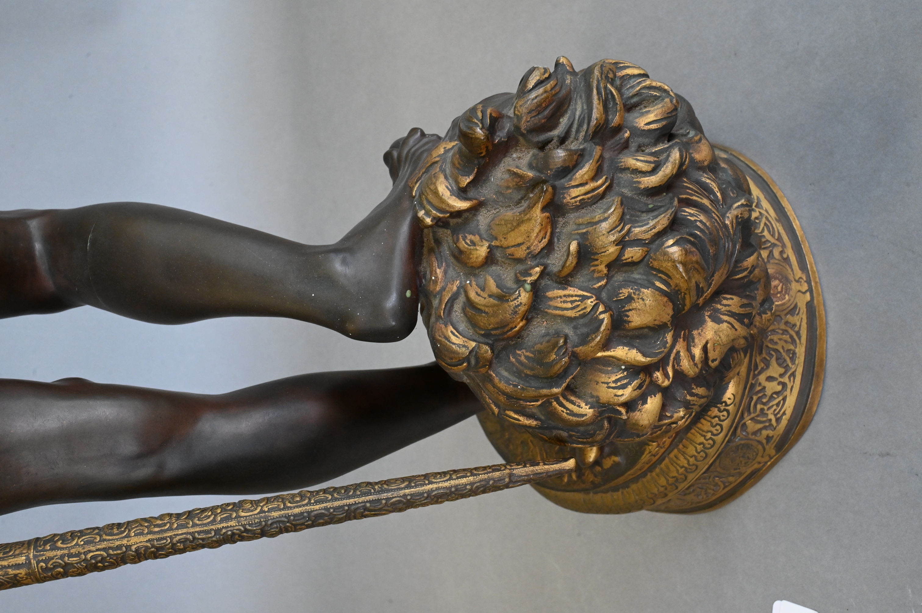 Heroic figure of David sheathing his sword after cutting off Goliath’s head