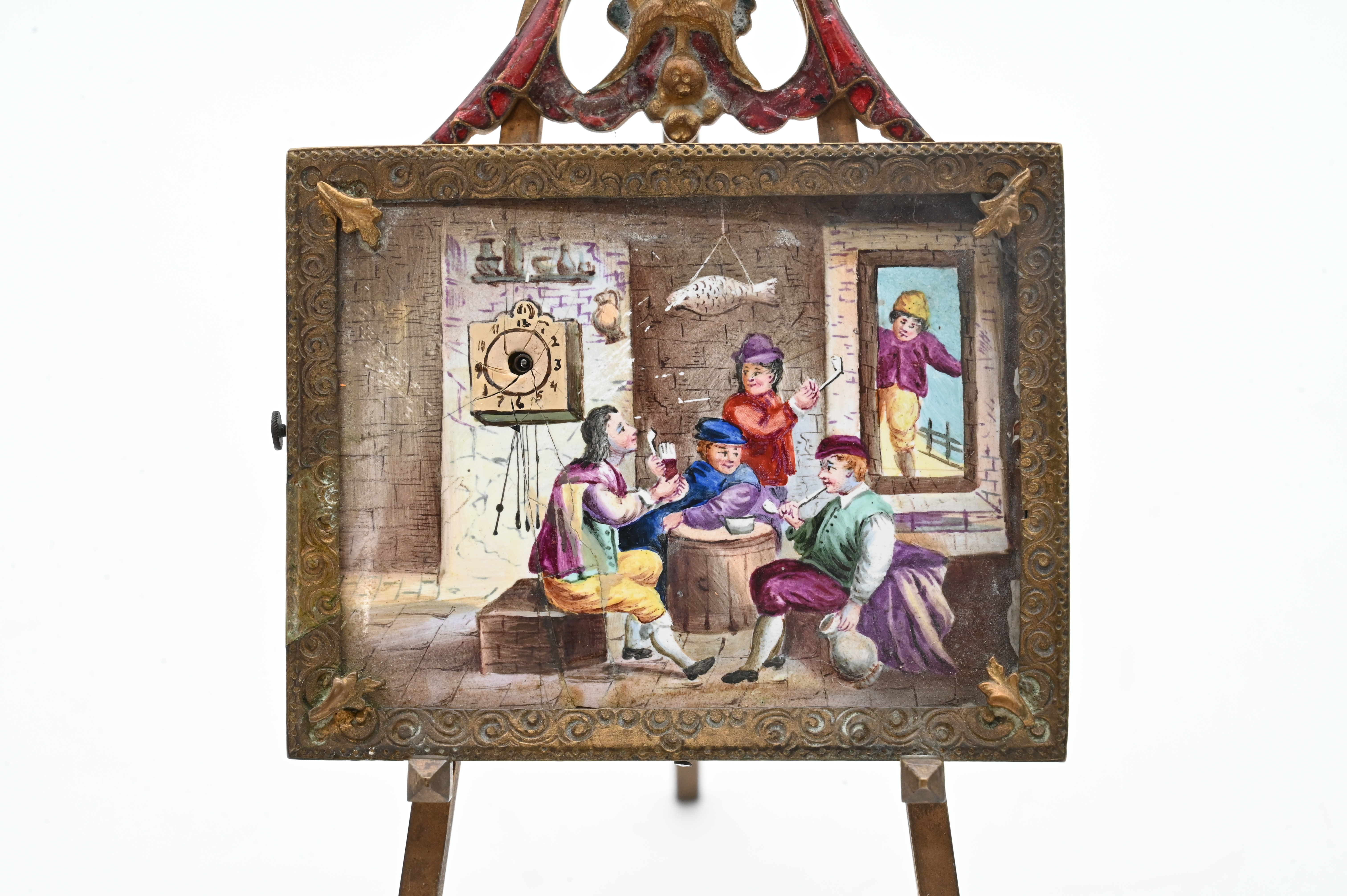 Lot 403: Continental Gilt Bronze and Enameled Easel Clock