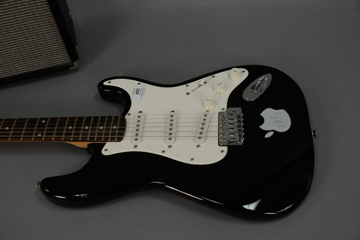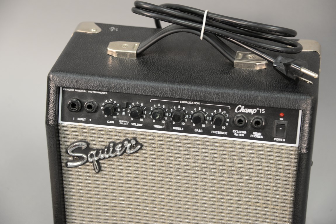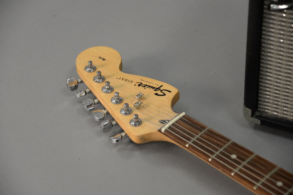 Fender Squier stratacaster electric guitar with case and a Squier champ 15.