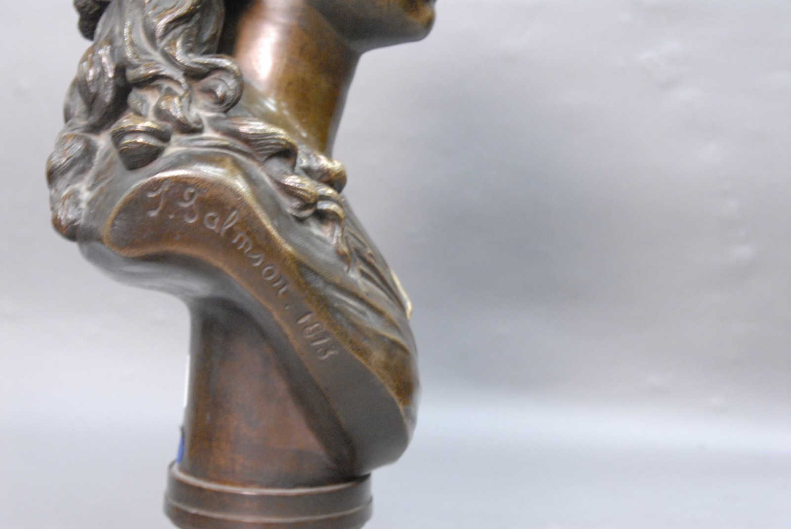 Jean Jules Salmson French 1823 – 1902 BUST OF WOMAN bronze signed on shoulder J. Salmson 1873.