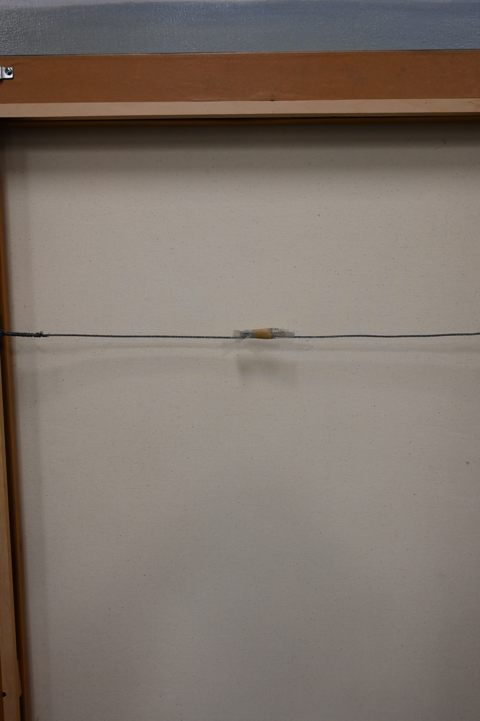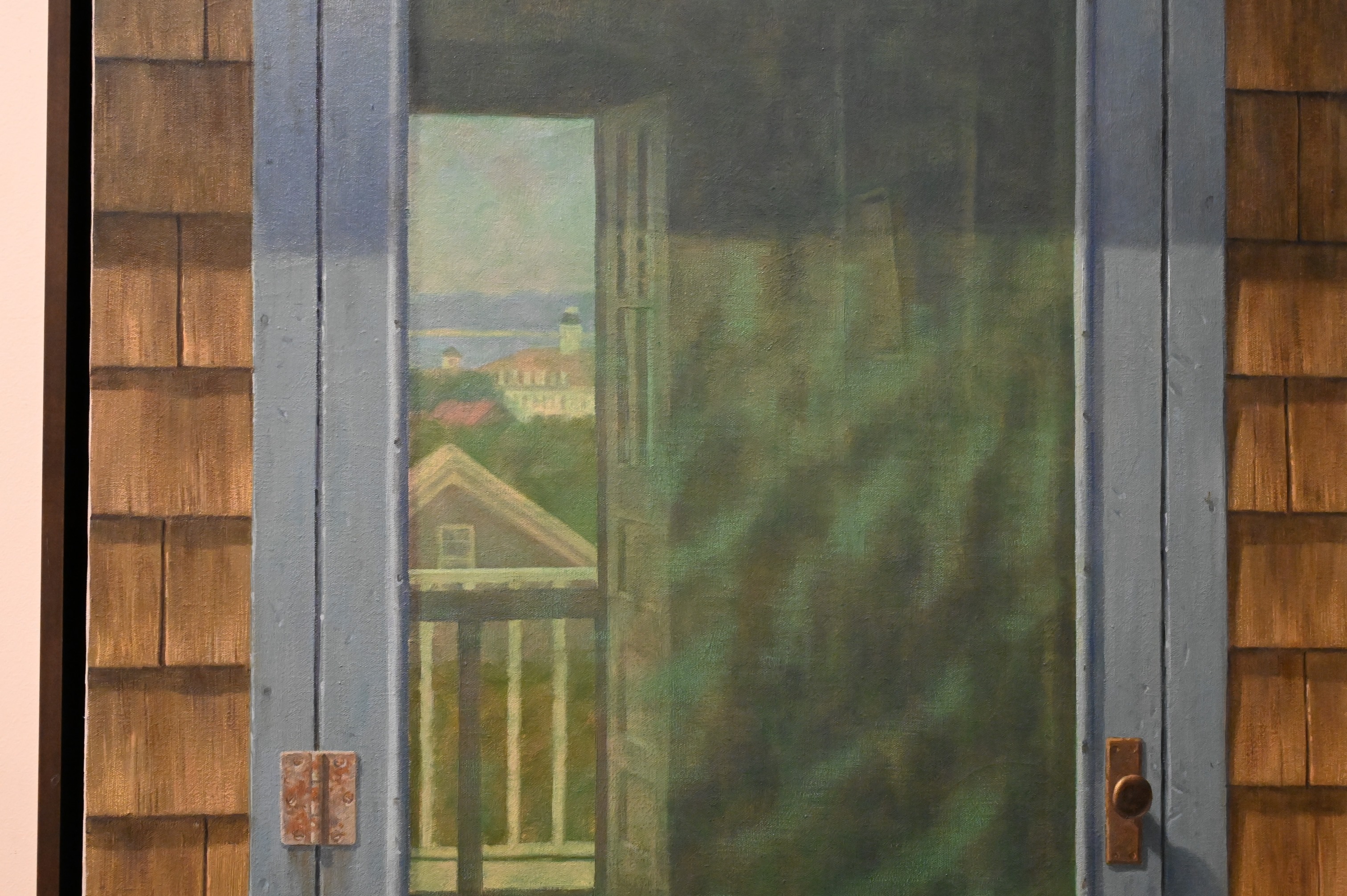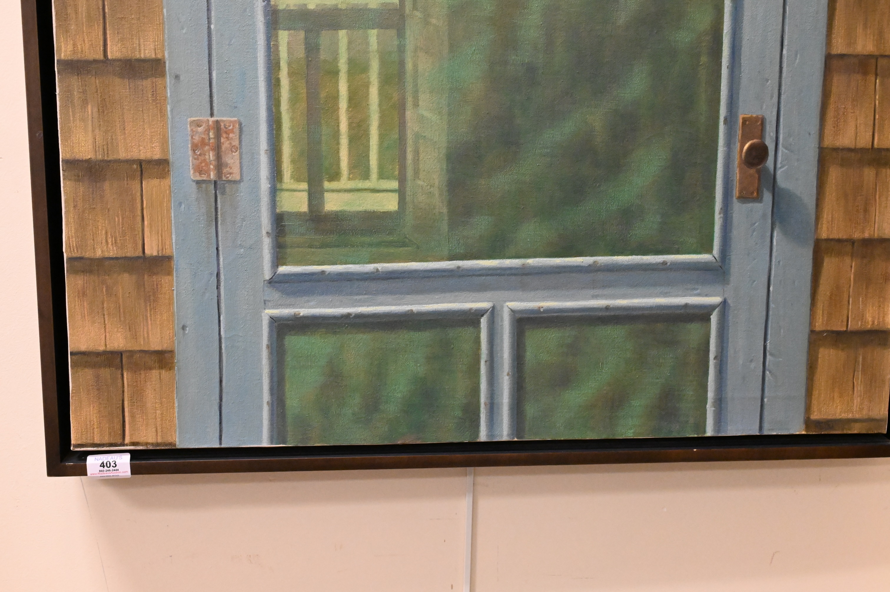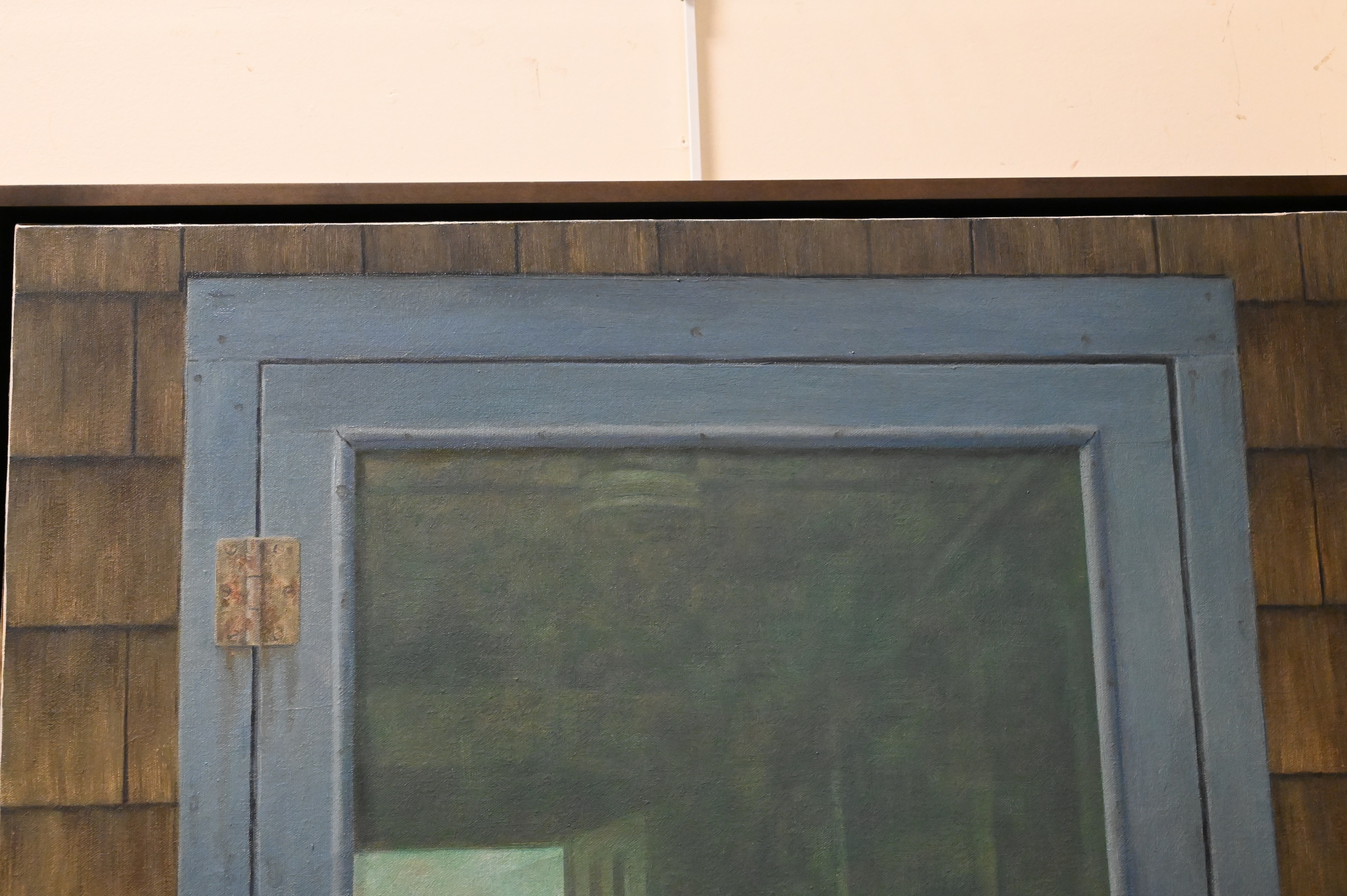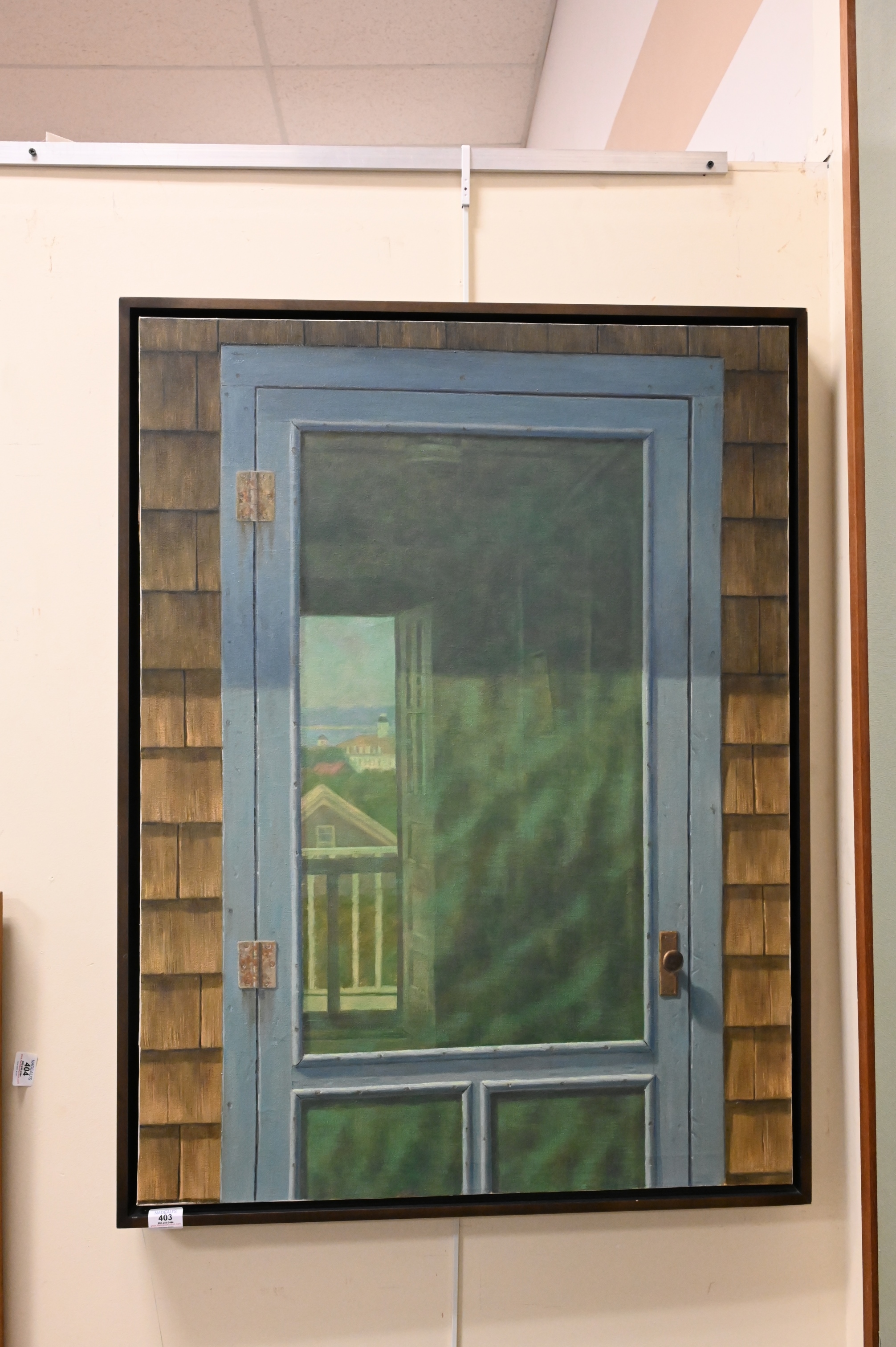 Joseph Reboli (American 1945 – 2004) untitled “Beach House Storm Door” oil on canvas, 1999 signed lower right “Reboli” 40″ x 30″