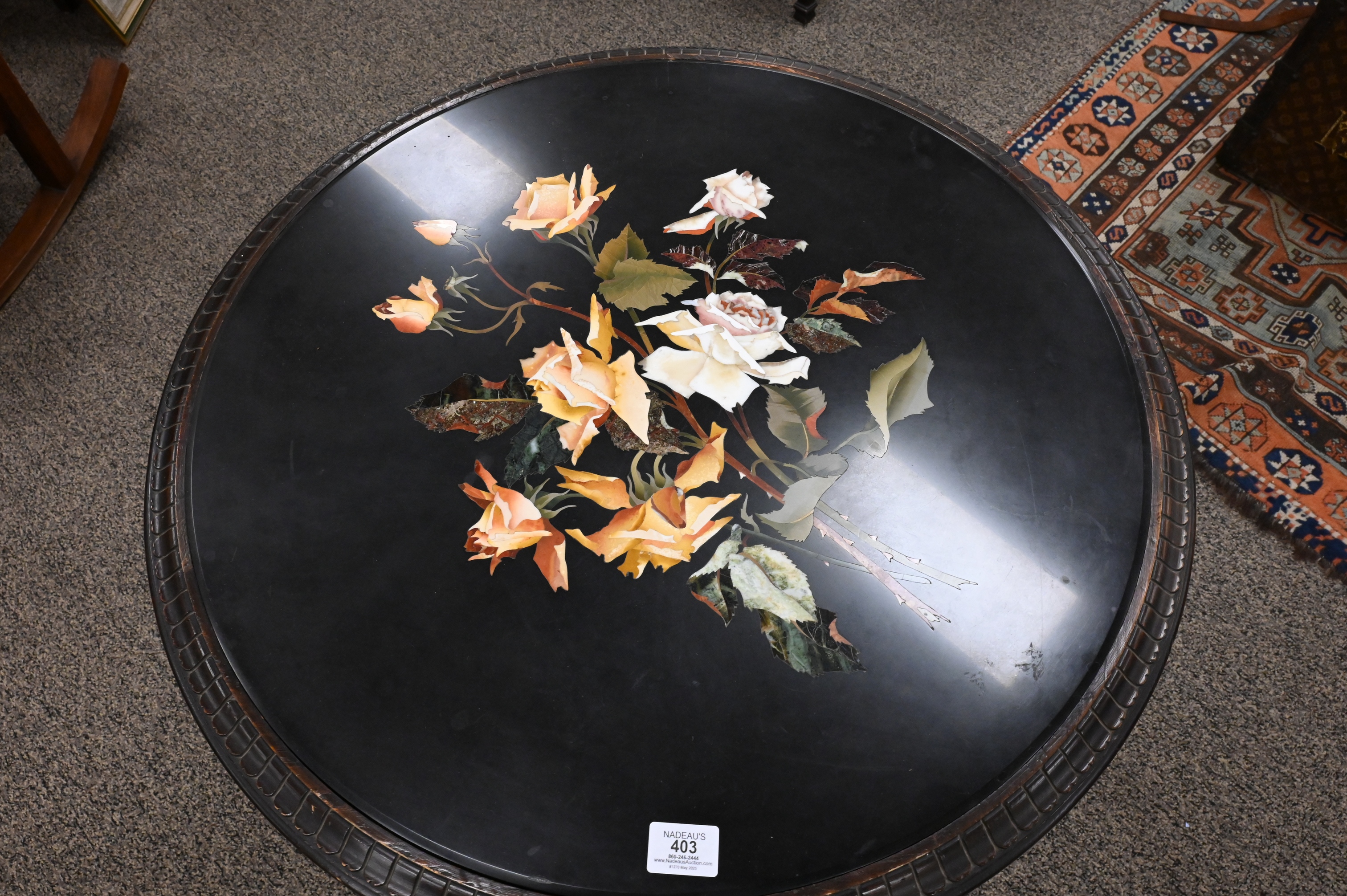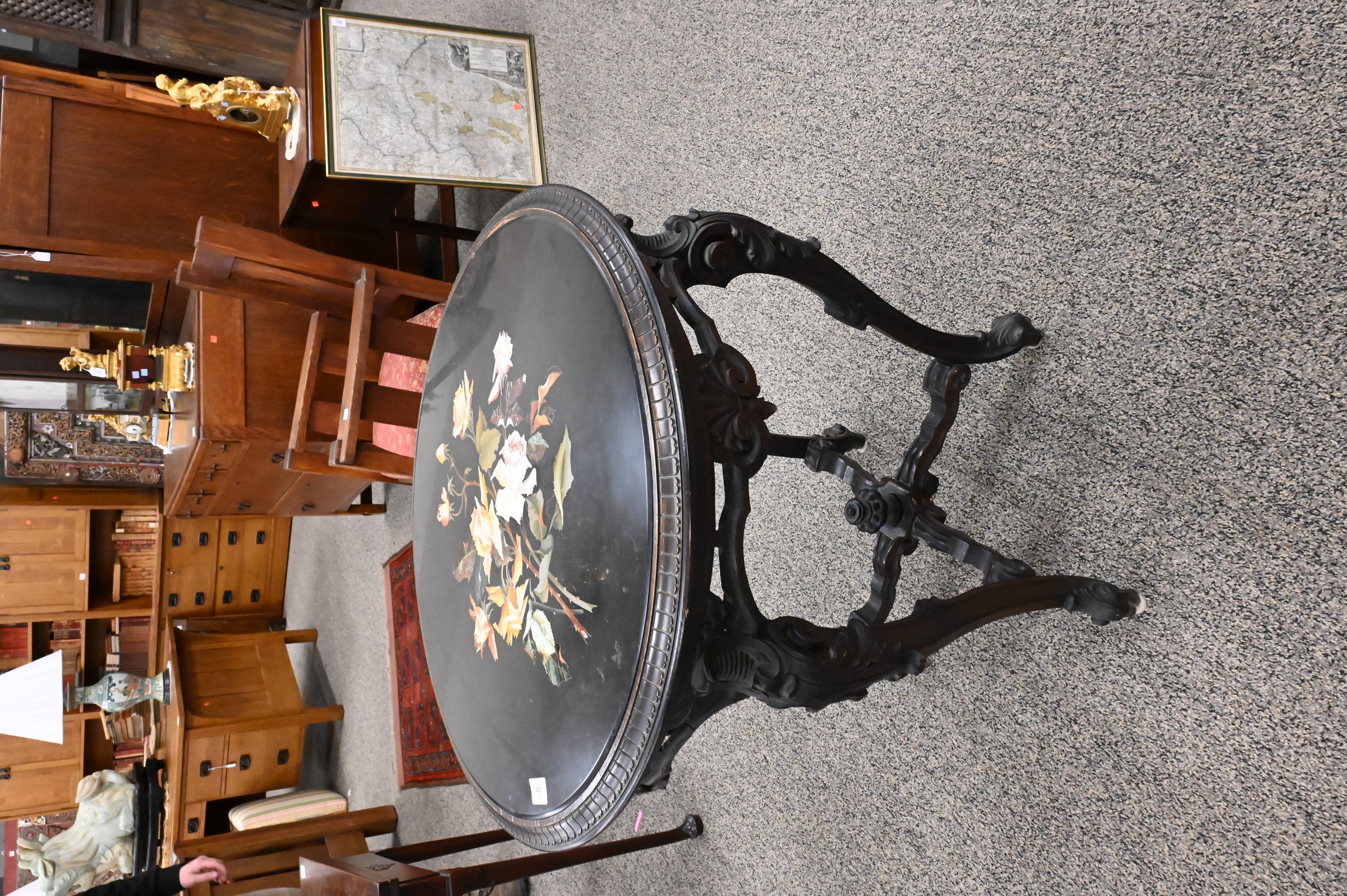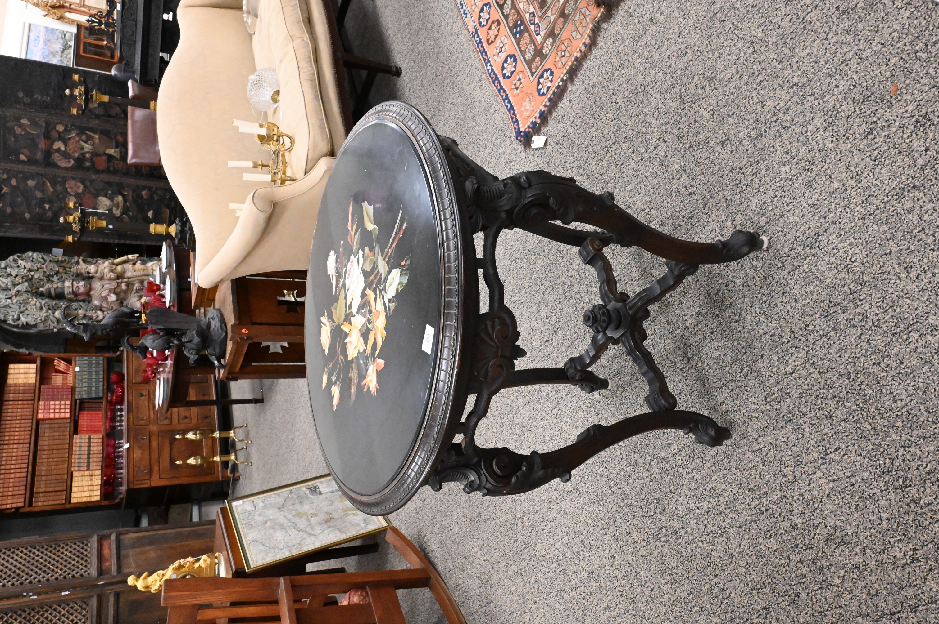 Lot 403: Pietra Dura Top Table on Carved Victorian Style Base