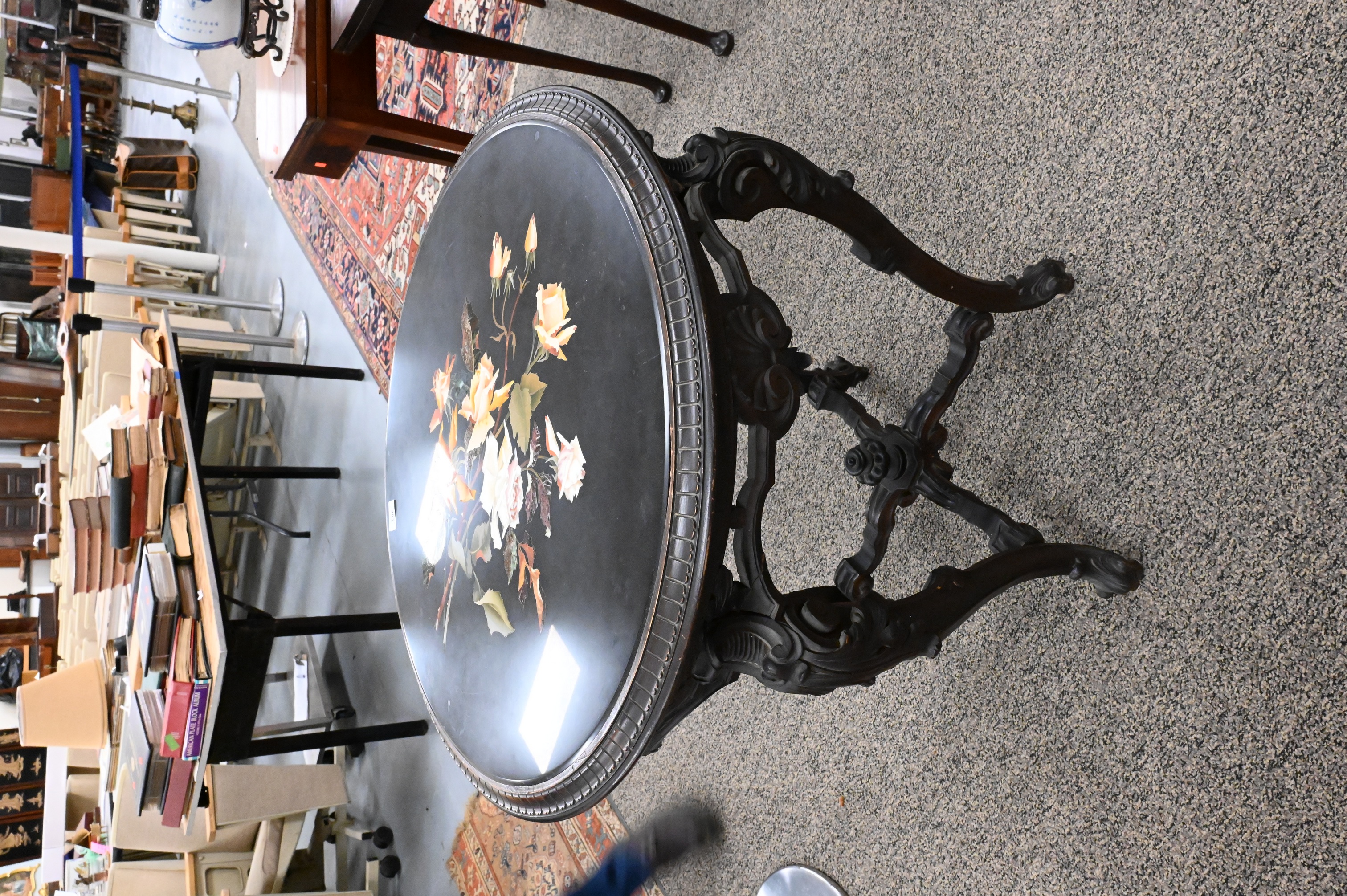 Pietra Dura Top Table on Carved Victorian Style Base