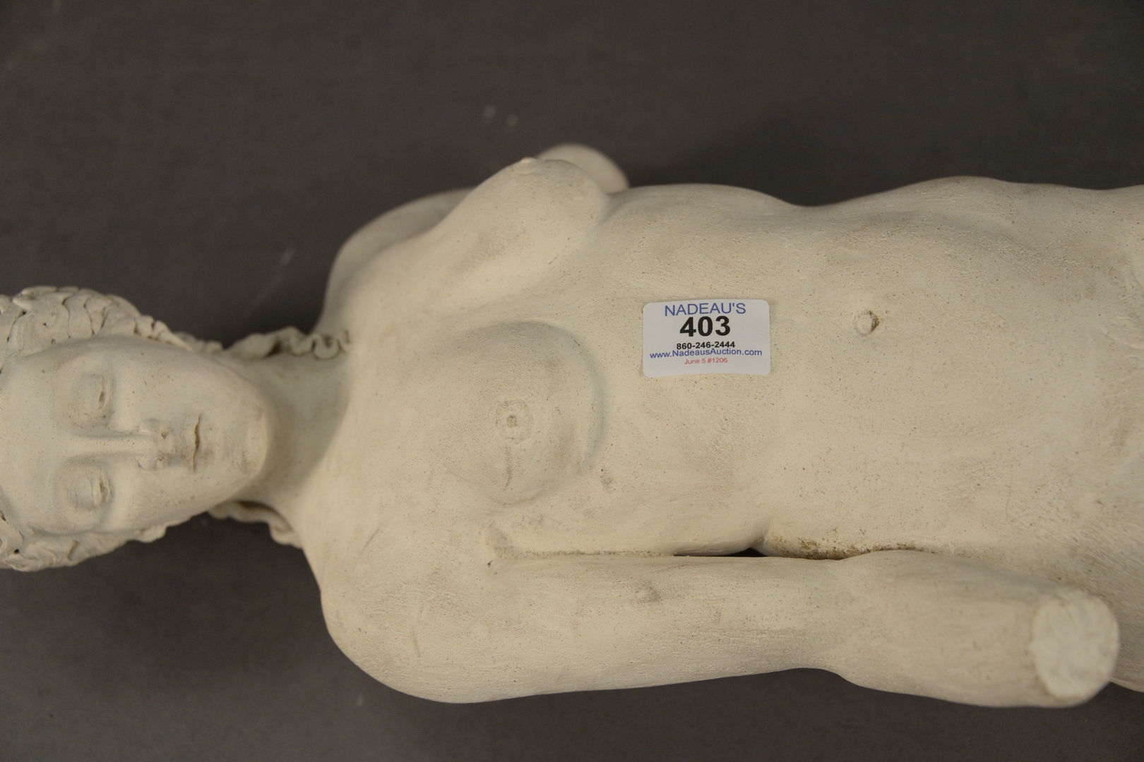 Lot 403: Plaster Sculpture of a Classical Female Figure, having wavy hair, length 28 inches.