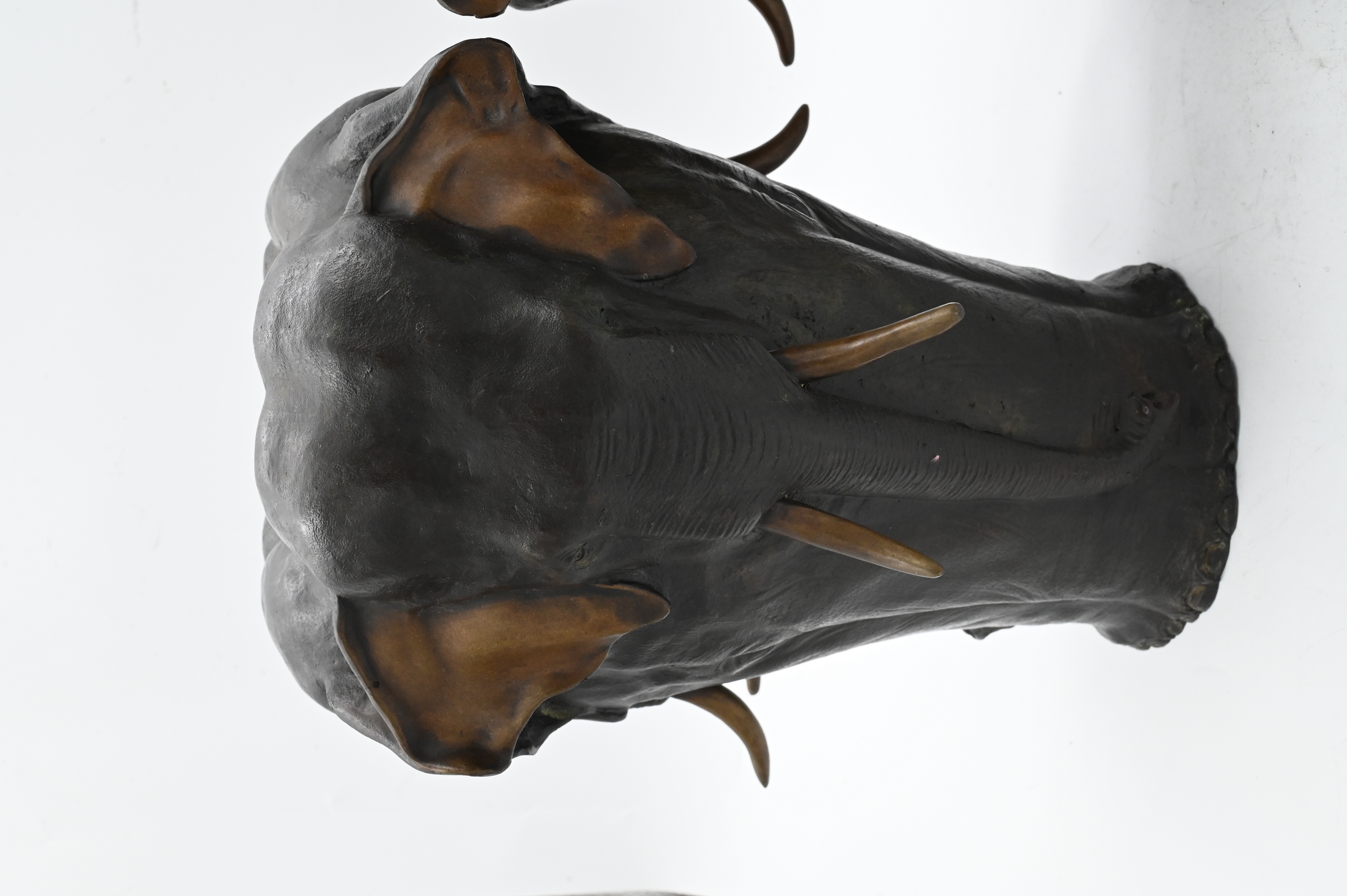 Lot 404: After Antoine Louis Barye (French 1795-1875) Pair of Heavy Cast Bronze Figural Elephant Vases
