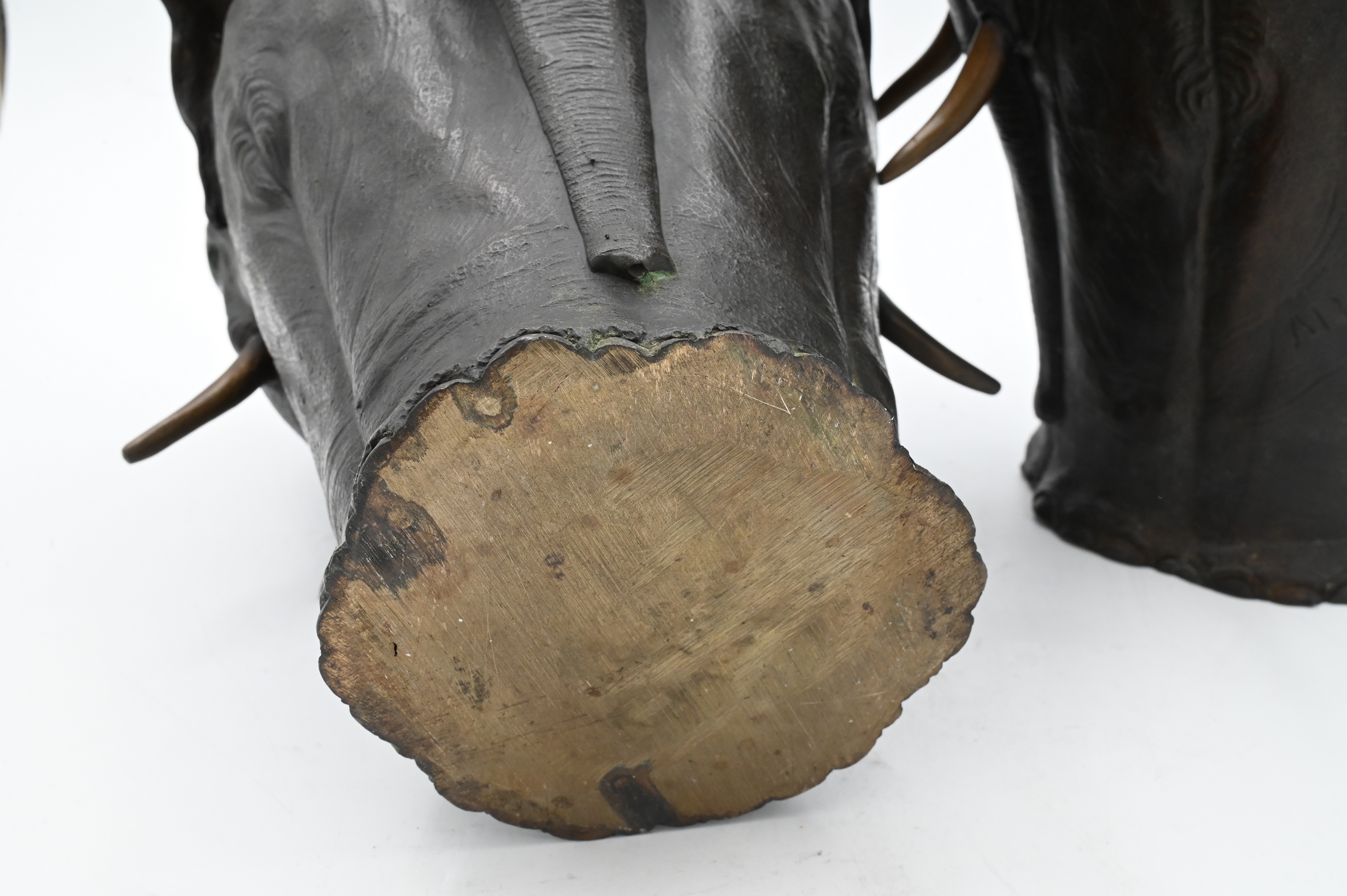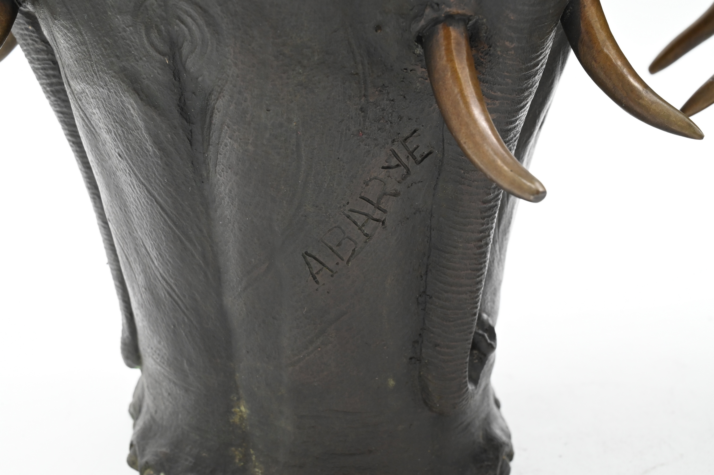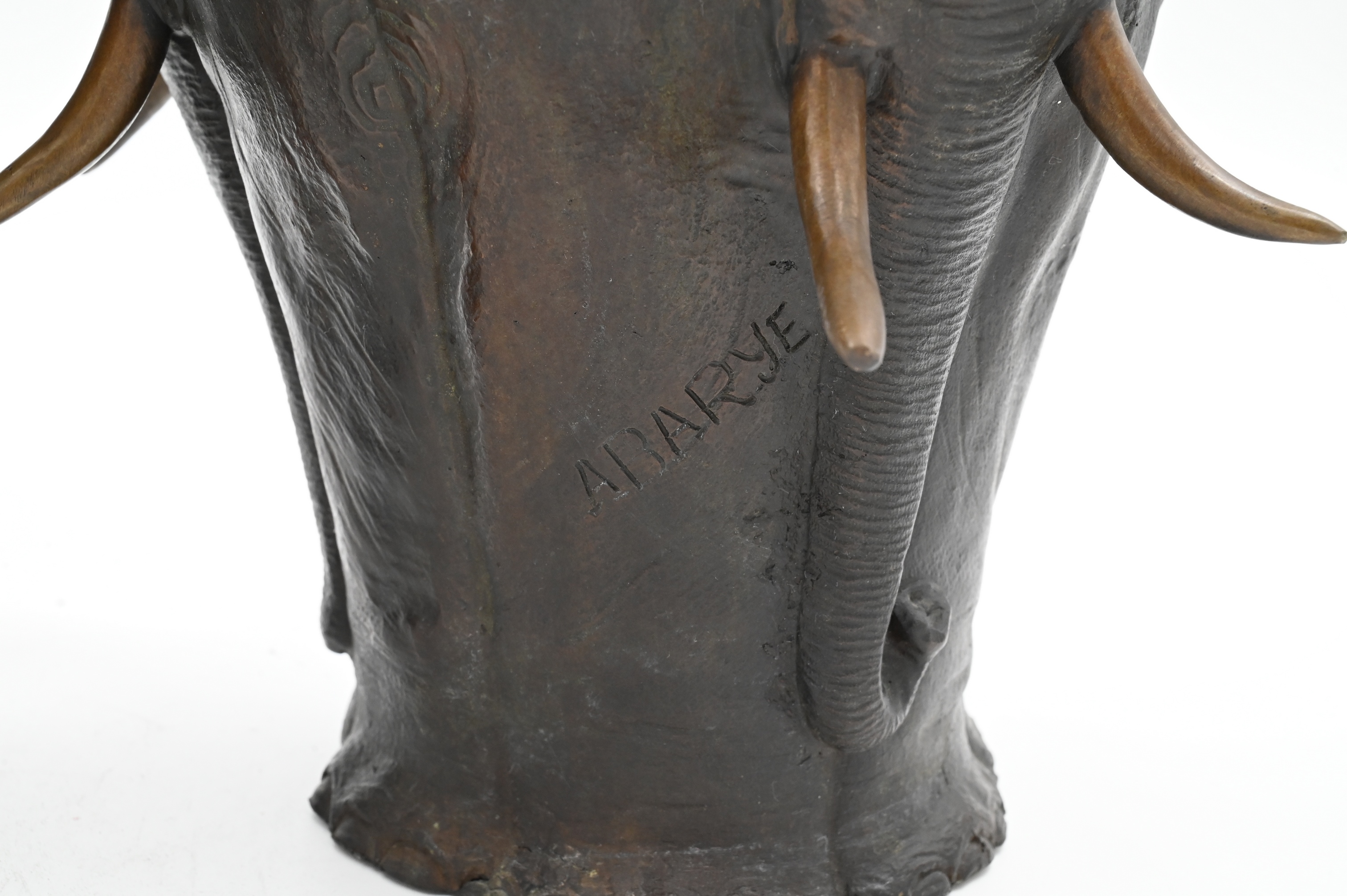 After Antoine Louis Barye (French 1795-1875) Pair of Heavy Cast Bronze Figural Elephant Vases