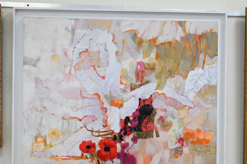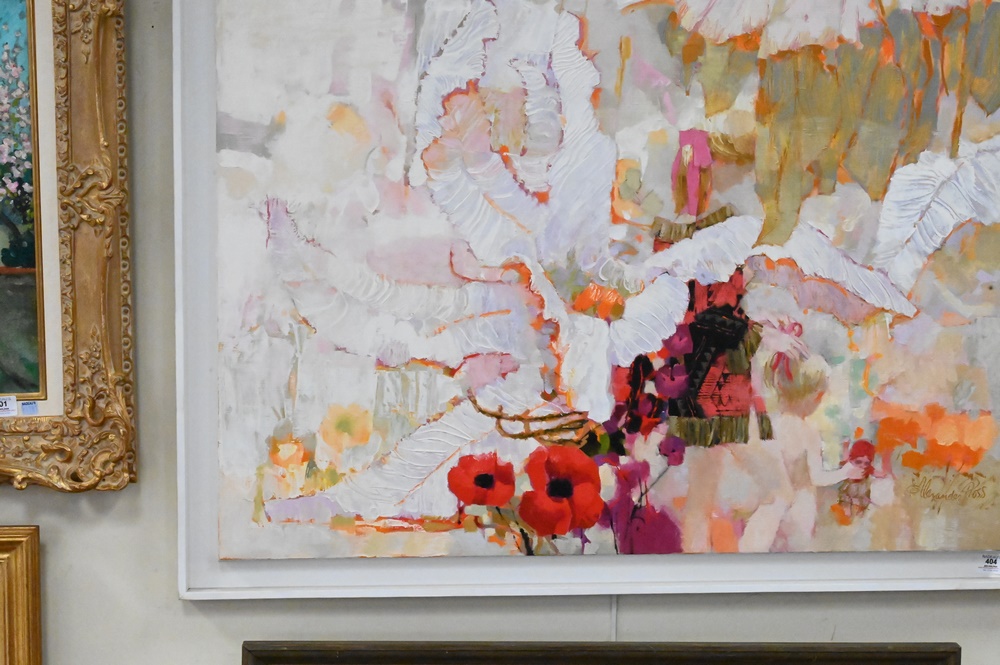 Lot 404: Alexander Ross (Scottish/American, 1908 – 1990), Mother and Child in an Abstract Landscape, oil on canvas, signed lower right, 30″ x 40″. Provenance: An estate from Redding, CT.