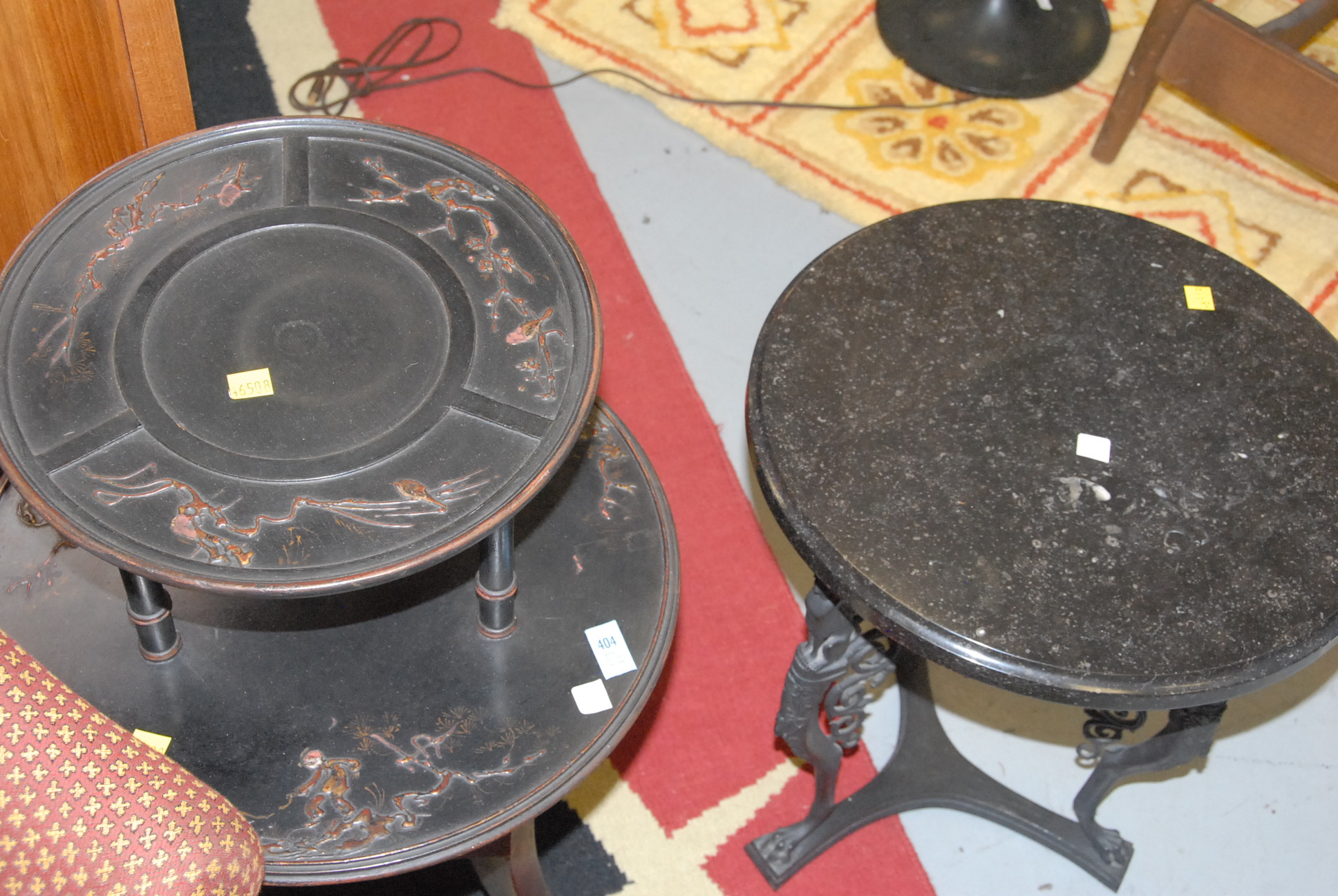 Lot 404: Two tables chinoiserie decorated two tier table with black lacquered ht