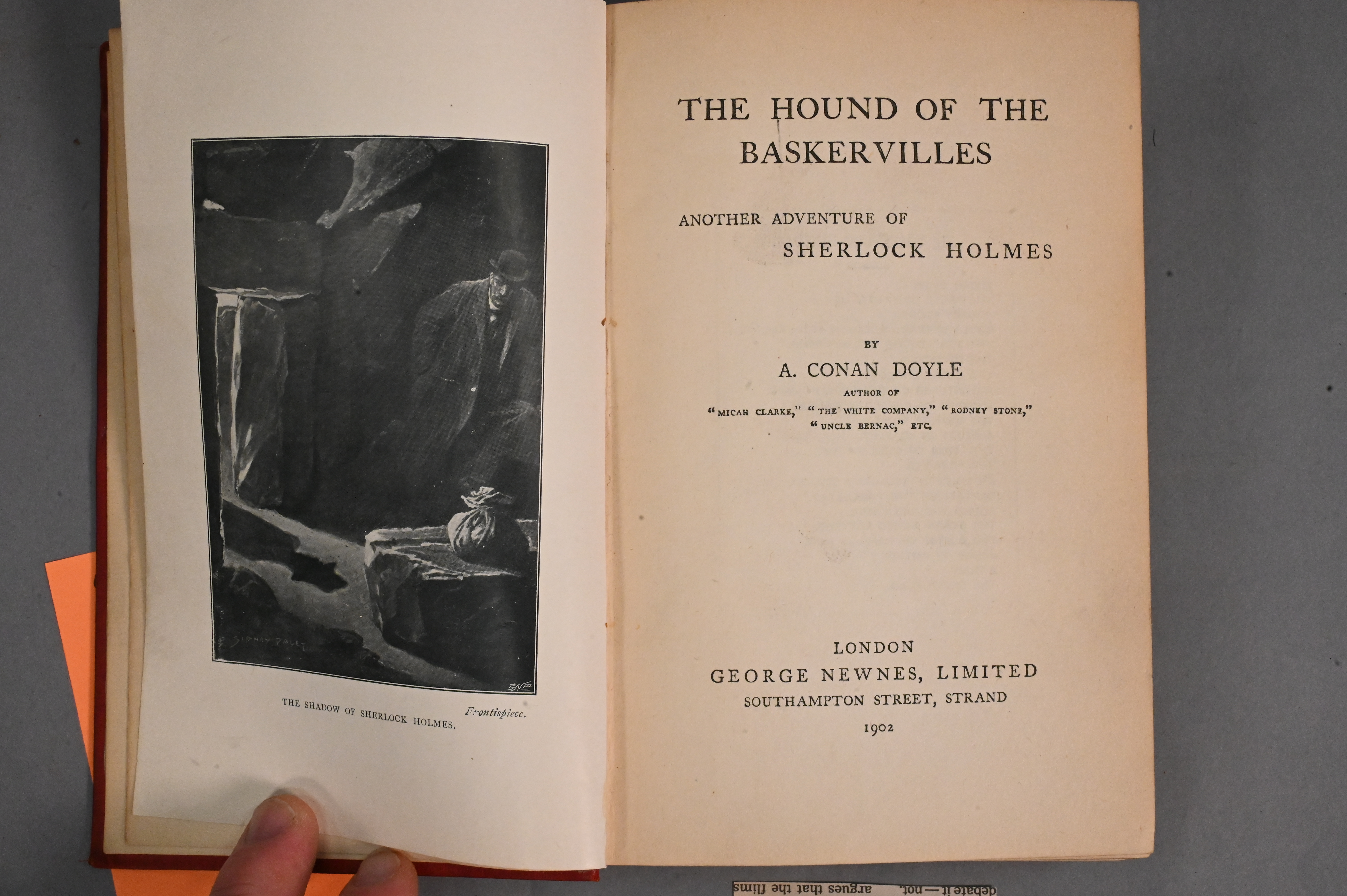 First Edition of Arthur Conan Doyle’s “The Hound of Baskervilles, Another Adventure of Sherlock Holmes”, published in London in 1902 by George Newnes, first issue with “you” for “your” on page 13, line 3, Provenance: Estate of Cyril H. Moore Jr, Kent, Connecticut.