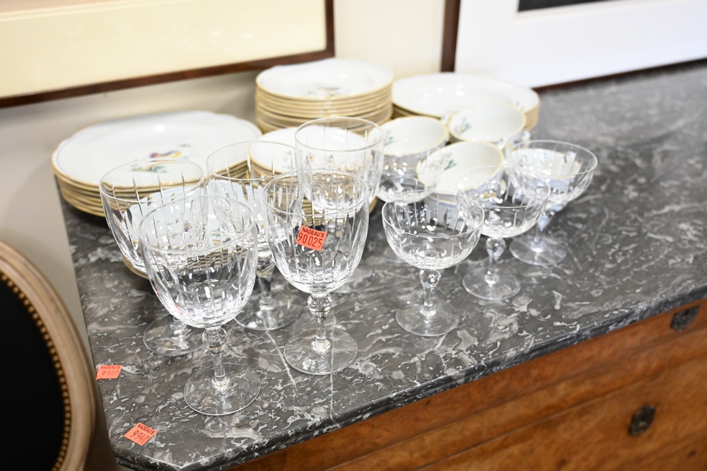 Lot 405: 26 Piece Stuart Crystal Stems, to include 5 cordials, 11 red wines, along with 10 cocktail glasses, height of red wine 6 1/2 inches.