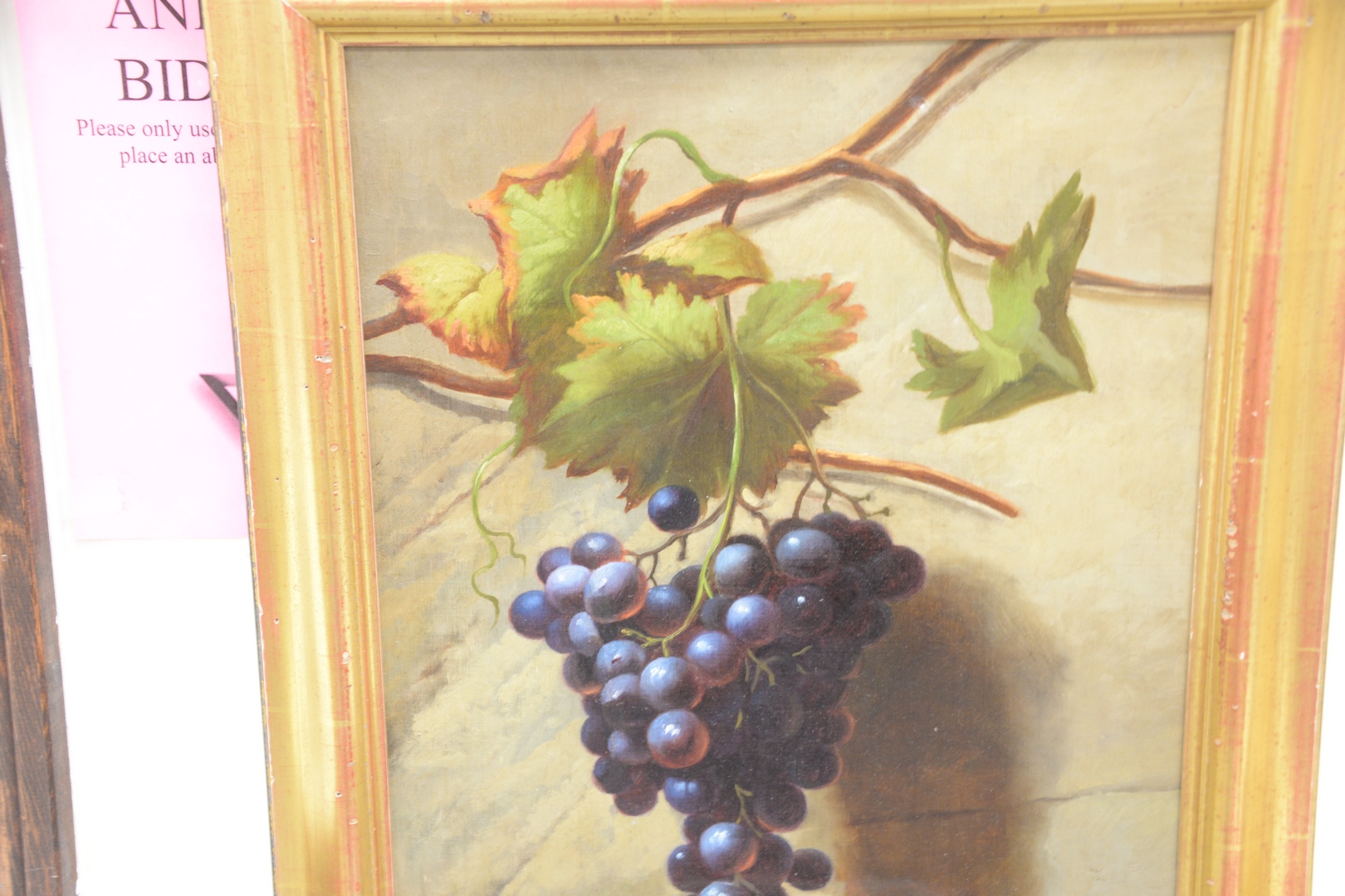 Lot 405: Attributed to Andrew John Henry Way American, 1826-1888 Pair of Still Lives, hanging green grapes and hanging purple grapes, oil on relined canvas, unsigned, 22 x 14.